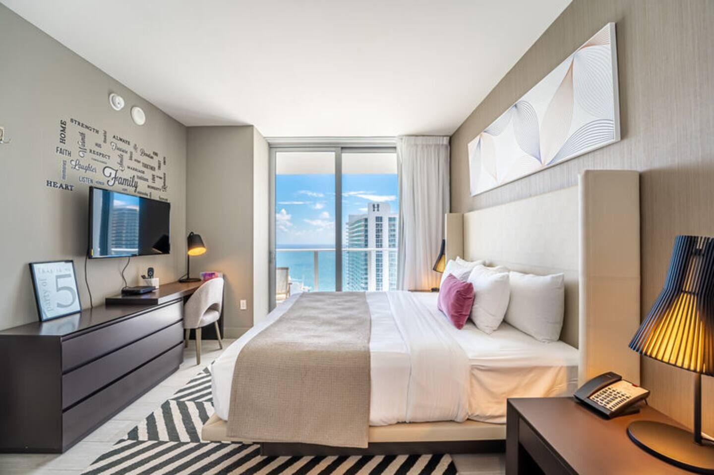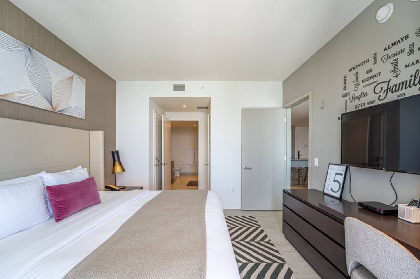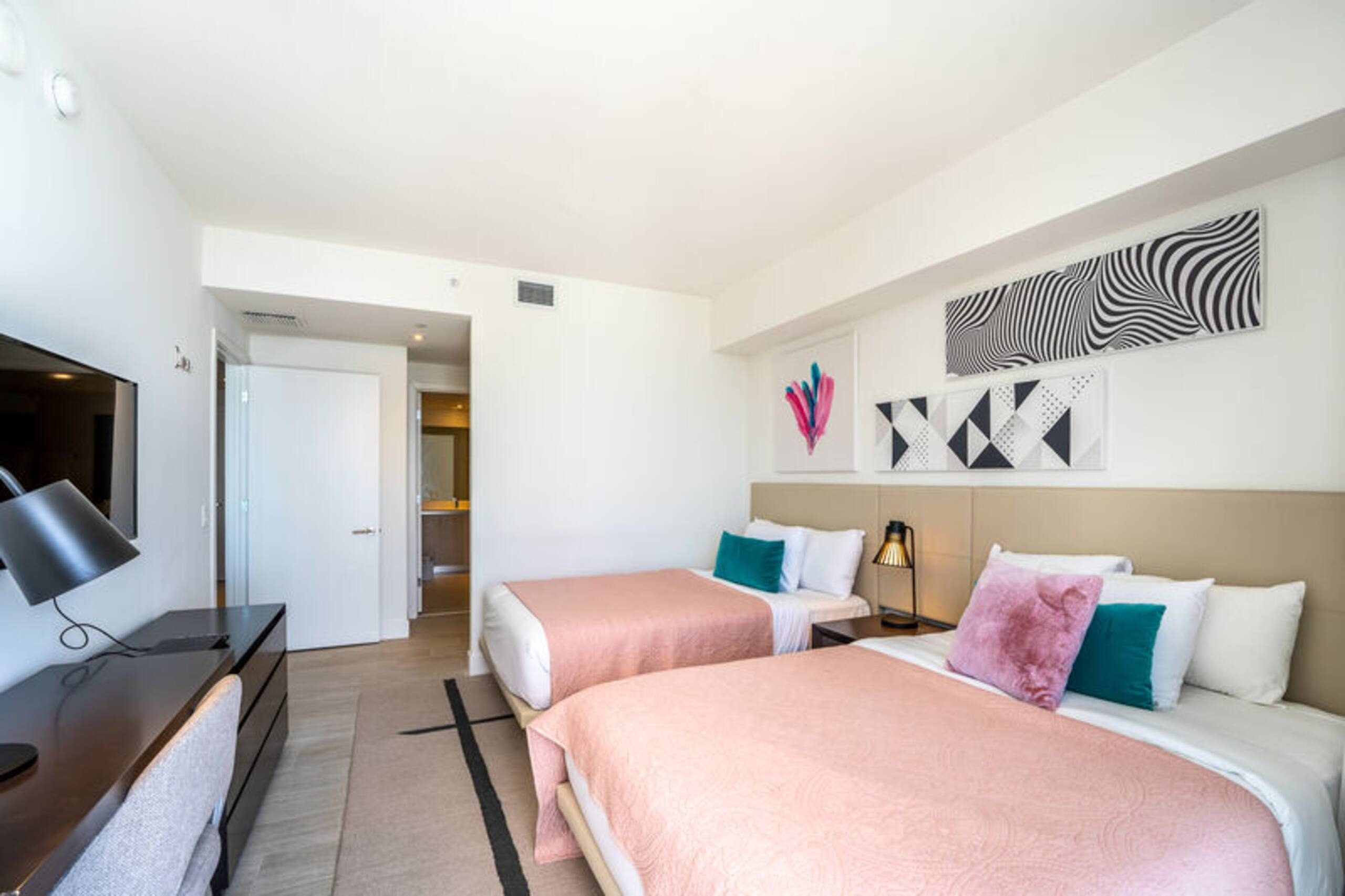 Bedrooms are designed with quality bedding and tasteful décor, offering a calm and restful environment tailored for privacy and comfort.