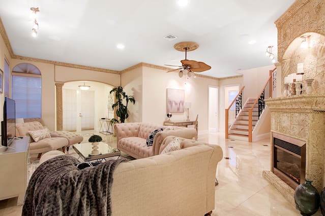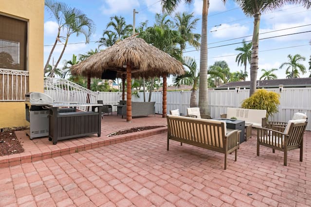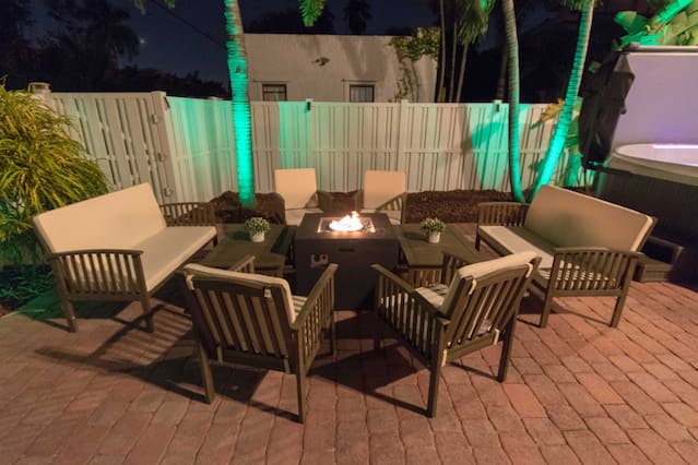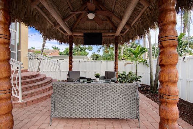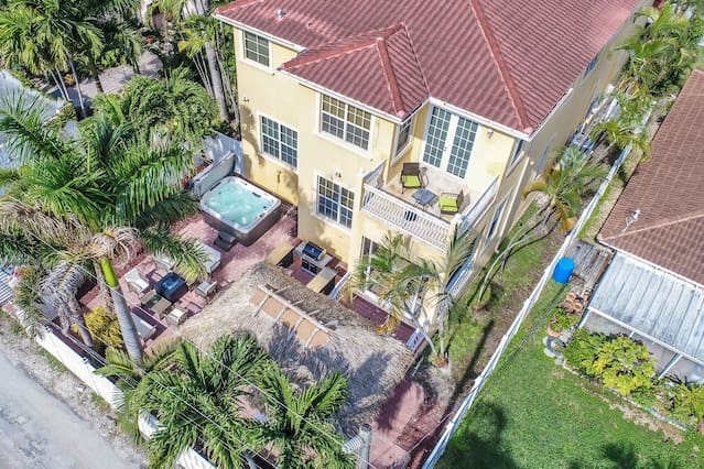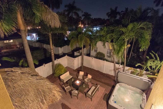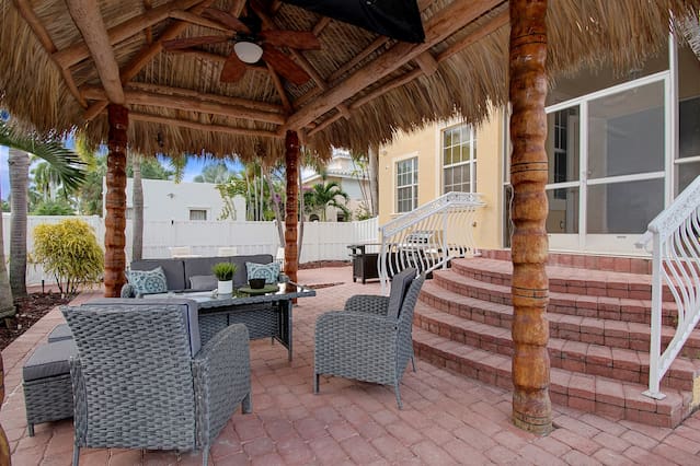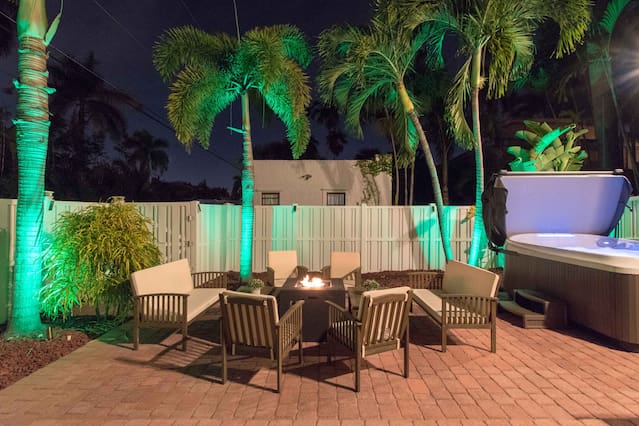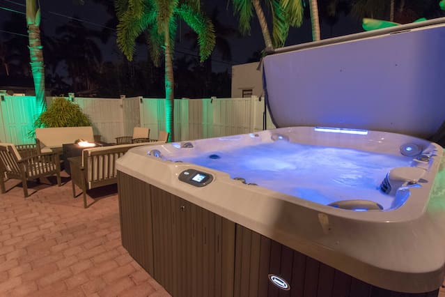 This is a immaculate 4 bedroom home that sleeps 10 people. New Italian style furnishings throughout, tons of light and beautiful back yard with New Hot Tub featuring led lighting and great massaging jets. Propane Fire table also! It is a 7 minute walk to beach. l complete with huge game room for adults and kids. We have stocked coffee, tea and kitchen. Features a Huge Master bedroom! Each bedroom has its own ensuite bathroom, tv and beach towels. Balcony in master, tiki hut and full grill. This amazing home is a newly renovated space with new designer furnishings throughout, you will truly feel like your on a high end luxury beach vacation. You will fall in love with the heart of Hollywood as it is super close to festive downtown, art circle, and the beach. All are less than 5 minutes drive away. Please note House has exterior security surveillance No Parties No Loud music No people in the house except booked guest - maximum 10 people All gatherings must be moved inside home at 11pm. No yelling or loud noises outside past 11 All TV are roku tv so there is no cable. Roku uses netflix, direct tv, hulu, or any internet based movie/tv service. You may use your own account for viewing. Guests have access to entire home We love to meet and greet our guests as much as possible. However in the event we cannot meet at the time of check in - we offer self check-in with the use of a smart lock or a door code the time will Please note***We require all guests to be greeted by ourselves or our property manager. We do ask that all last minute booking (with 2 days of checkin) present an ID to the greeter at time of check in along with the credit card used for booking. We reserve the right to refuse entry of any person wishing to enter the property that are not represented in the booking, have a different name than what appears on the booking, or refuses to present proof of identification. Guests of the booking person cannot enter home before the booking guest without authorization from us. We will check ID of every guest wishing to enter home, especially if the person that did the reservation is not at the property yet. Hollywood is a great family area. The street on which the home is located is the main street to the beach and also to Youngs circle, shopping, parks, supermarket, and restaurants. This property has ample parking in driveway or on street. max of 4 cars unless otherwise approved. City busses, Hollywood trolleys go up and down Hollywood beach and also to downtown Hollywood. Uber is quick and readily available in this area Driveway can for 2 cars comfortably and is on a hill - it is elevated off a main street and has 3 small steps to access home. Home does not have a pool, but has a huge 10 person hot tub with led lighting and water feature. Late checkout is 100$ per hour .Amenities