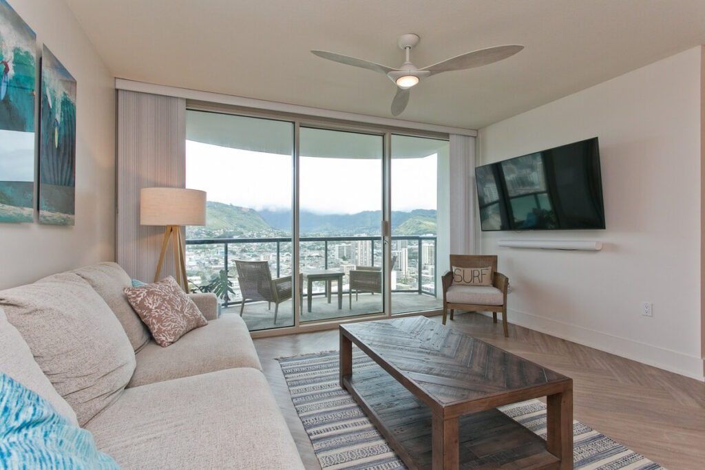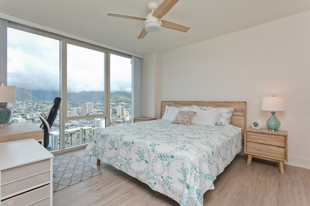 Experience the perfect blend of island charm and modern luxury in this beautiful 2-bedroom, 2-bath home in the heart of Honolulu. Situated on a high floor, the apartment offers stunning views of the city skyline and green mountains — a peaceful retreat just moments from Waikiki’s excitement.