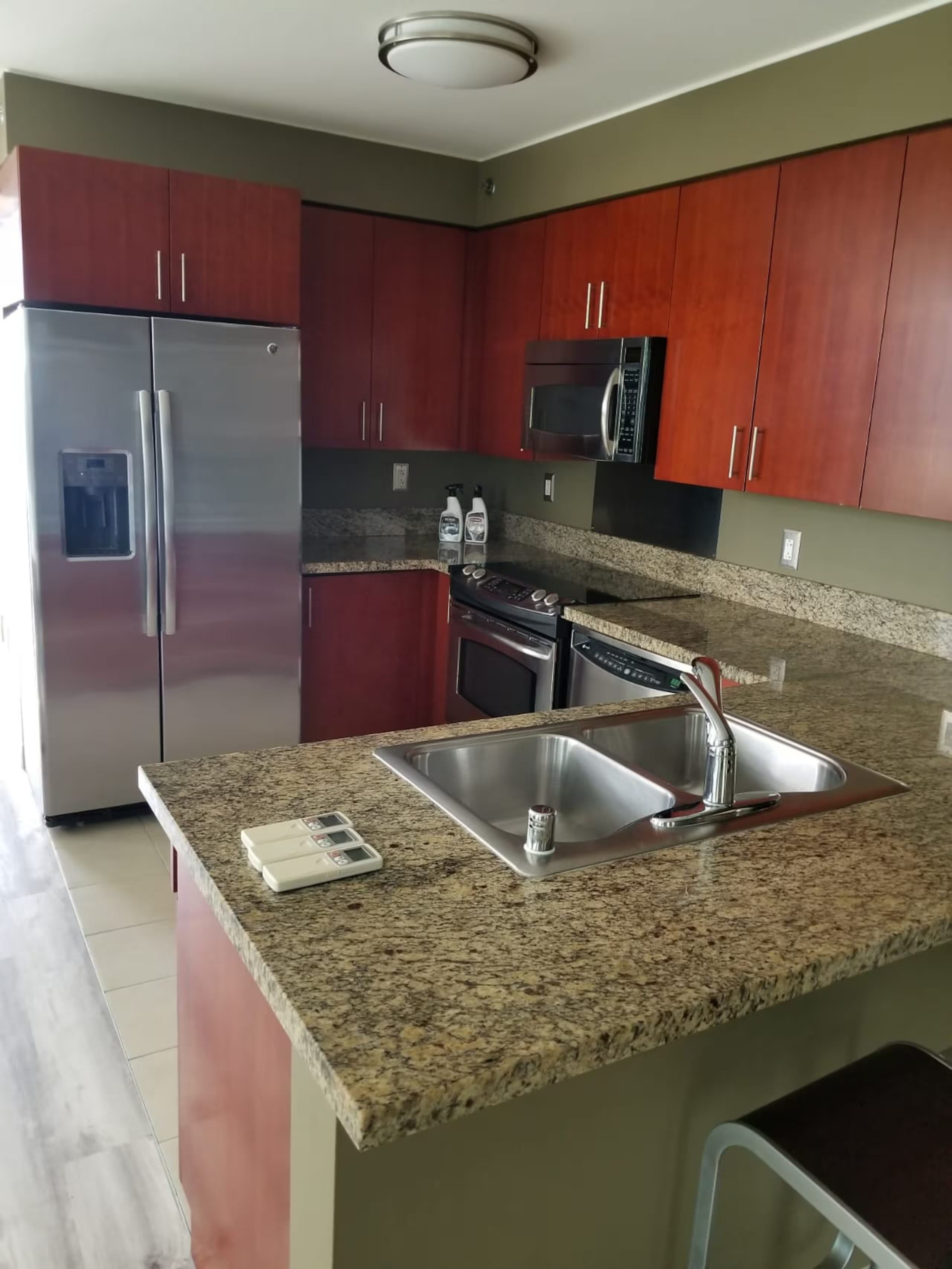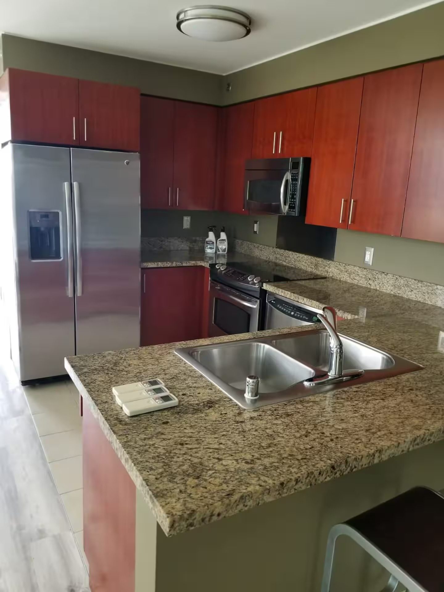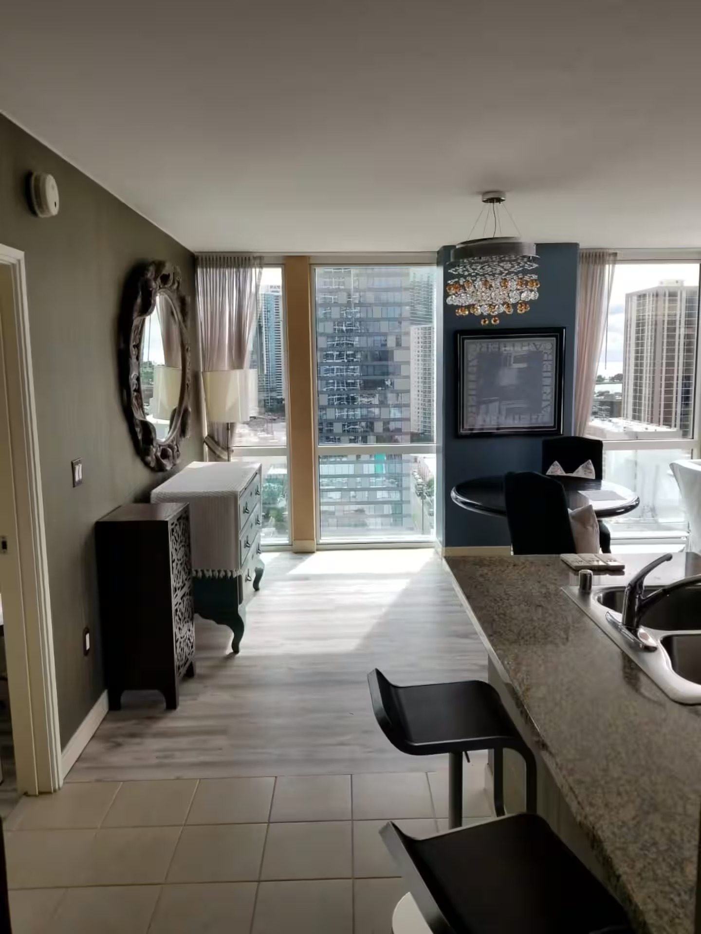 The living area combines comfort with coastal flair, offering a relaxing place to unwind and enjoy entertainment or city views. A well-equipped kitchen invites you to prepare meals with ease, complete with modern appliances and ample counter space. Enjoy dining together at the indoor table or take your meals outside to enjoy the warm Hawaiian breeze.