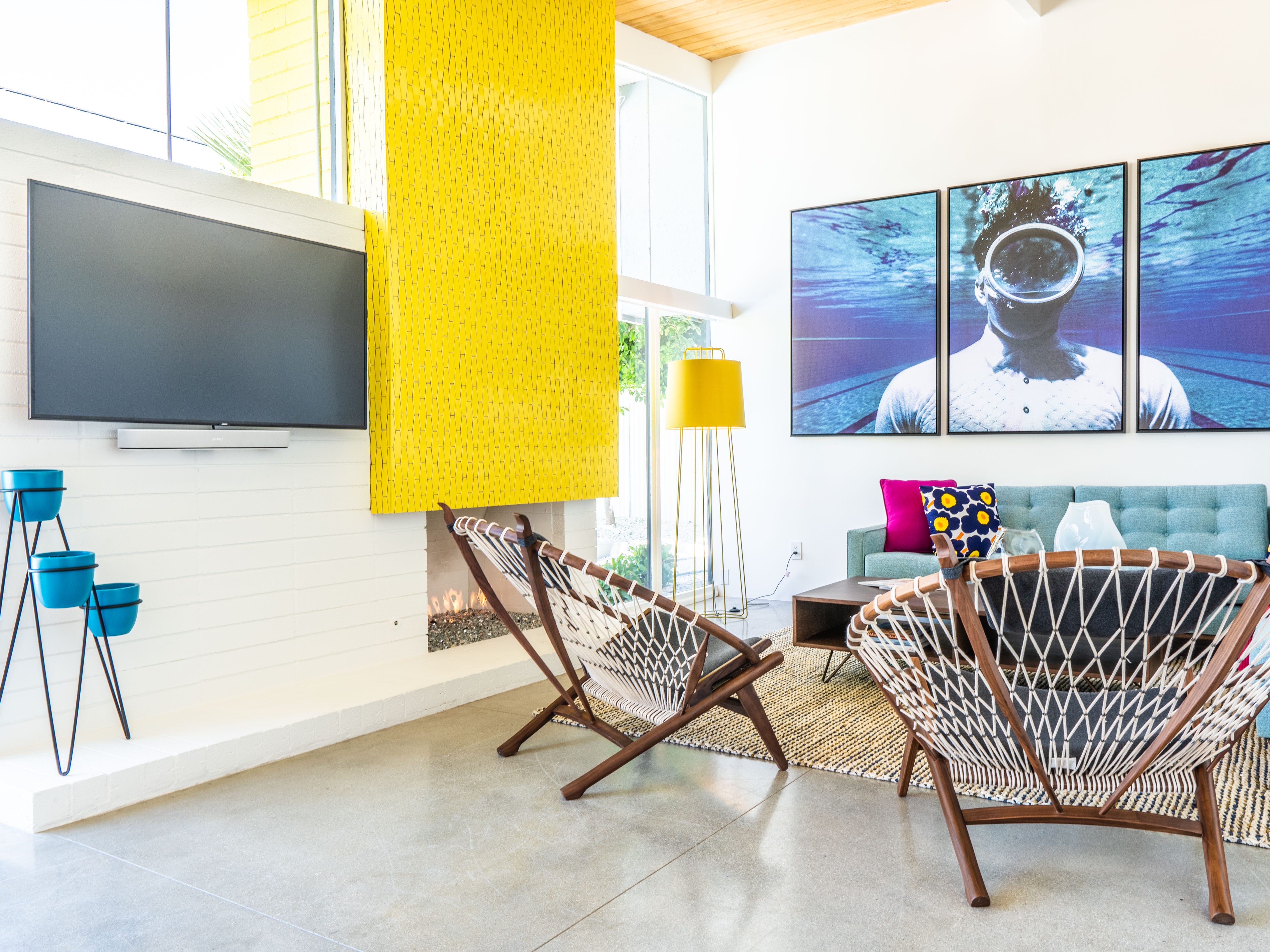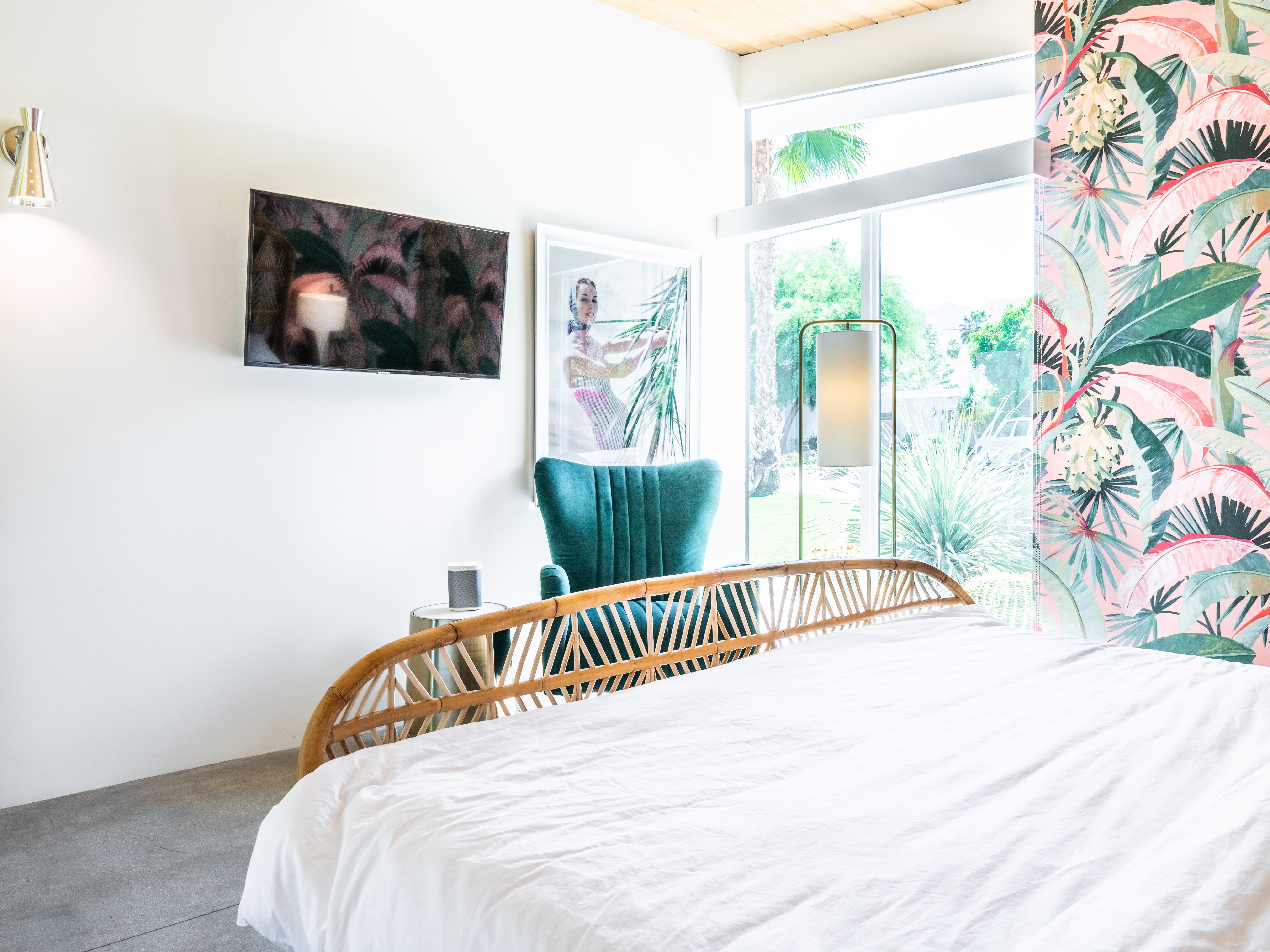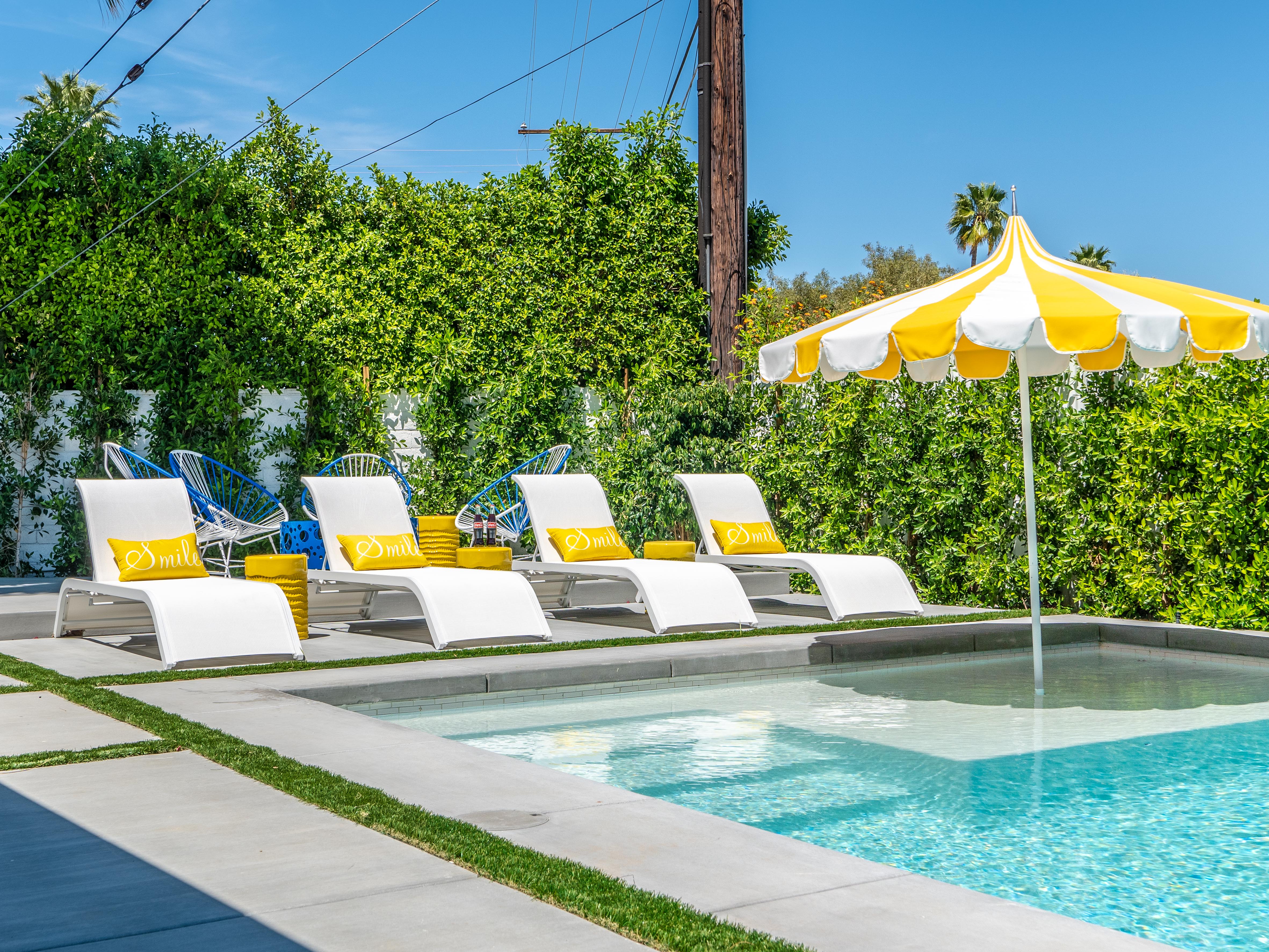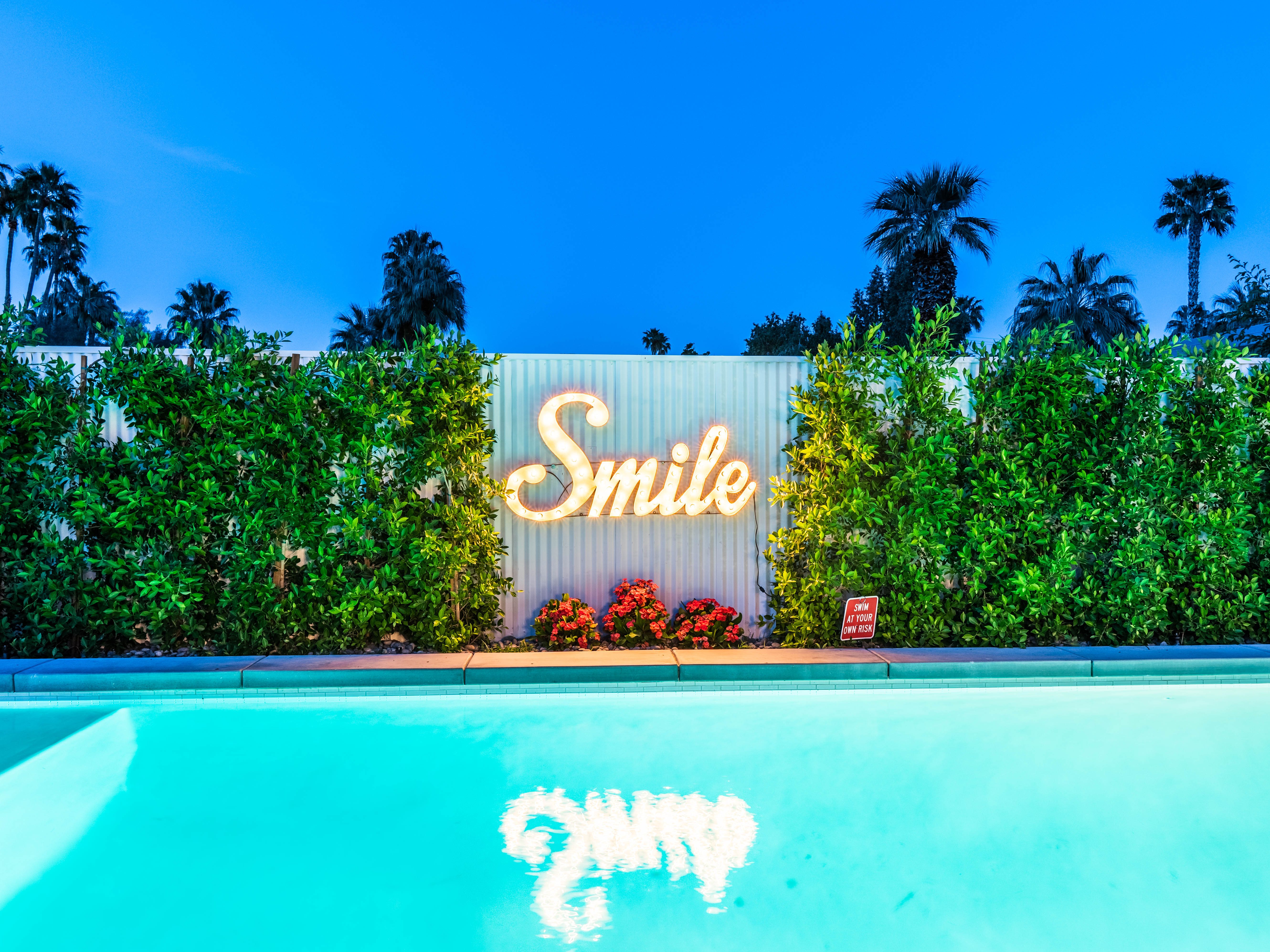 Designed by Starchitect Willian Krisel in 1958. Historic Twin Palms neighborhood. Modernism Week showpiece. Featured in Atomic Ranch Magazine. Saltwater pool, spa, firepit lounge and covered outdoor dining pavilion. Mountain views. Beds: K,K,K,F,T P.S. City ID #2248 **Primary renter must be a minimum of 25 years of age **GUESTS WILL BE REQUIRED TO SIGN A SEPARATE RENTAL AGREEMENT WITH HOST PER CITY REQUIREMENTS** to rent** Fabulous Location! Completely renovated and restored Mid Mod pool home by iconic Starchitect William Krisel. Recently updated by the PS Homeboys Design Team. Prime location in the historic Twin Palms neighborhood… just a quick stroll from the world famous Palm Canyon Drive. OUR HAPPY PLACE IN THE HEART OF PALM SPRINGS We are calling this fabulous vacation rental PS Smile. It is our Happy Place in the heart of Palm Springs. Created for Modernism Purists by Modernism Purists. This is the quintessential Palm Springs experience where it is all about the architecture, design, Mid Mod lifestyle and relaxing in the sunshine! Open concept floor plan, walls of glass, saltwater pool, spa, fire feature, covered outdoor dining pavilion with barbecue bar. Breathtaking mountain views. Flexible sleeping quarters for 6 adults plus two children. Additional napping areas. Beds: K,K,K,F,T MODERNISM WEEK SHOW PIECE Welcome to PS Smile - a fabulous pool home that has been showcased during Modernism Week for several years and was featured in Atomic Ranch Magazine. Recently purchased by new owners who have taken this iconic home to the next level. THE OUTDOOR LIVING SPACES Walled and gated for privacy, this property captures the nostalgic vibe of Palm Springs yesteryear while still being fresh and current - updated for the way we live today. The backyard itself has been carefully space planned - with lots of different gathering places. The heated saltwater pool has an integrated waterfall spa and a tanning deck. The yard also has a fire feature, covered outdoor dining pavilion, hard-lined gas BBQ, outdoor sink and island bar with seating. Cactus, palm trees and stunning mountain views all add to the magic of this special property. THE INTERIOR LIVING SPACES PS Smile has an eye popping chic designer style - with Instagram moments around every corner. The property owners worked with their design team to create the ultimate Palm Springs getaway. This is the type of property visitors return to year after year. It’s truly a delight to experience this phenomenal property - you will never want to leave. This classic midcentury Butterfly has been completely remodeled - yet still honors the home's midcentury architecture - preserving its clean lines, clerestory windows, open concept floor plan and walls of glass that blur the lines between indoor outdoor living. The living room, dining area and kitchen are all open to each other - providing enough space for your entire group to relax and enjoy. Everything has been updated for the way we live today - including new bathrooms, new kitchen, upgraded heating and cooling systems, high speed internet, 4 flatscreen TVs and a classically-Krisel gas fireplace. SLEEPING QUARTERS The high-style sleeping quarters offer flexible accommodations for all different types of traveling groups - from multi-generational families and golf foursomes to reunions for college friends and girls weekends. Plenty of room for everyone! Each bedroom features an ultra-comfortable hotel-quality mattress, flatscreen TV, private yard access and ample storage. The Master Suite has a King bed, private patio and en suite bath. There are also two King Guest Rooms in the main house that share easy access to the hall bathroom. Additionally there is a napping casita with a Full bed and poolside cabana with a twin-sized daybed. THE LOCATION PS Smile is perfectly located for those who want to be close to everything! This quiet residential neighborhood is ideal for walking and bike riding. Flat picturesque streets are lined with towering Palm Trees and gorgeous architecturally significant properties. You will be close to hiking trails, fine dining restaurants, coffee houses, entertainment venues and local conveniences like grocery stores, sandwich shops, and burger joints. Certain dog breeds under 65 lbs are allowed at this home, the dog fee is $195 (2 dogs maximum).Amenities
