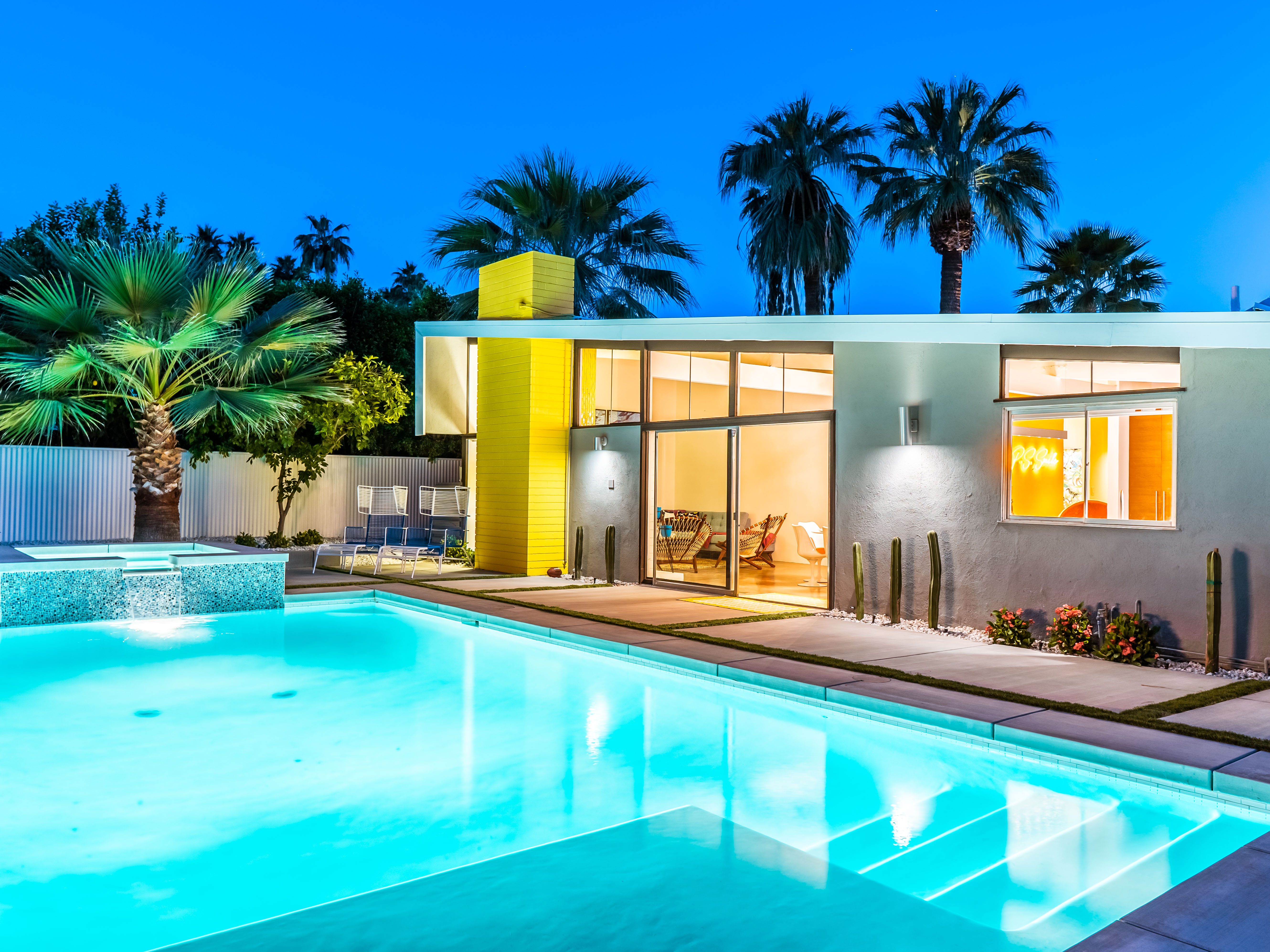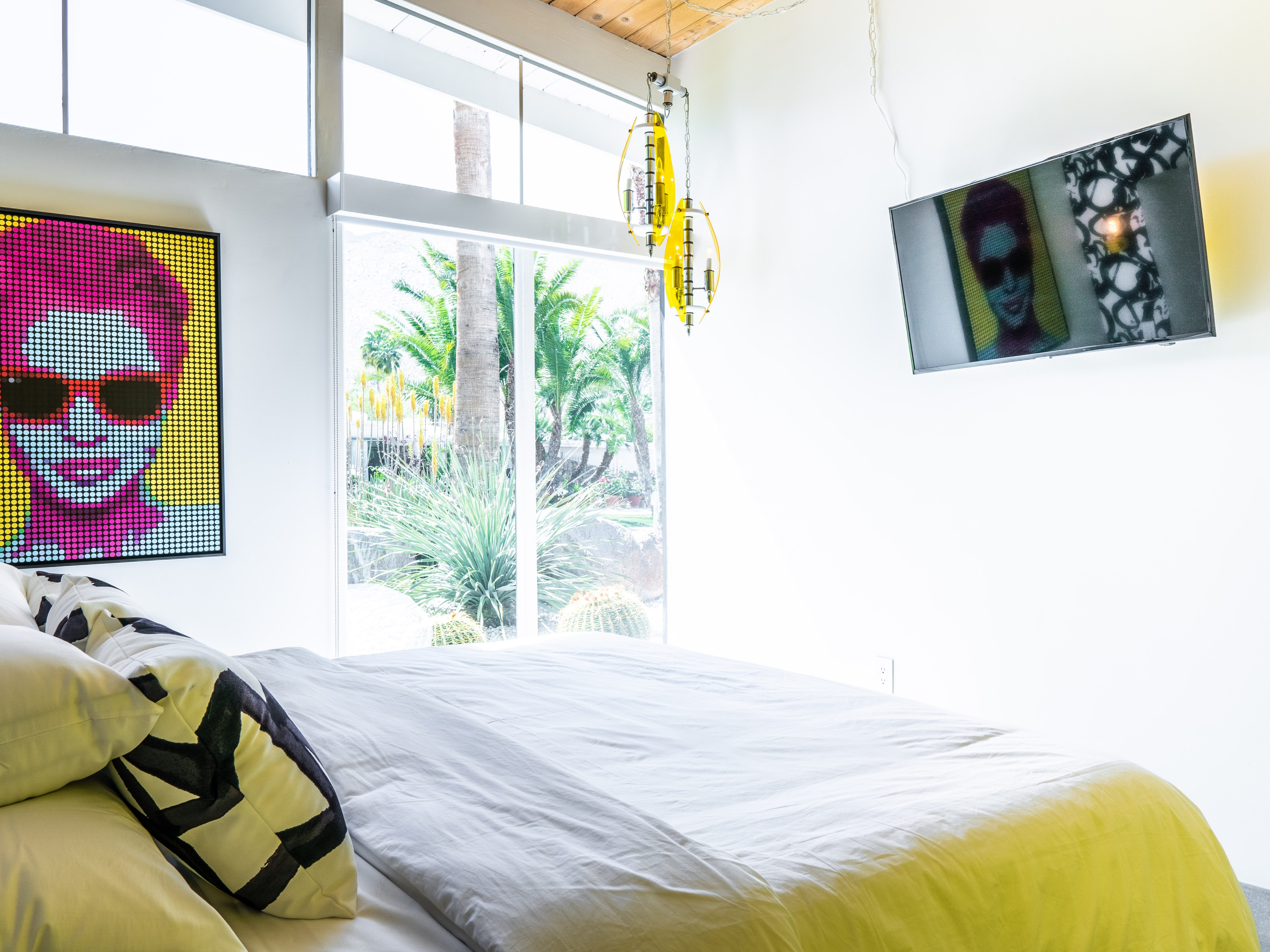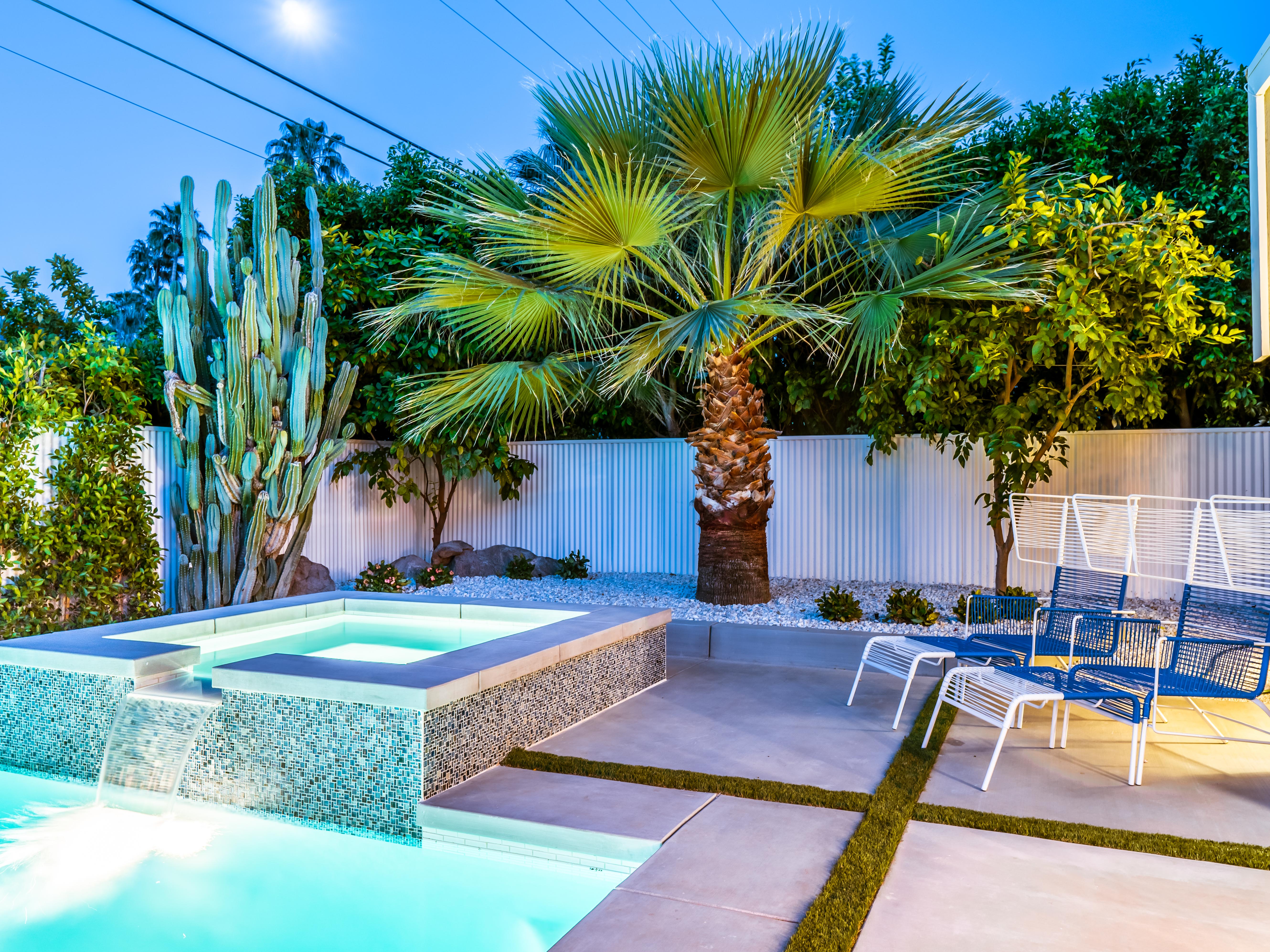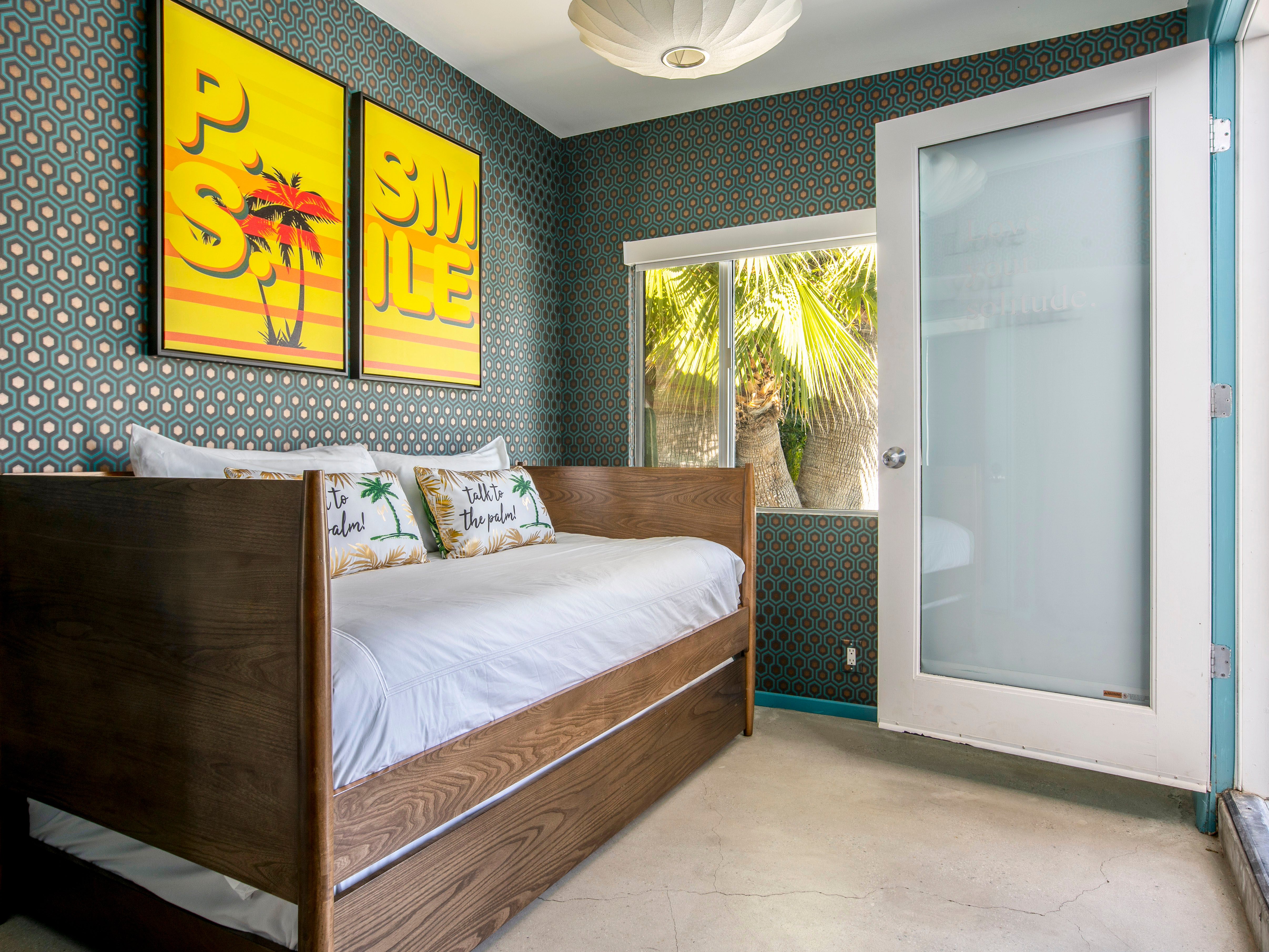 Designed by Starchitect Willian Krisel in 1958. Historic Twin Palms neighborhood. Modernism Week showpiece. Featured in Atomic Ranch Magazine. Saltwater pool, spa, firepit lounge and covered outdoor dining pavilion. Mountain views. Beds: K,K,K,F,T P.S. City ID #2248 **Primary renter must be a minimum of 25 years of age **GUESTS WILL BE REQUIRED TO SIGN A SEPARATE RENTAL AGREEMENT WITH HOST PER CITY REQUIREMENTS** to rent** Fabulous Location! Completely renovated and restored Mid Mod pool home by iconic Starchitect William Krisel. Recently updated by the PS Homeboys Design Team. Prime location in the historic Twin Palms neighborhood… just a quick stroll from the world famous Palm Canyon Drive. OUR HAPPY PLACE IN THE HEART OF PALM SPRINGS We are calling this fabulous vacation rental PS Smile. It is our Happy Place in the heart of Palm Springs. Created for Modernism Purists by Modernism Purists. This is the quintessential Palm Springs experience where it is all about the architecture, design, Mid Mod lifestyle and relaxing in the sunshine! Open concept floor plan, walls of glass, saltwater pool, spa, fire feature, covered outdoor dining pavilion with barbecue bar. Breathtaking mountain views. Flexible sleeping quarters for 6 adults plus two children. Additional napping areas. Beds: K,K,K,F,T MODERNISM WEEK SHOW PIECE Welcome to PS Smile - a fabulous pool home that has been showcased during Modernism Week for several years and was featured in Atomic Ranch Magazine. Recently purchased by new owners who have taken this iconic home to the next level. THE OUTDOOR LIVING SPACES Walled and gated for privacy, this property captures the nostalgic vibe of Palm Springs yesteryear while still being fresh and current - updated for the way we live today. The backyard itself has been carefully space planned - with lots of different gathering places. The heated saltwater pool has an integrated waterfall spa and a tanning deck. The yard also has a fire feature, covered outdoor dining pavilion, hard-lined gas BBQ, outdoor sink and island bar with seating. Cactus, palm trees and stunning mountain views all add to the magic of this special property. THE INTERIOR LIVING SPACES PS Smile has an eye popping chic designer style - with Instagram moments around every corner. The property owners worked with their design team to create the ultimate Palm Springs getaway. This is the type of property visitors return to year after year. It’s truly a delight to experience this phenomenal property - you will never want to leave. This classic midcentury Butterfly has been completely remodeled - yet still honors the home's midcentury architecture - preserving its clean lines, clerestory windows, open concept floor plan and walls of glass that blur the lines between indoor outdoor living. The living room, dining area and kitchen are all open to each other - providing enough space for your entire group to relax and enjoy. Everything has been updated for the way we live today - including new bathrooms, new kitchen, upgraded heating and cooling systems, high speed internet, 4 flatscreen TVs and a classically-Krisel gas fireplace. SLEEPING QUARTERS The high-style sleeping quarters offer flexible accommodations for all different types of traveling groups - from multi-generational families and golf foursomes to reunions for college friends and girls weekends. Plenty of room for everyone! Each bedroom features an ultra-comfortable hotel-quality mattress, flatscreen TV, private yard access and ample storage. The Master Suite has a King bed, private patio and en suite bath. There are also two King Guest Rooms in the main house that share easy access to the hall bathroom. Additionally there is a napping casita with a Full bed and poolside cabana with a twin-sized daybed. THE LOCATION PS Smile is perfectly located for those who want to be close to everything! This quiet residential neighborhood is ideal for walking and bike riding. Flat picturesque streets are lined with towering Palm Trees and gorgeous architecturally significant properties. You will be close to hiking trails, fine dining restaurants, coffee houses, entertainment venues and local conveniences like grocery stores, sandwich shops, and burger joints. Certain dog breeds under 65 lbs are allowed at this home, the dog fee is $195 (2 dogs maximum).Amenities