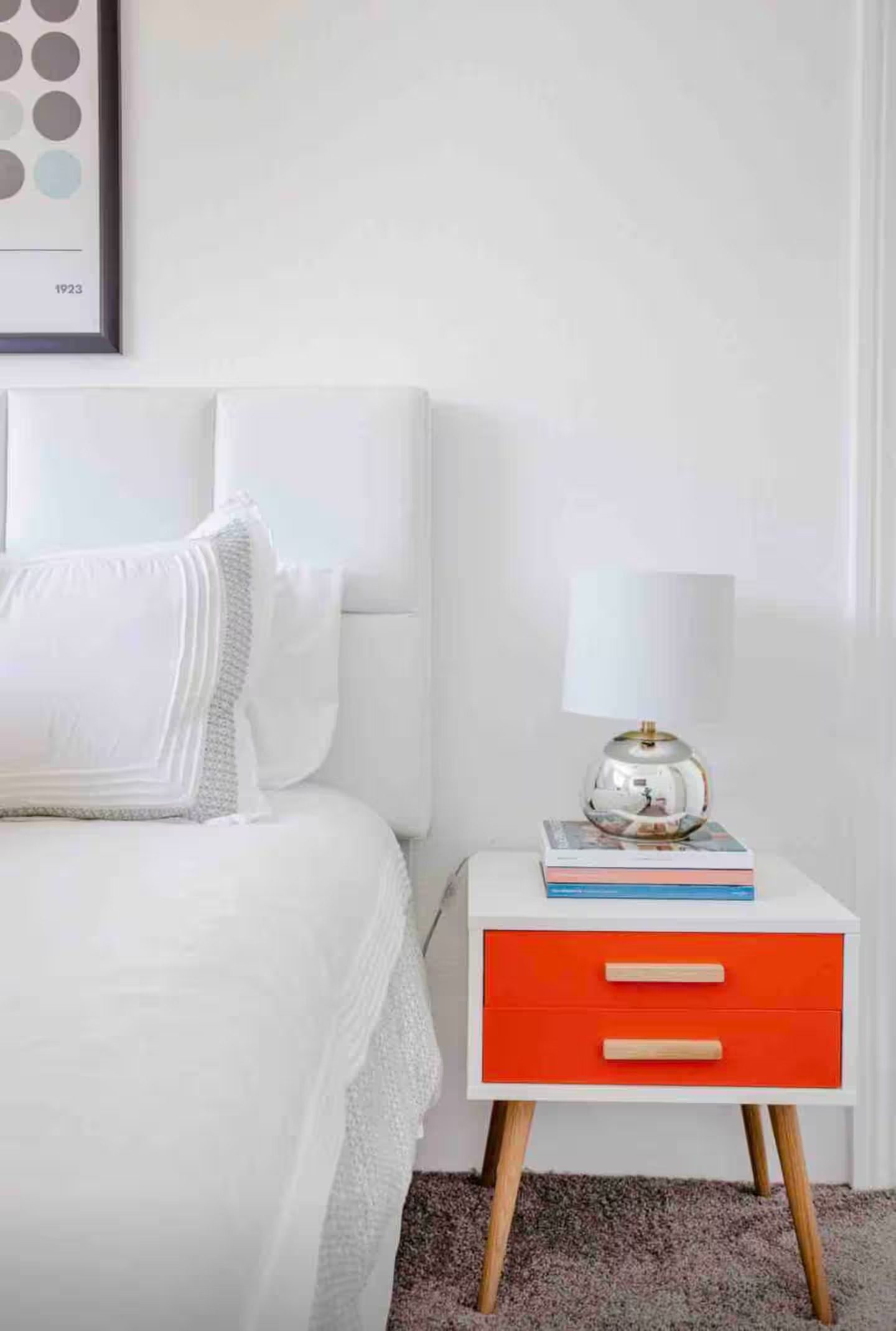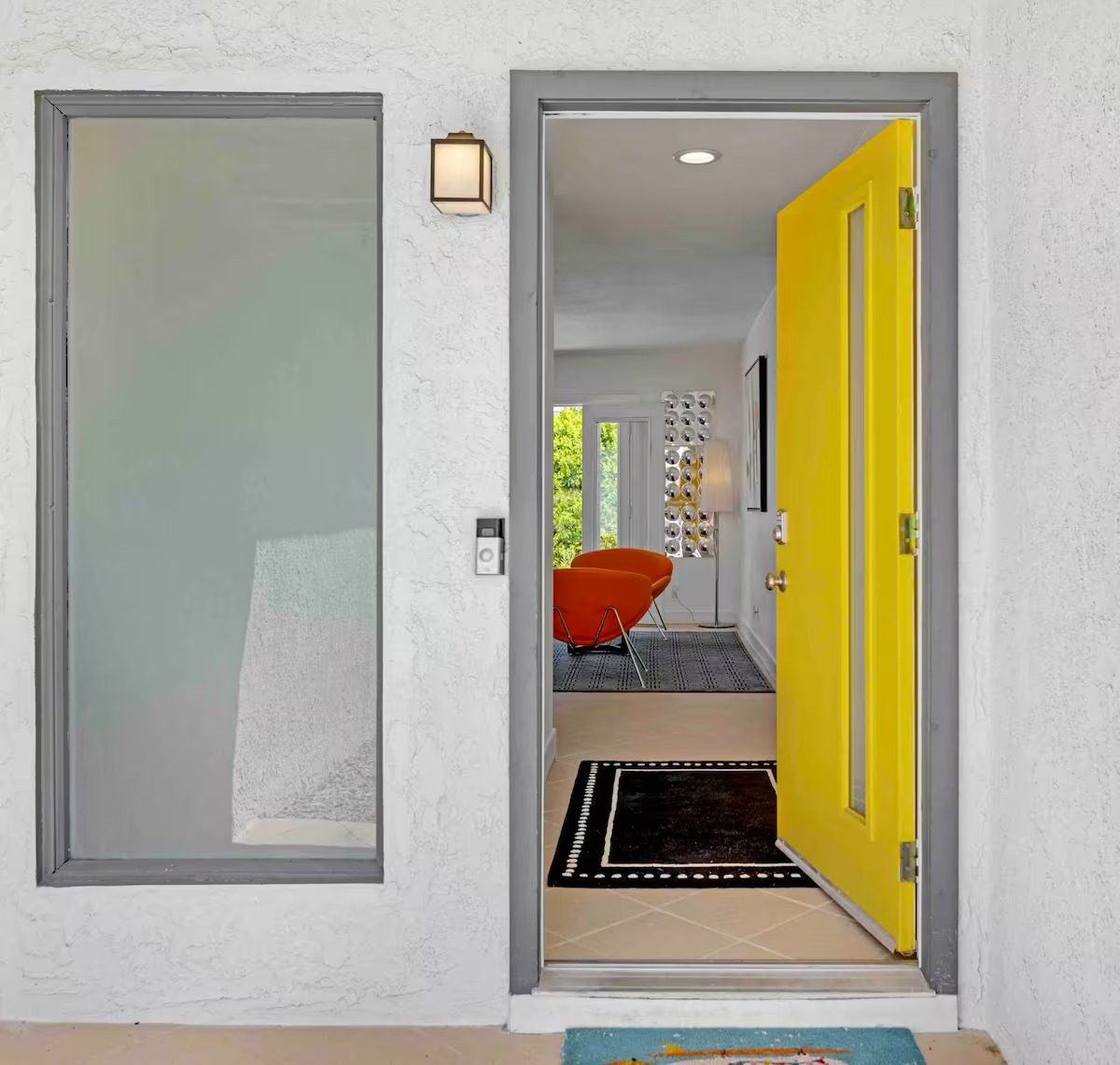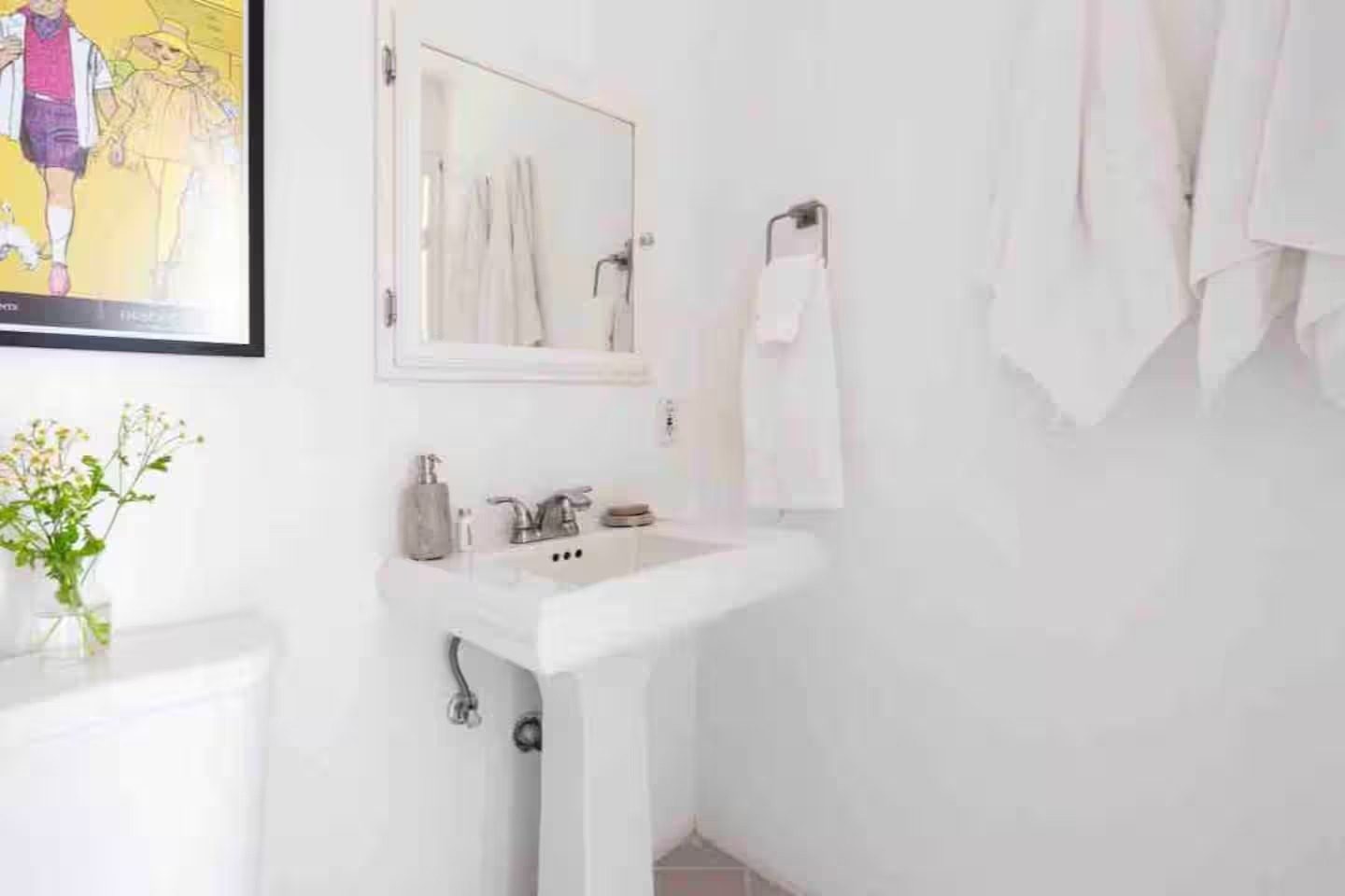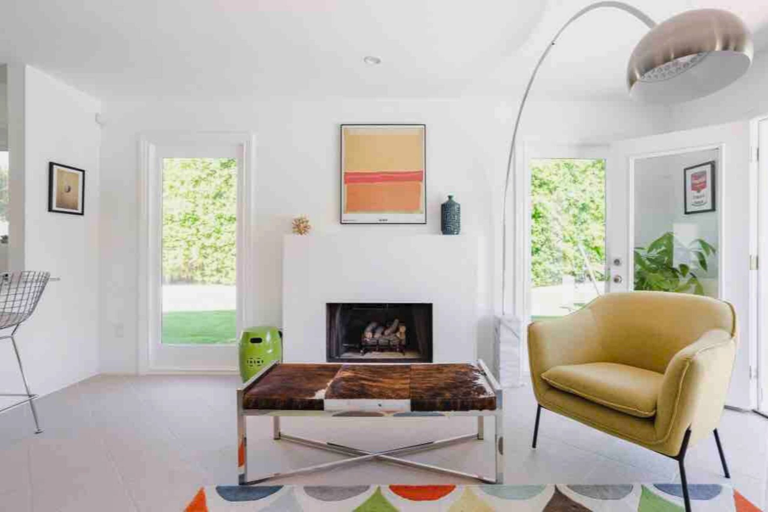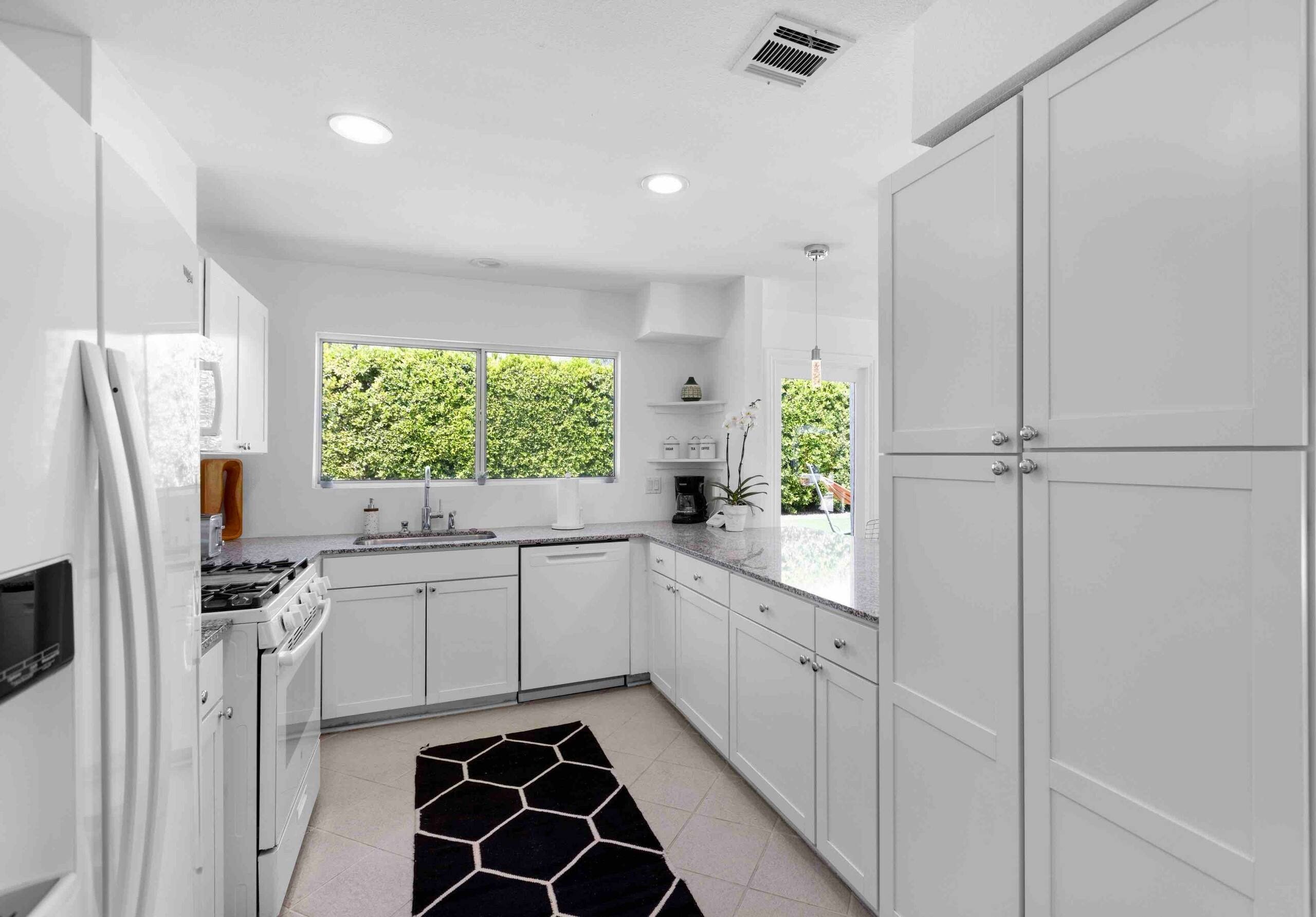 Step into a bright, airy living area that flows seamlessly into a fully equipped kitchen. Bold desert-inspired colors, mid-century touches, and boho-chic accents create a warm, joyful atmosphere that feels instantly relaxing.