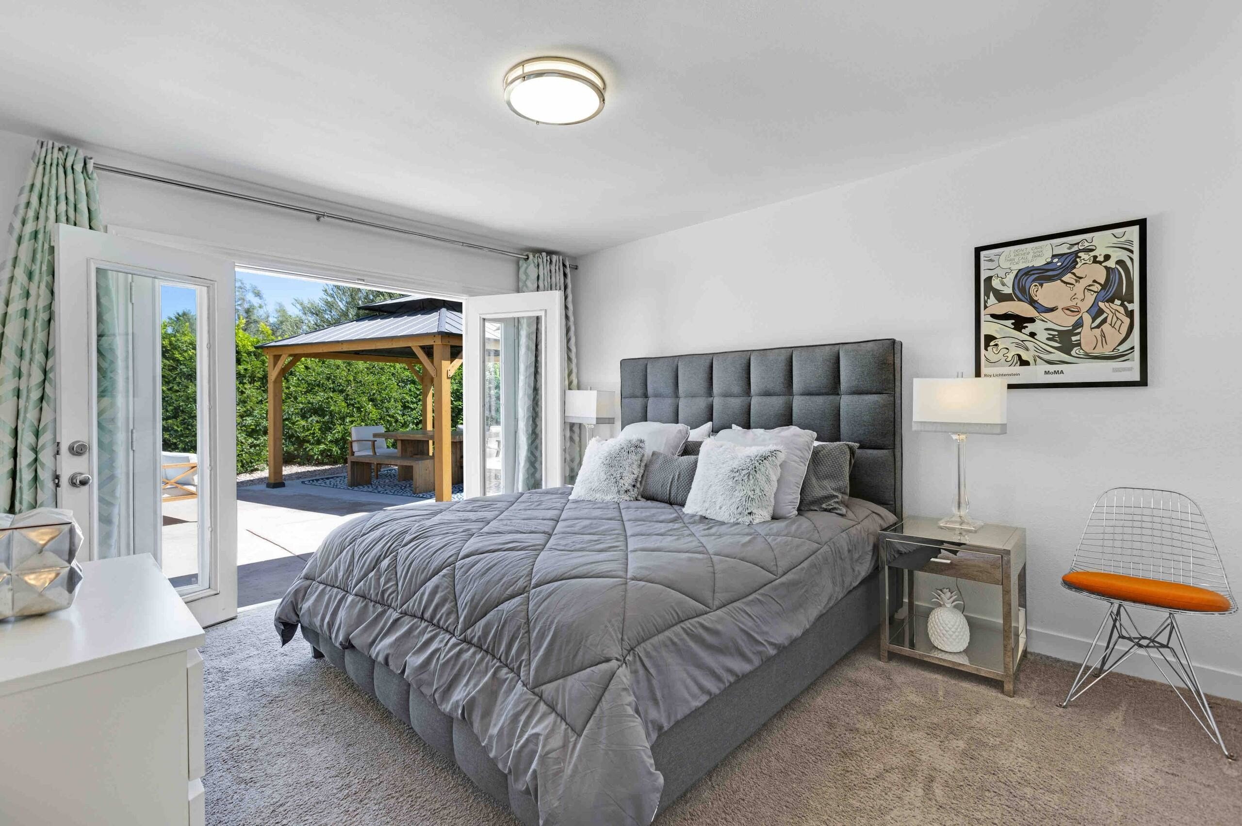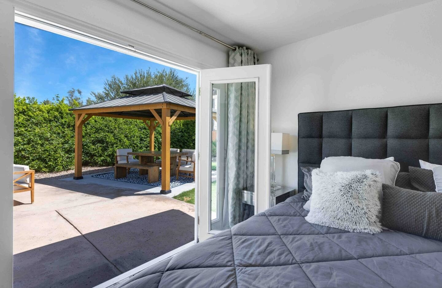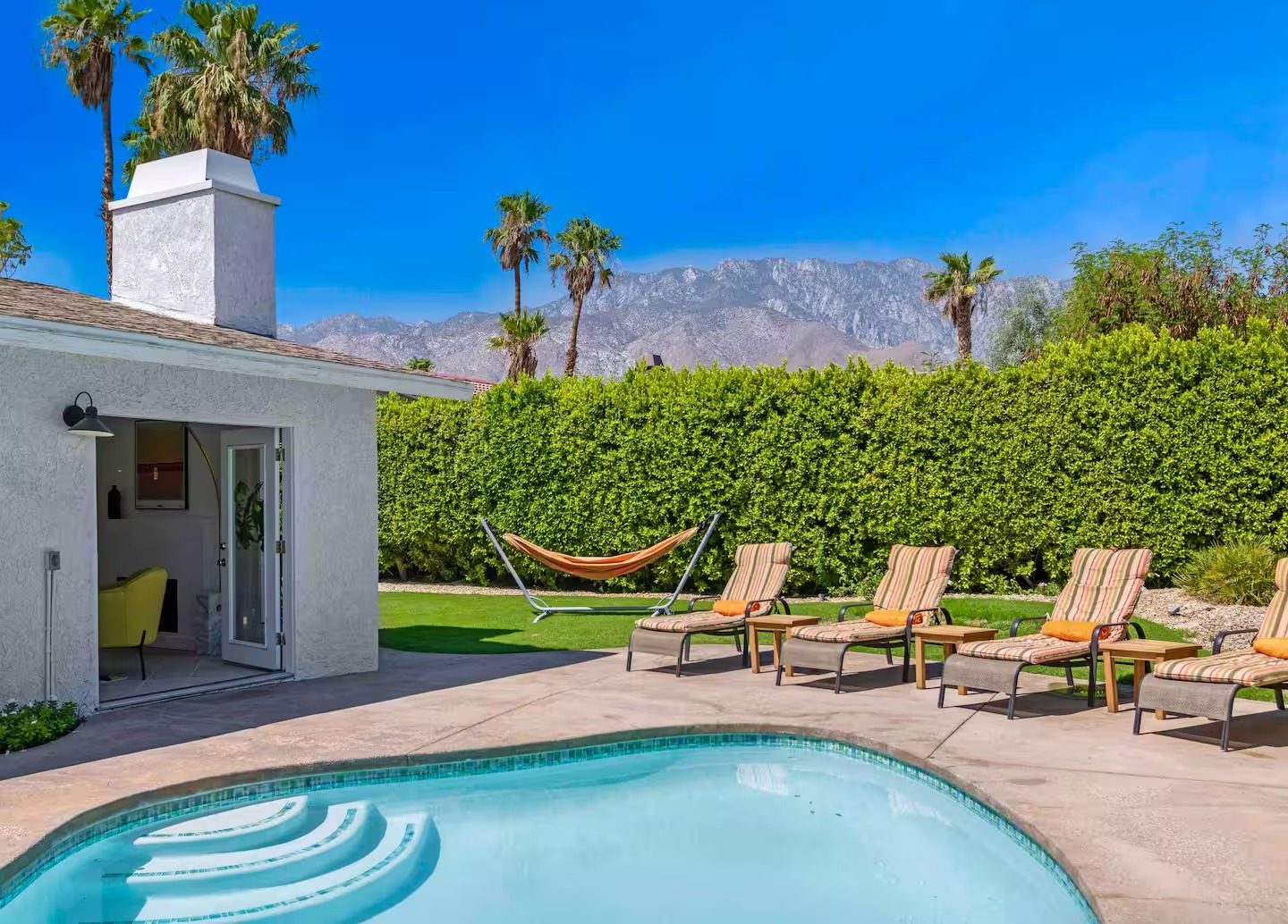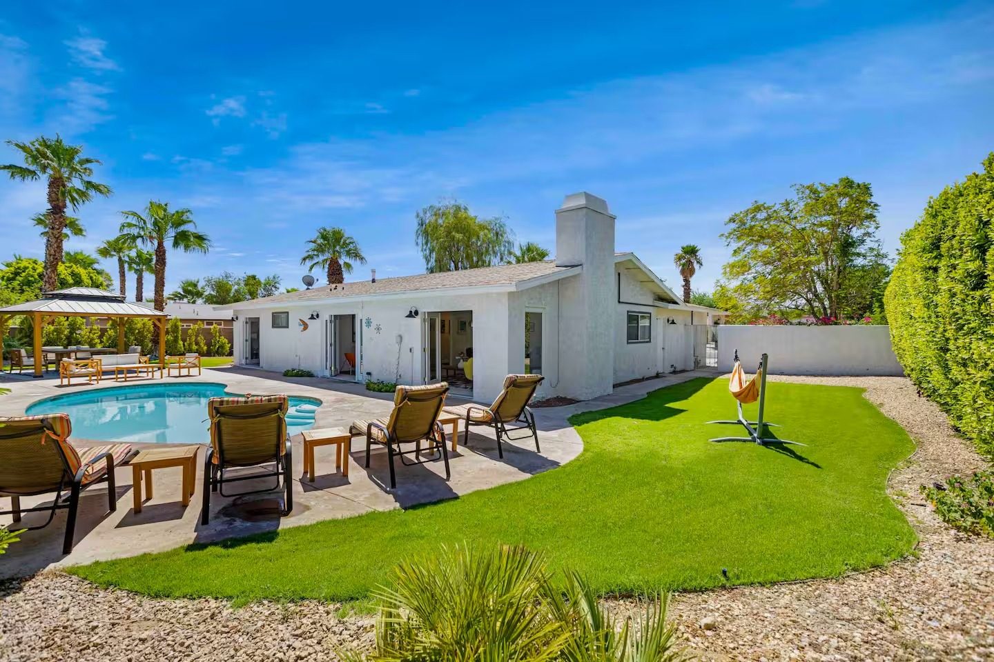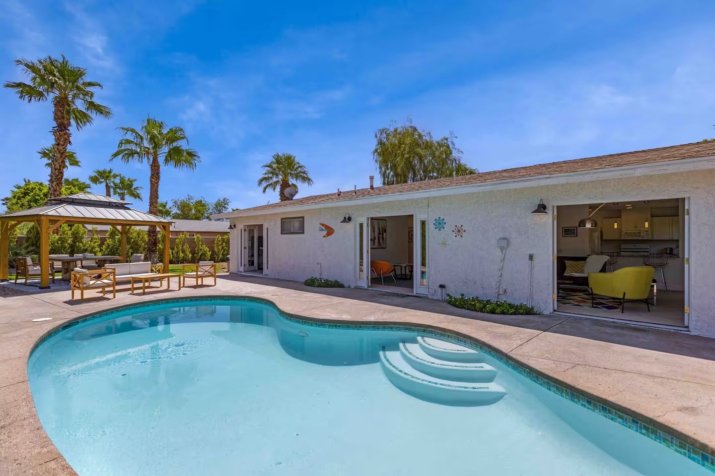 Outside, your private oasis awaits: a shimmering pool, spa jets, and a lush backyard that invites sunbathing, cocktails, and star-lit dips. Whether it's a quiet morning by the water or a lively evening with friends, the outdoor space sets the perfect mood.
