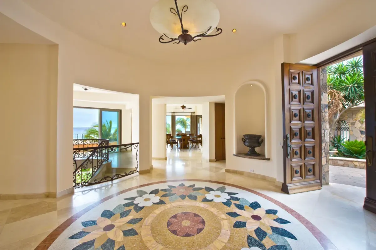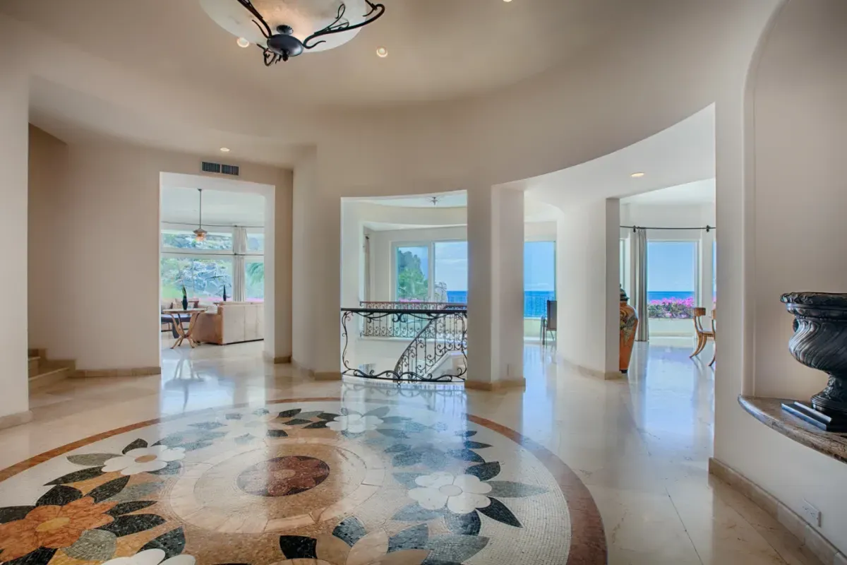 Set directly on a pristine stretch of beach with expansive views of the Pacific Ocean, this grand villa spans over 10,000 square feet of living space with breathtaking architecture and high-end finishes. Natural stone flooring, custom lighting, and dramatic indoor-outdoor flow create a warm yet sophisticated atmosphere perfect for both relaxation and entertaining.