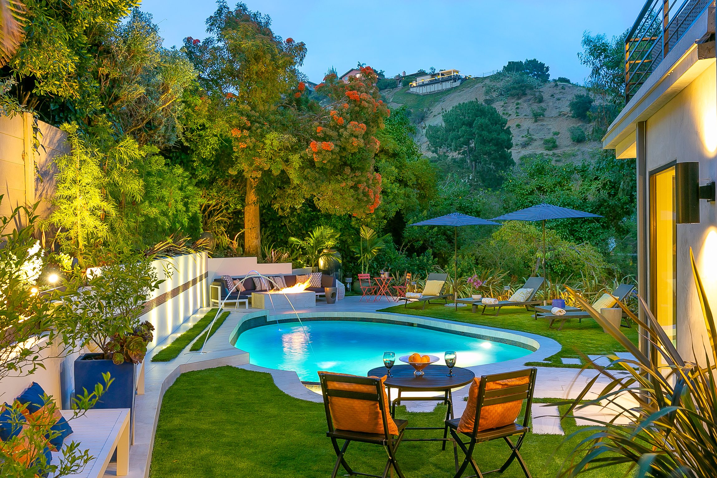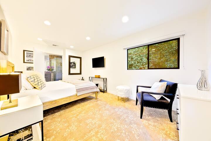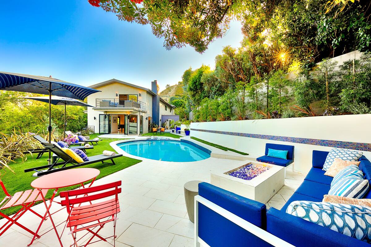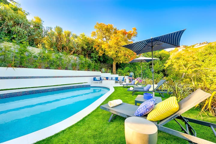 A private hillside retreat, leading to a quick shortcut road to West Hollywood in literally 6 minutes. Enjoy the privacy and greenery of this hillside villa and be close to the Beverly Hills Hotel (5 minutes), Rodeo drive shopping and the best restaurant and night life scene of LA. Open floor plan with plenty of entertainment decks space surrounding the house. Exquisite interior, and lush greenery views from every window, and balconies. High ceilings and plenty of light all throughout. The villa is close to the Beverly Hills Hotel, designer stores on Rodeo Drive, and the best restaurant and nightlife scene in LA. Reach West Hollywood in just 6 minutes via a shortcut road. There is no charge to heat the jacuzzi. An extra charge is only applicable to heat up the entire pool, and may vary depending on the time of year. Please inquire about this charge if interested in pool heat.Amenities