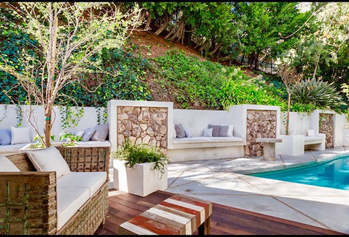 A mid century masterpiece on top of the Hollywood hills, located in a secluded neighborhood right in between two of the most beautiful parks of the city of Angeles And oasis of peace feels faraway, yet is only a 10 minutes drive from everywhere you want to be in Los Angeles An architectural dream of open spaces, Light and minimalism Decorated beautifully in order to create a cosy atmosphere The whole property is to be use by the guests Available by phone or text The house is in between tree people and Franklin canyon park 5 min from studio city and Sherman oaks and only 15 min drive from the heart of WEHO and down town Beverly Hills Drive or Huber Pool is not heatedAmenities