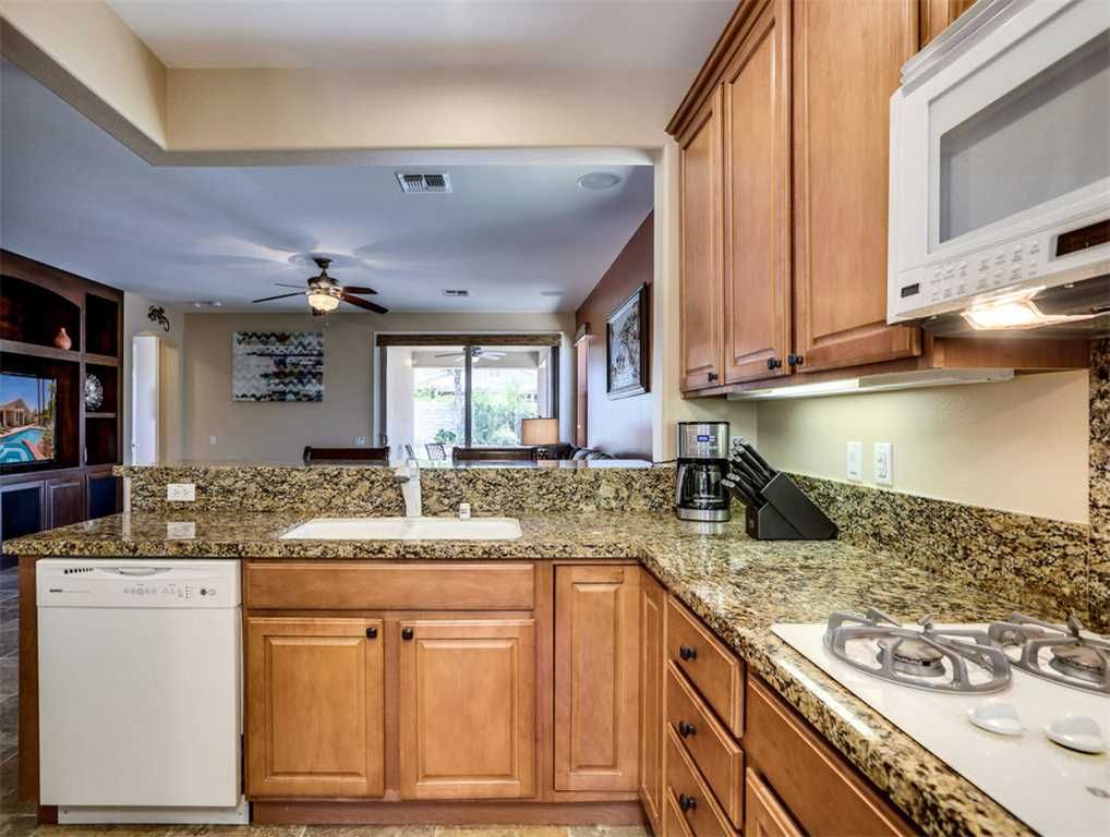 This Sun City Vacation Villa is recently updated and nicely appointed with all new furnishings and contemporary decor. The high ceilings are accented with bright and colorful touches throughout.