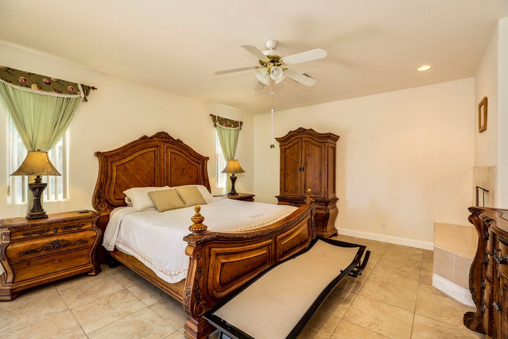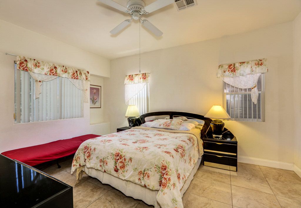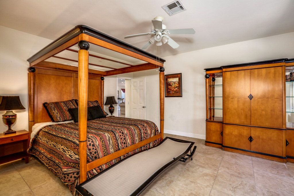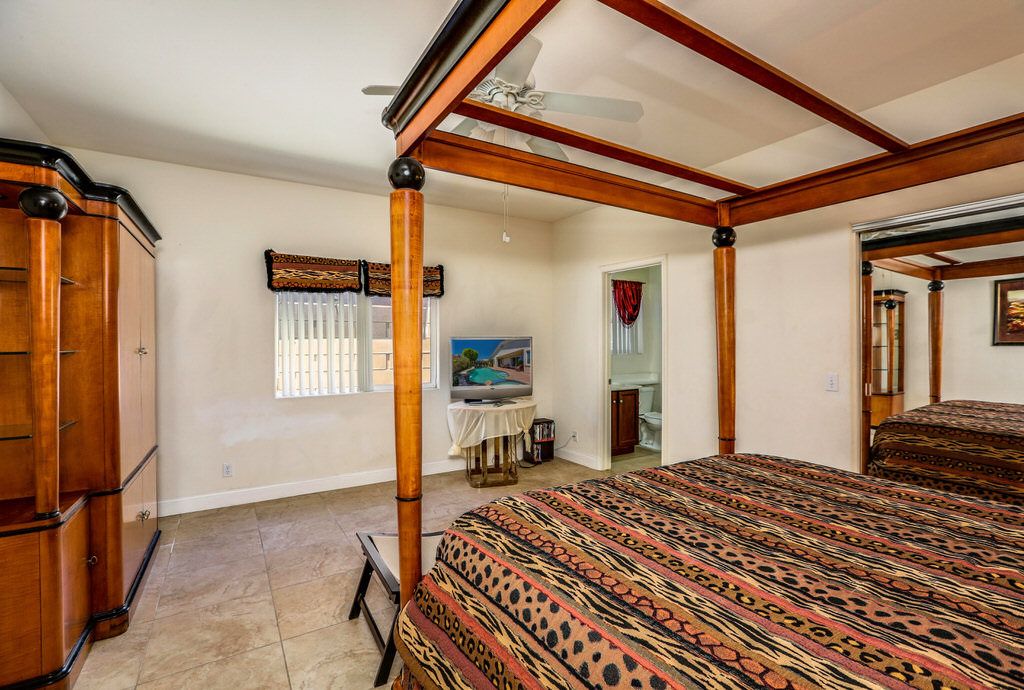 Adjacent to the master is the first of three guest bedrooms. This large room features a luxurious wood canopy bed and 48"" TV, with Jack-n-Jill bathroom.