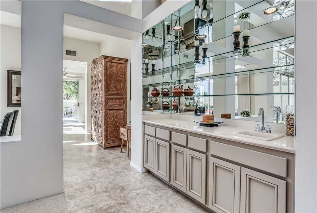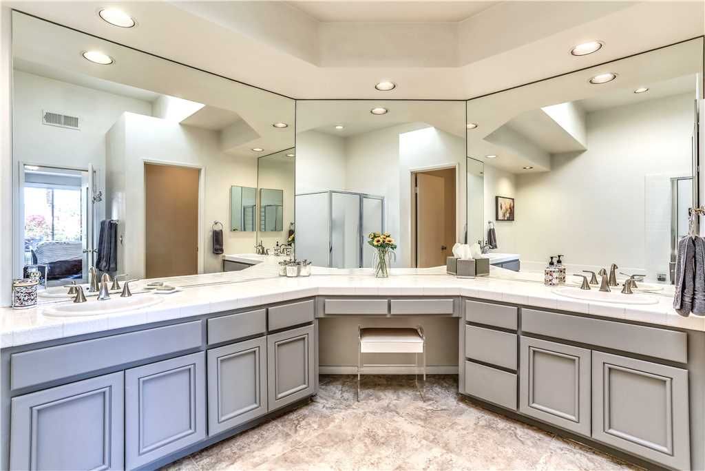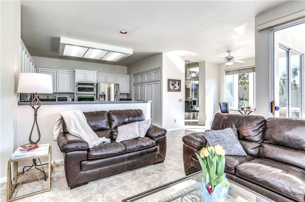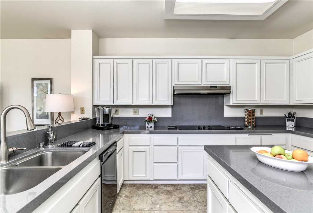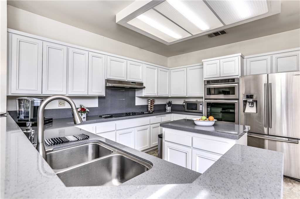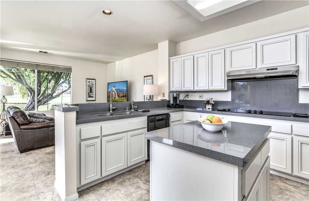 The open concept floor plan, with 1,700 square feet of new Porcelain tile, continues into a dining room that easily accommodates 6. There’s also a "Cafe Corner" which is just adjacent to a recently remodeled gourmet kitchen that features new quartz counter tops, stainless steel appliances and an island.