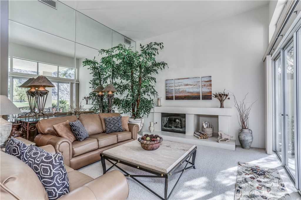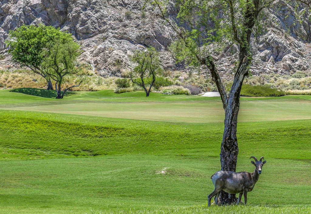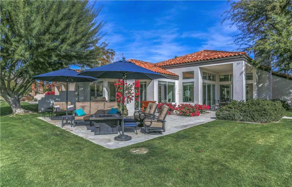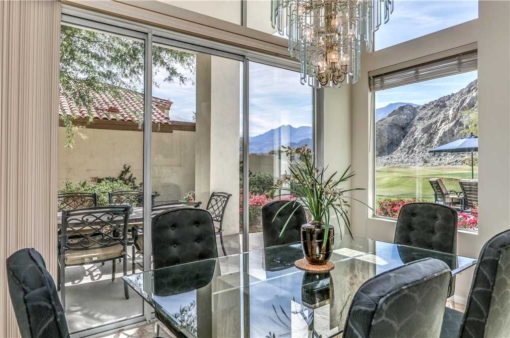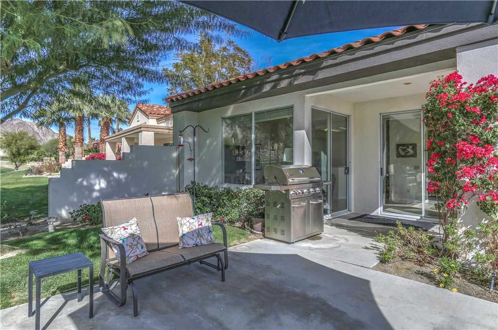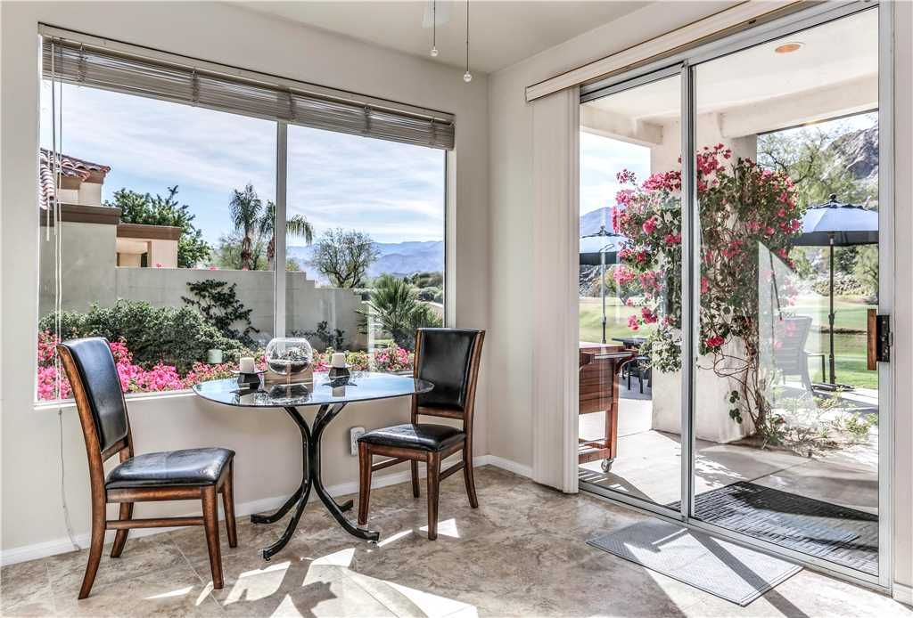 Step outside to 180 degree mountain and golf course views, a brand new top rated gas grill, outdoor covered dining for 6, gas fire pit with seating for 8, relaxing glider, teak party ice box and much more. All surrounded by stunning flowers, plants, lush fairways and maybe an occasional Big Horn sheep