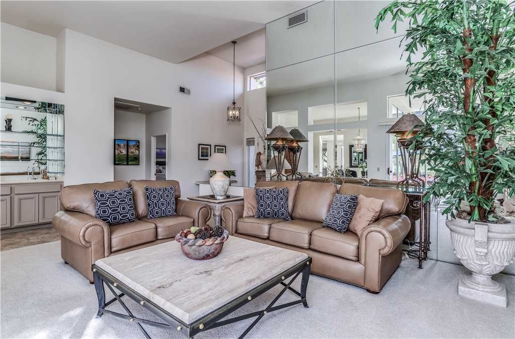 This home creates an ultimate desert experience. A grand entry with 15 foot high ceilings leads into a stunning Living Room with wet bar and a completely unobstructed view of the Santa Rosa's that is fully lit at night. This is one of only 36 homes offering this stunning and extended view experience in the entire valley.