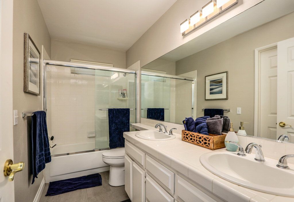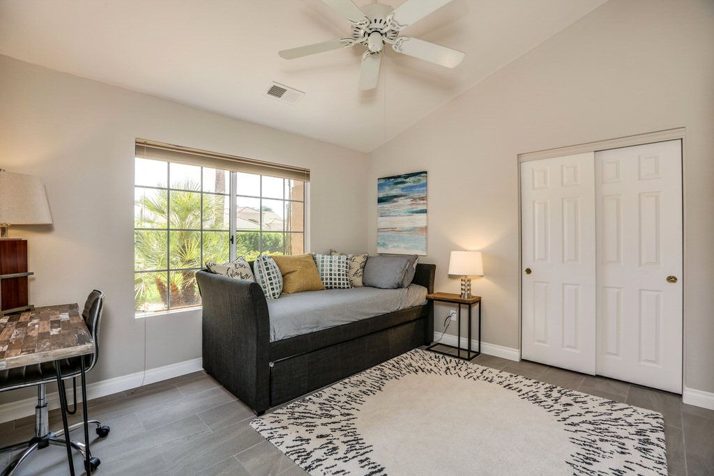 The second guest bedroom has a comfortable queen bed and a window onto a beautiful landscaped yard. The third bedroom features a day bed with two twin beds.