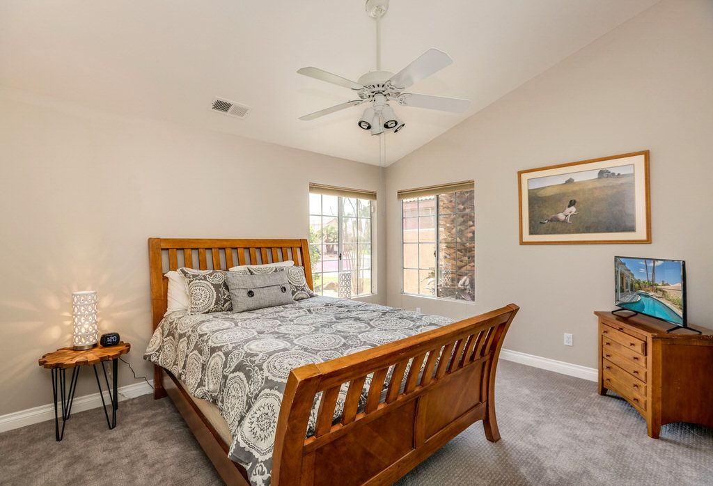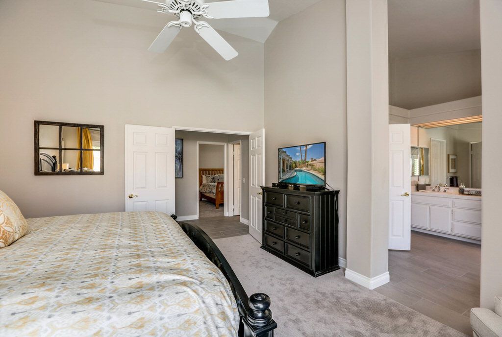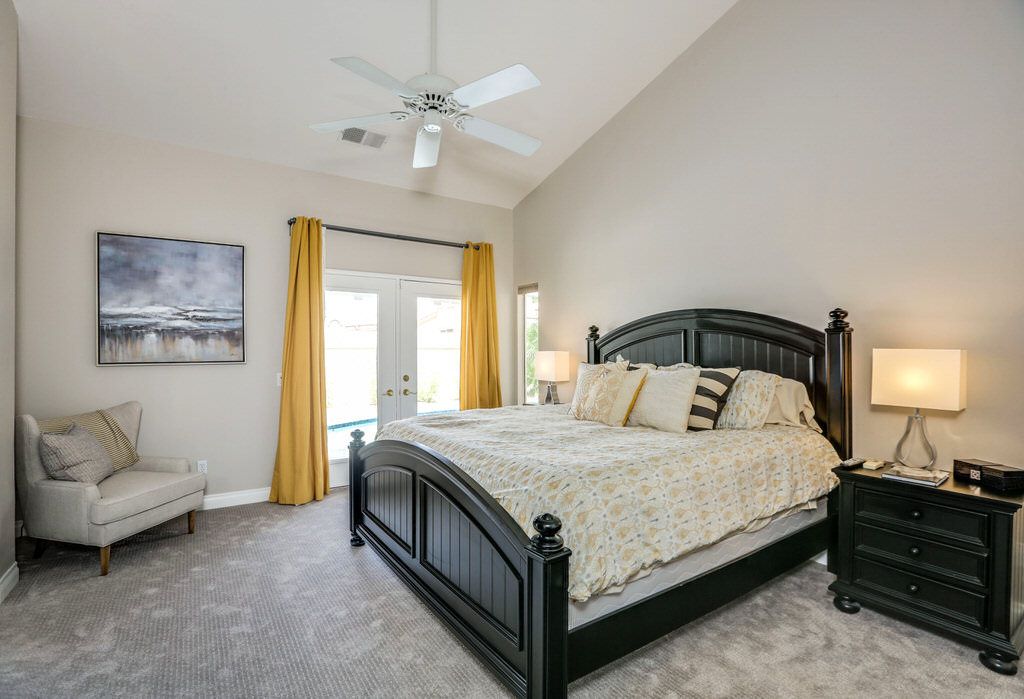 The master retreat features king bed, has a nice sized walk in closet and updated bathroom and views to the pool deck and the private back yard.