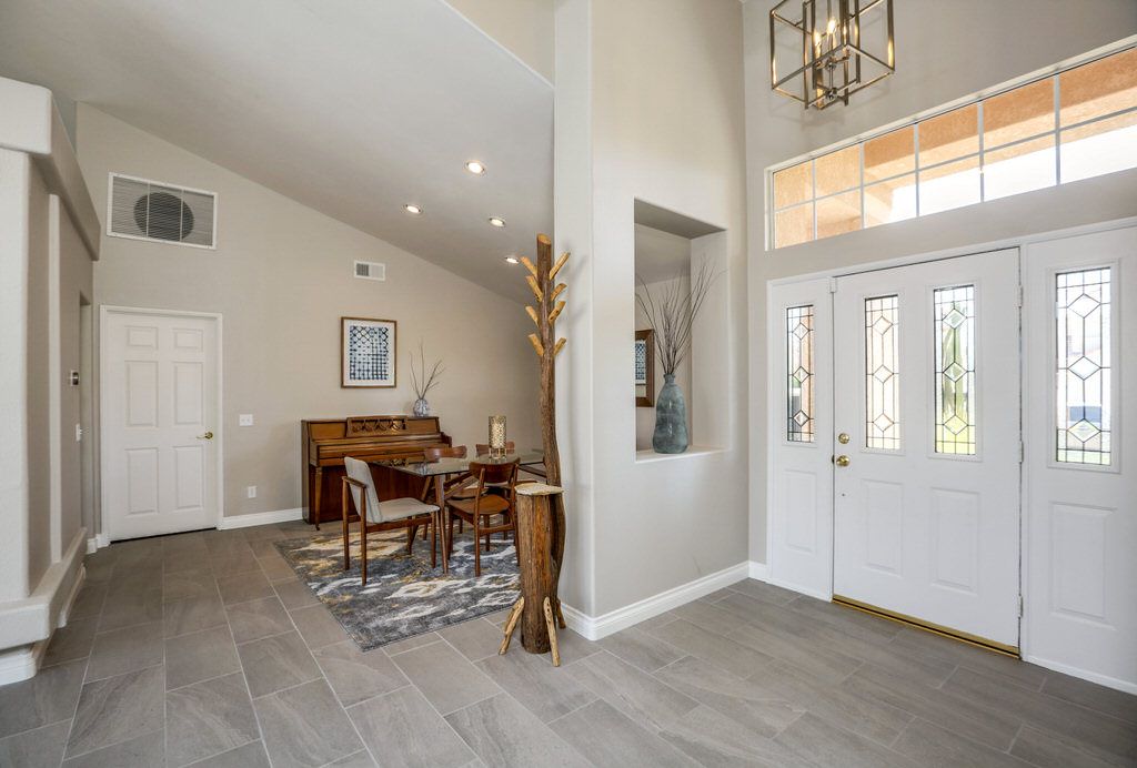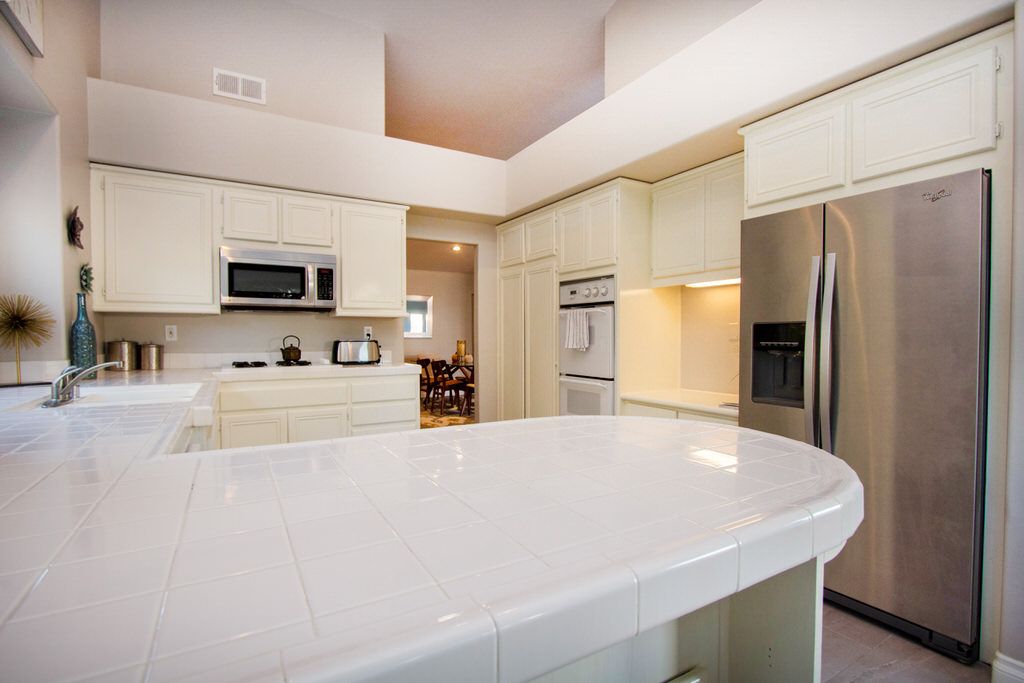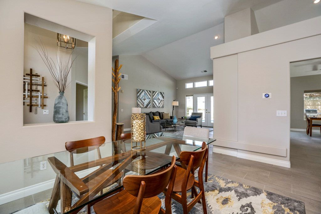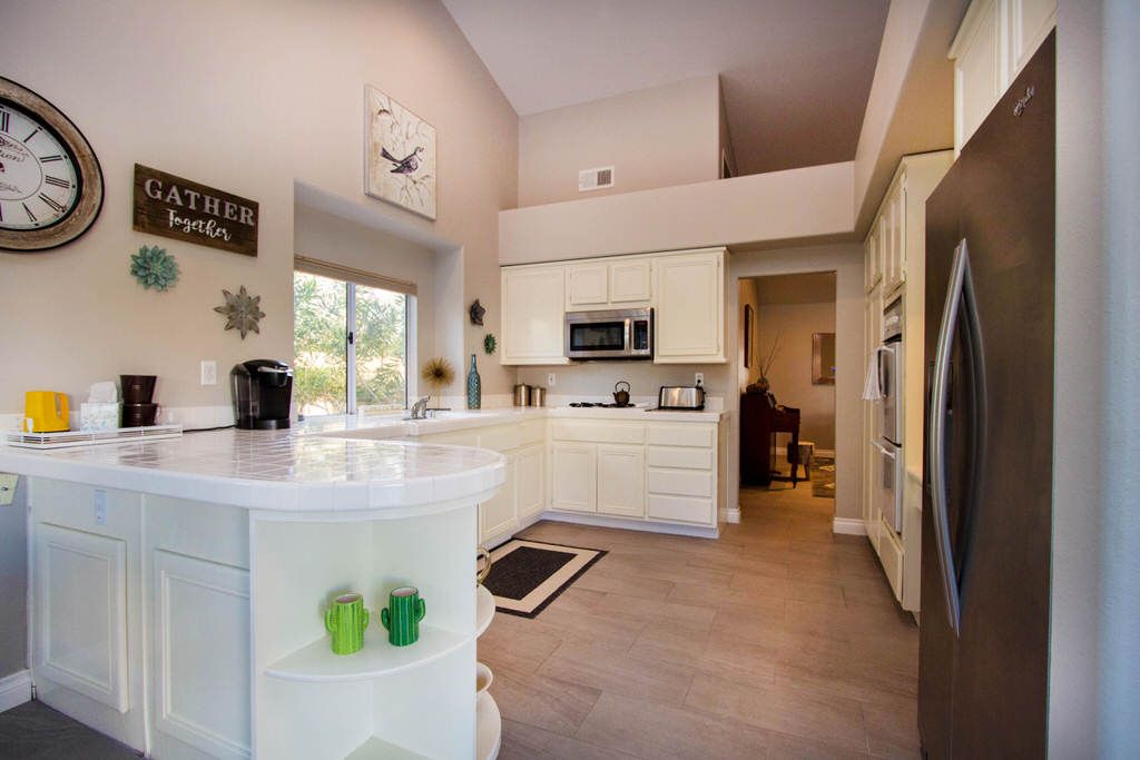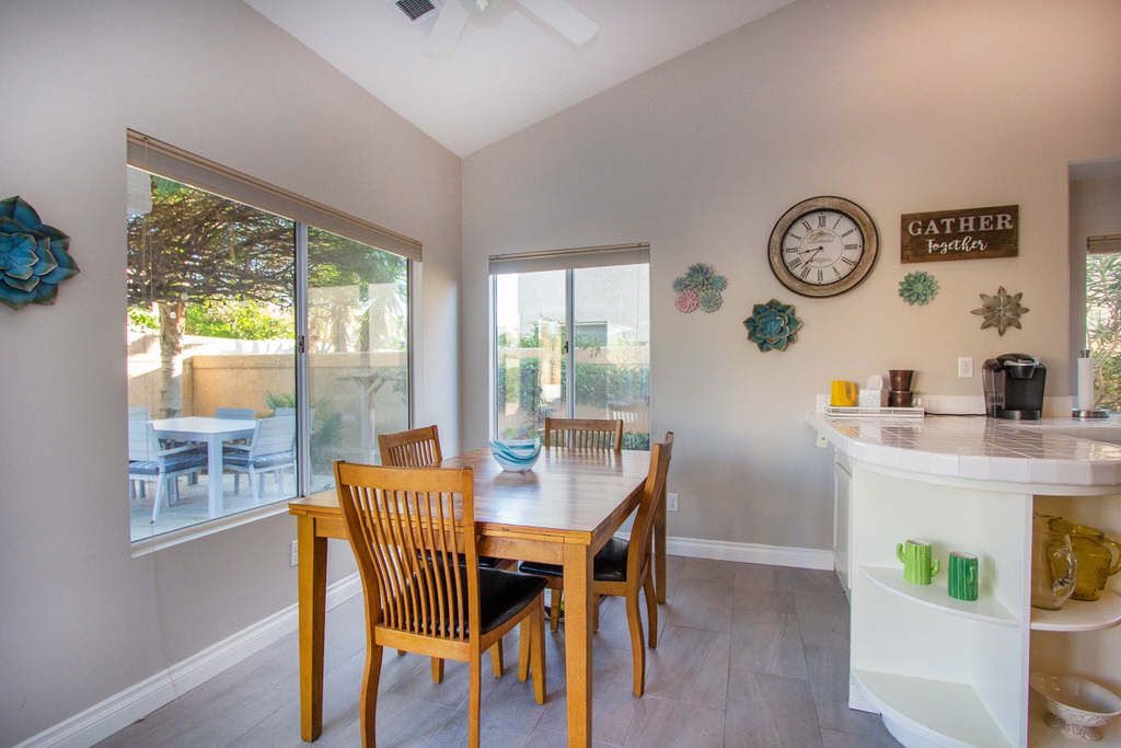 This desirable vacation house is on a private lot for added comfort and privacy. The recently remodeled kitchen opens to a casual family dining area with open floor plan. Windows off the back of the home offers pool and spa views from the dining and living room.