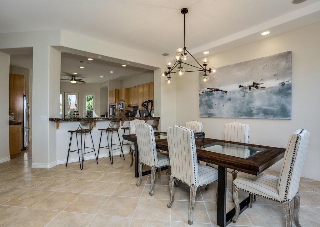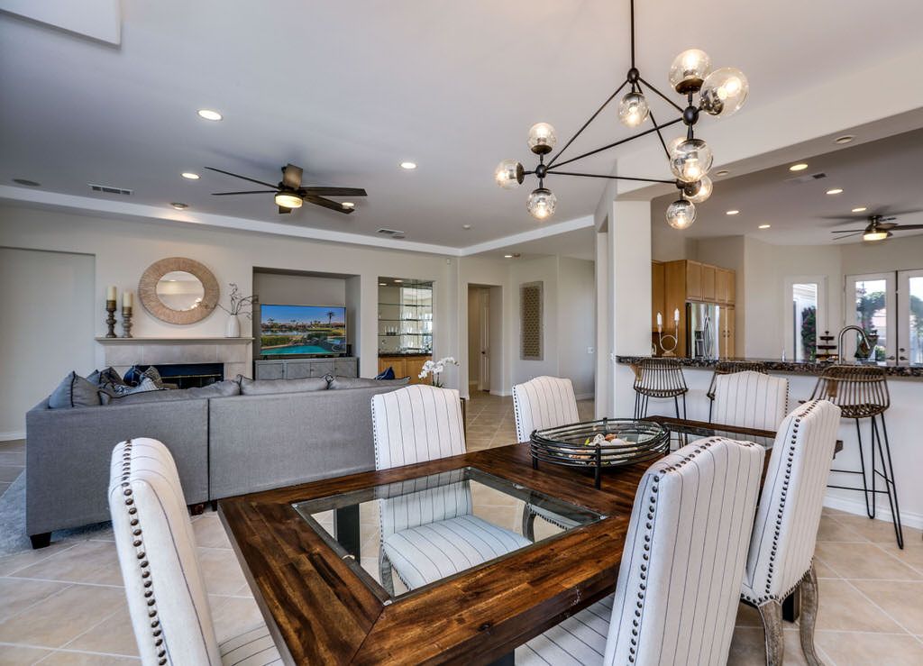 The open floor plan of this La Quinta vacation rental home makes it perfect for entertaining. This home was built with indoor / outdoor living in mind - with a large open kitchen that flows into the great room and extends outside onto the backyard patio.