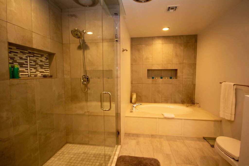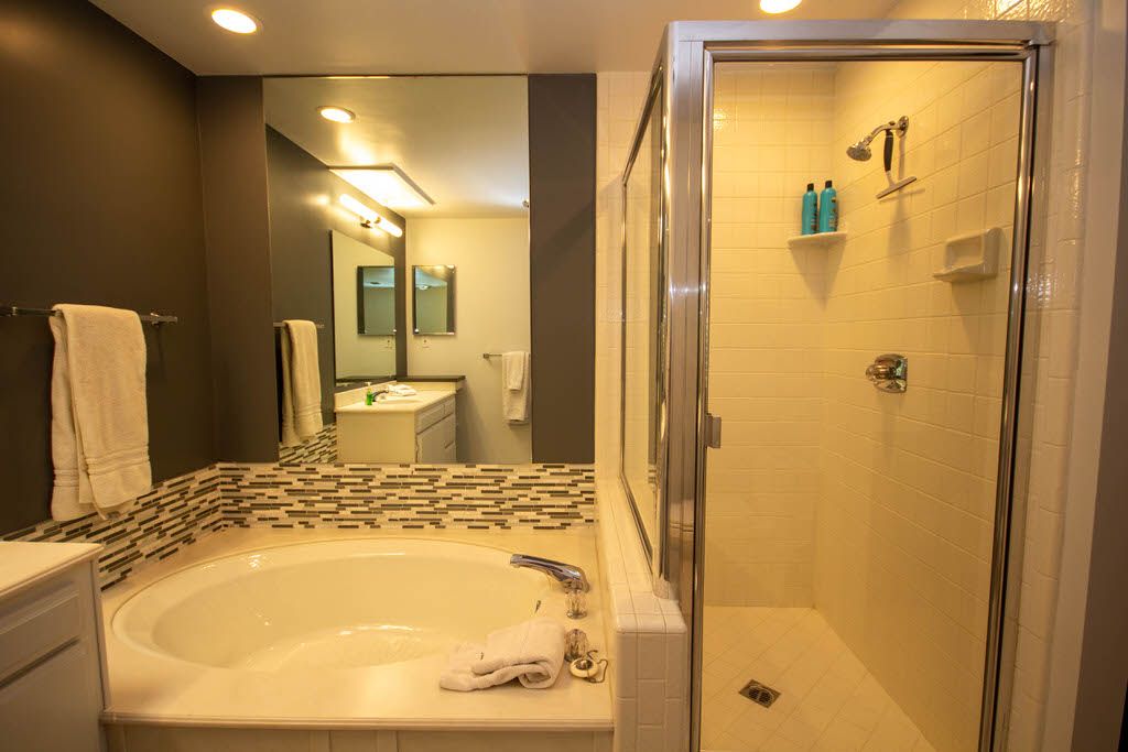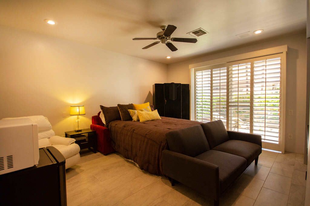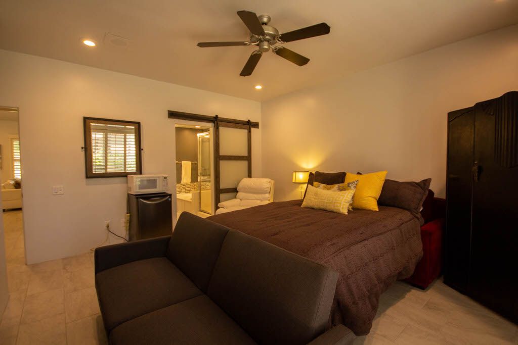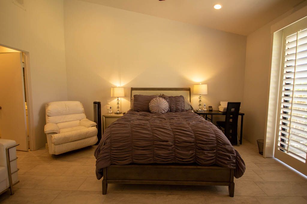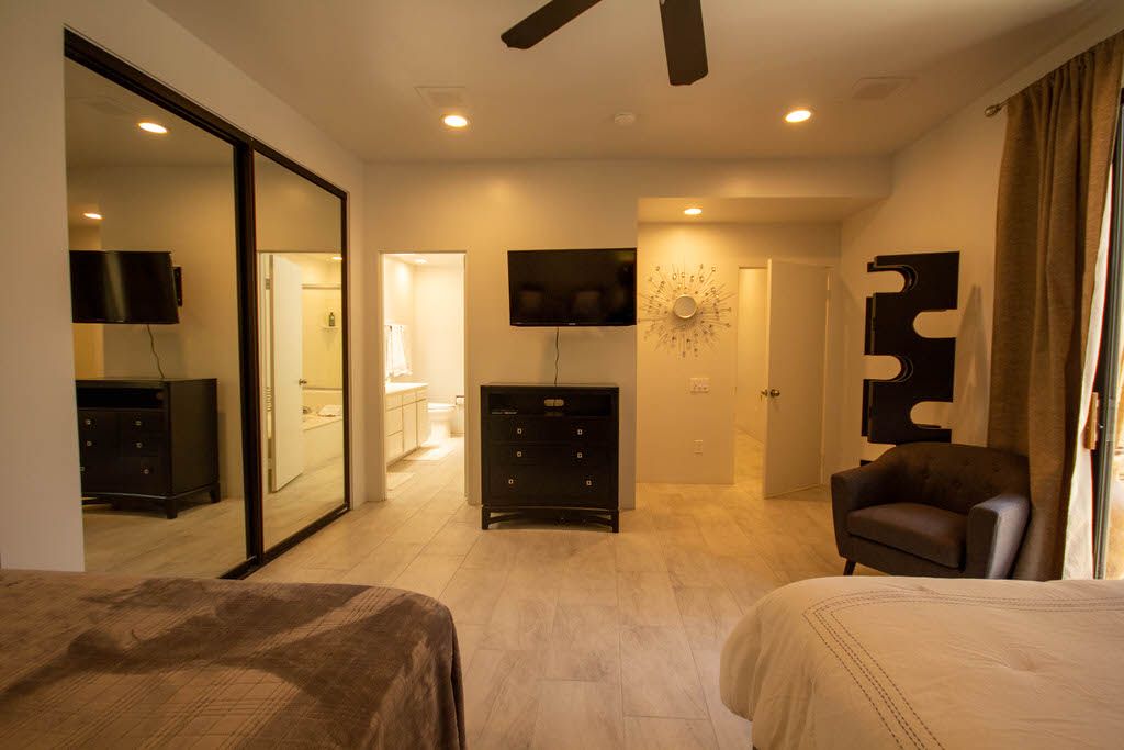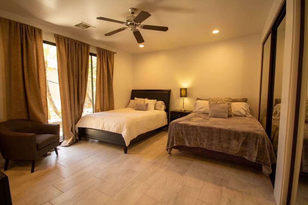 The master bedroom features a queen bed, direct access to the back patio and en-suite bath with walk in shower. The first guest bedroom features 2 queen beds with an en-suite bathroom and the second guest bedroom features 1 queen size bed and en- suite bathroom .