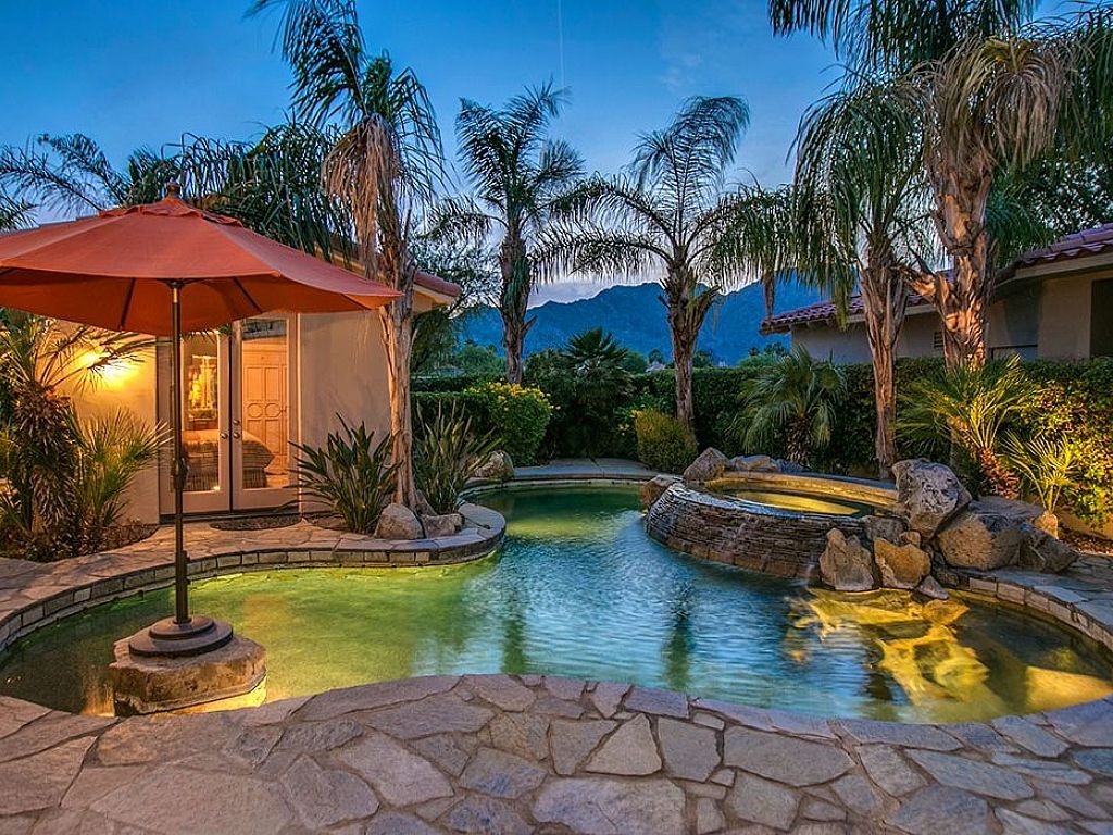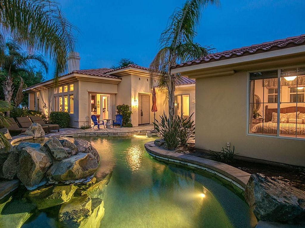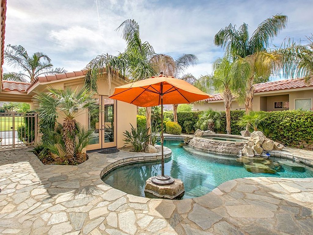 The swimming pool is located in the center courtyard of the home which provides privacy from the golf course but does not take away from the amazing views of the Santa Rosa mountains in the distance. With palm trees throughout the whole community, you are sure to capture that resort style feel that only PGA can offer, while lounging on one of the 3 lounge chairs or in the pool under the umbrella.