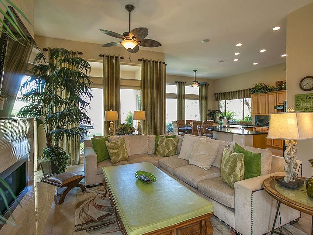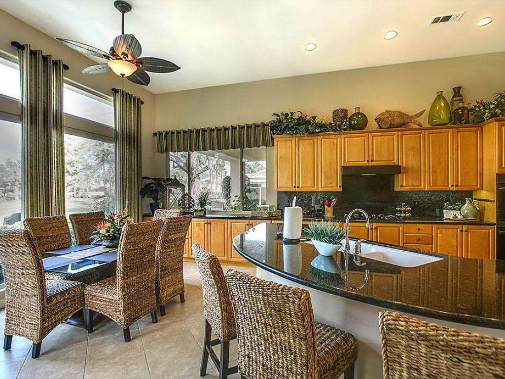 The backyard features views of the 10th hole of the Jack Nicklaus course and offers several sitting areas which includes outdoor dining for 10 with a BBQ grill to prepare your favorite meal while taking in the amazing views of the golf course and surrounding homes.