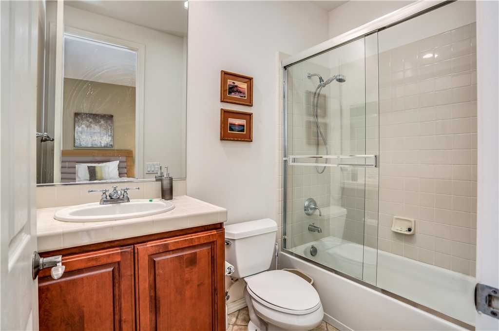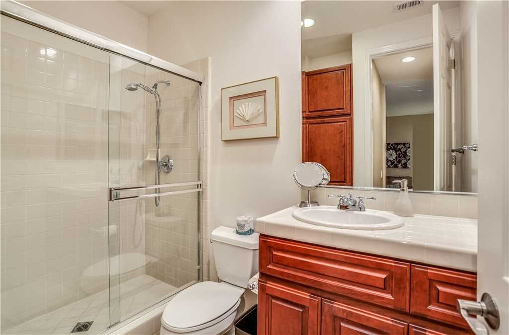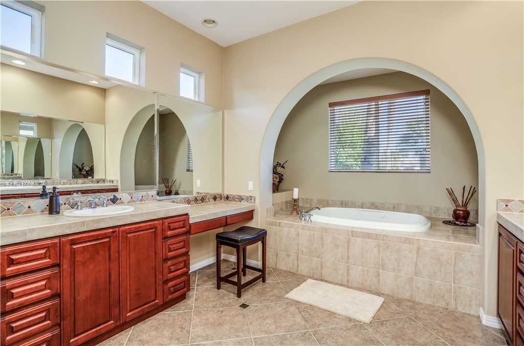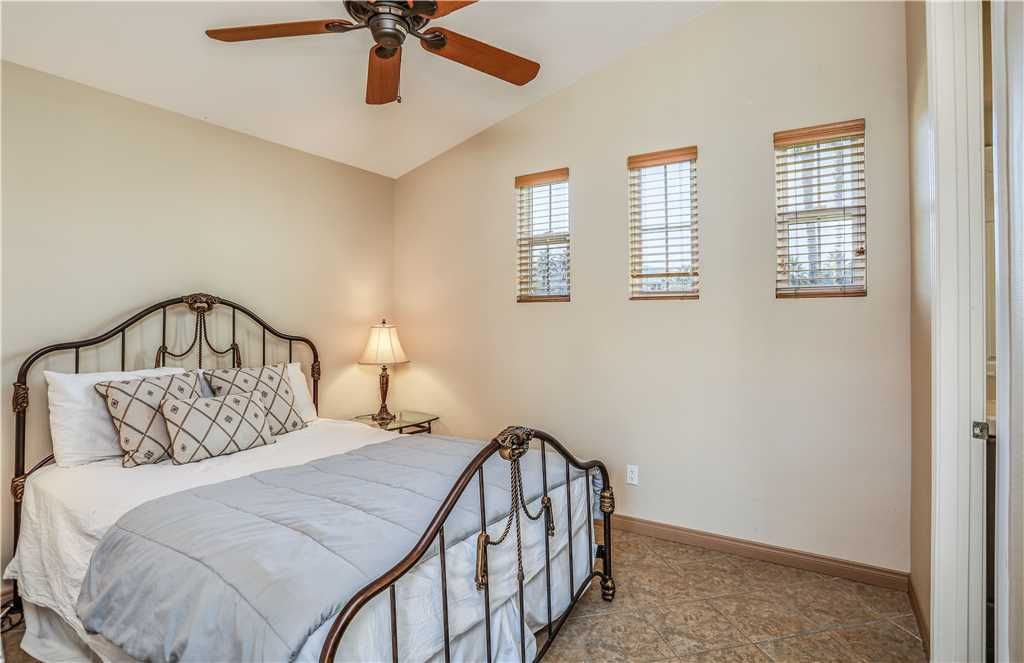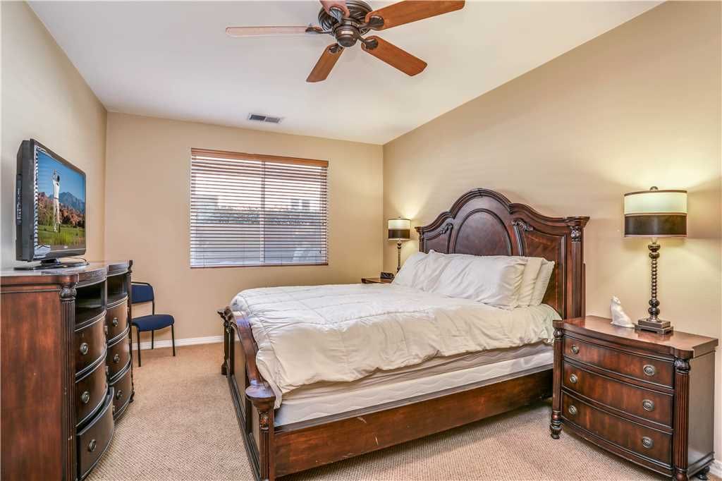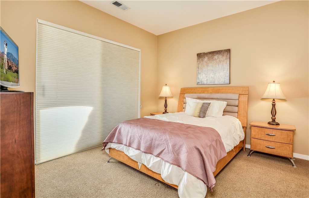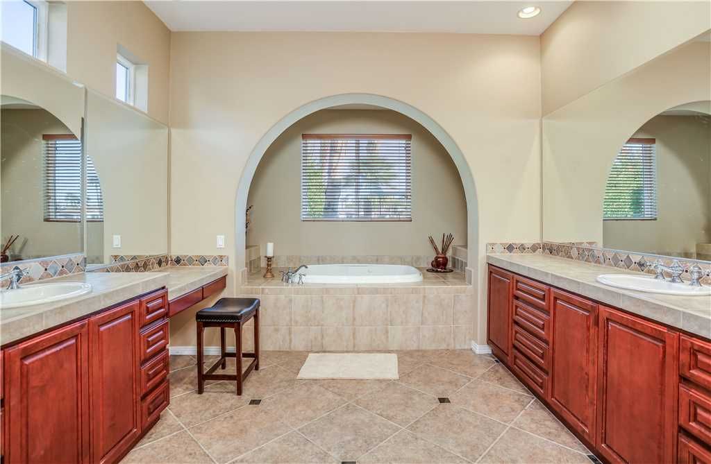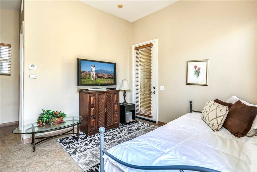 Bedroom Descriptions: The luxurious and spacious master retreat features a Cal King bed, a plush chaise lounge that converts to a twin, HDTV, desk and a sliding glass door for a private entrance to the patio and pool area. The large en-suite master bathroom has his and hers sinks and vanities, a dreamy jacuzzi soaking tub, and a large tiled shower. The master suite closet is a large walk-in with enough room for all of your vacation clothes, as well as storing 3 twin rollaway beds for additional sleeping accommodations.