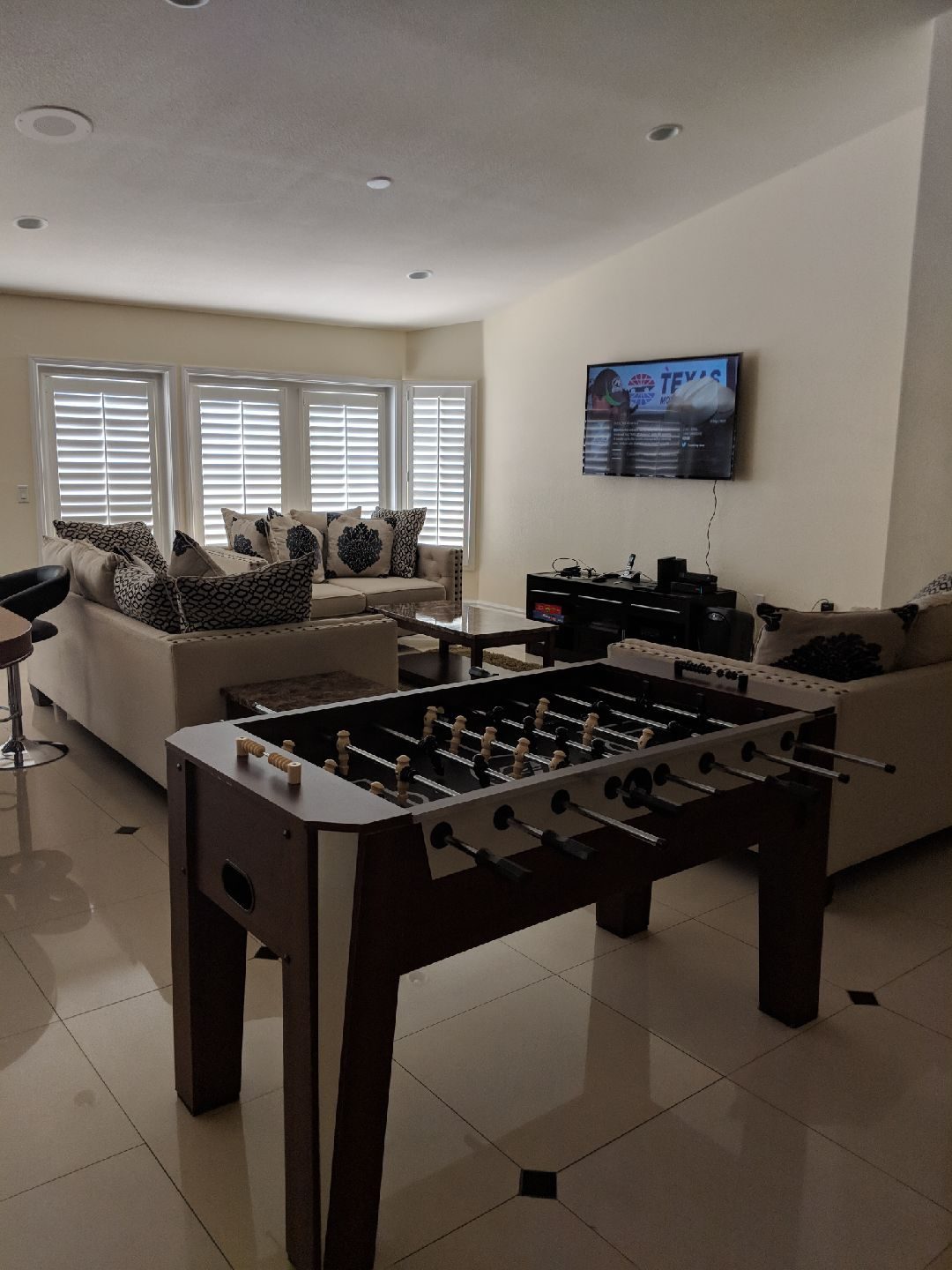 For enjoyment there is a poker table with a foosball table, Wii, Playstation, Xbox available in living room and gaming room... and 8 smart TVs.