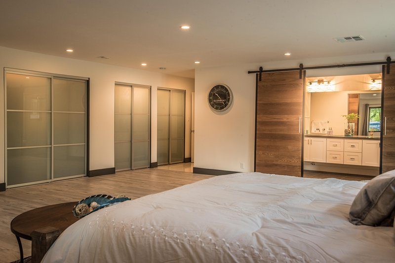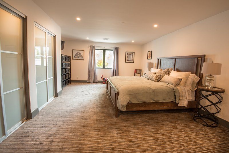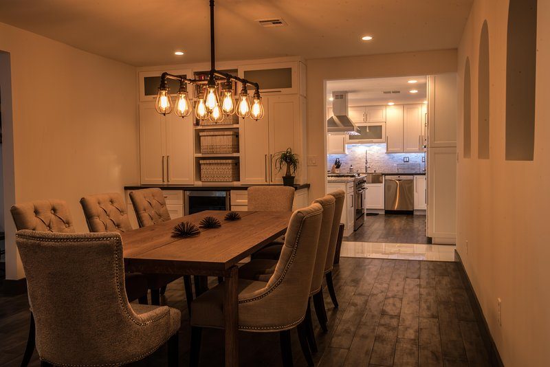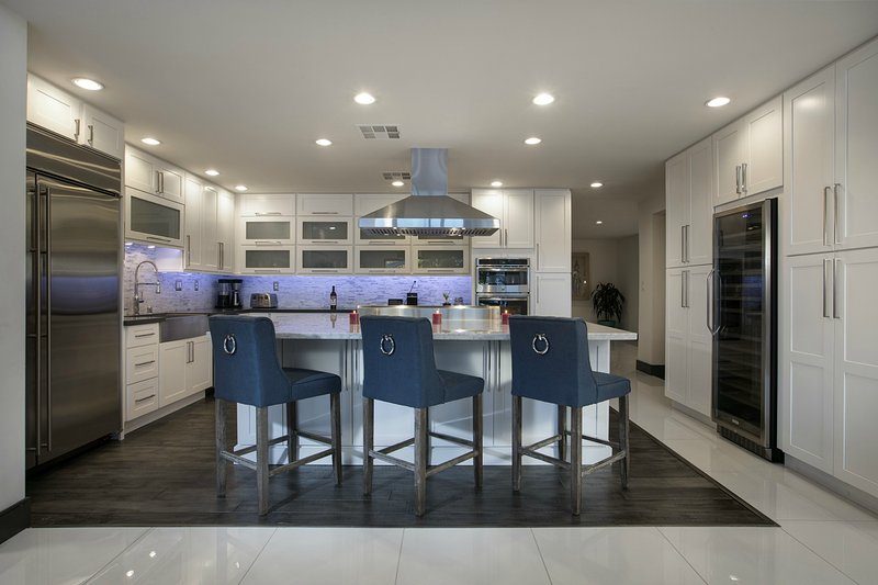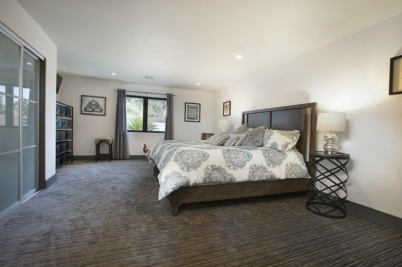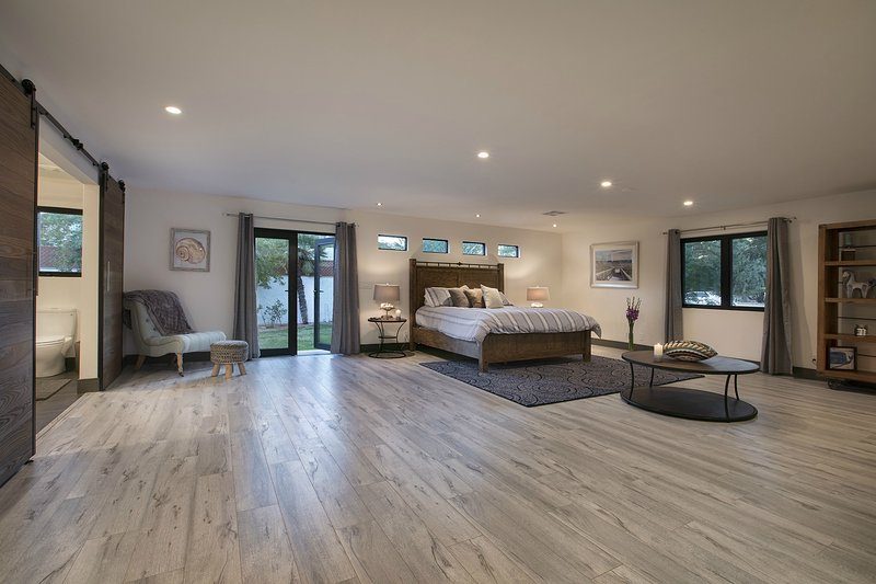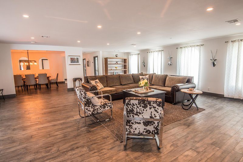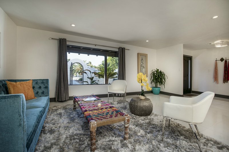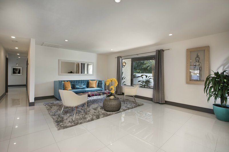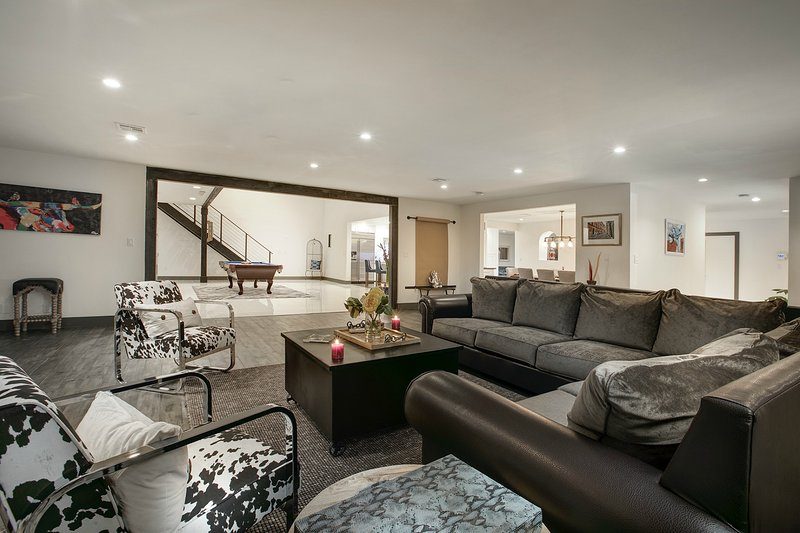 Come and experience this 6,008 square foot completely remodeled modern escape one mile or so from Las Vegas Boulevard. Perfect for romantic getaway, families or small groups of friends. This 4 bedroom, 4 1/2 bathroom treasure sits on a 1/2 acre lot surrounded by beautiful lush, large, mature plants and fruit bearing trees, grass and wine vineyard area. The swimming pool has beautiful fountains and spa. Pebble tech bottomed pool. Pool and spa can both be heated at additional fee. The huge floor to ceiling glass doors retract into the wall making the inside of the home seamless with the backyard oasis. The home is very secluded, quiet and private, yet so close to all of the fun and entertainment of the Downtown Fremont Street Experience and the World Famous Las Vegas Strip!