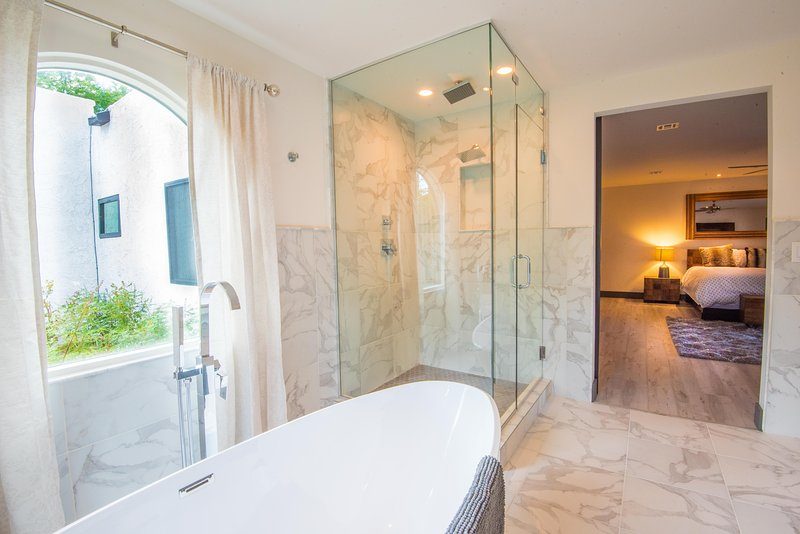 Beautiful walk in showers with rain showers and body sprays await you. Soak in the ultra modern "egg" tub. Make some tea, enjoy some wine and Relax.