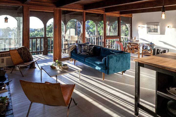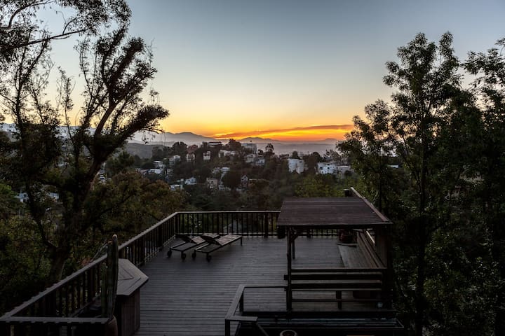 Beautiful historic hilltop home in Laurel Canyon. Take your private Tram up to the house. 4 private terraces. The views are incredible. All original danish midcentury furniture. Brand new kitchen and bathroom. You have access to the entire home incl all terraces. 1 parking spot on the premises. Additional parking down the street. Hi My Caretaker Cindy will be available 24/7 and lives close by. Her cell is: Seve n. si x. Zer o. Fou r. On e. Thre e. Zer o. Fiv e. Nin e. Fou r. Absolutely no parties or photoshoots. Noise curfew 10pm My caretaker Cindy will be at the house to greet you and show you have the tram and the house works. Her cell number is: Seve n. si x. Zer o. Fou r. On e. Thre e. Zer o. Fiv e. Nin e. Fou r.Amenities