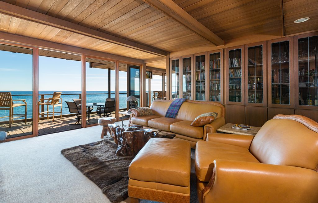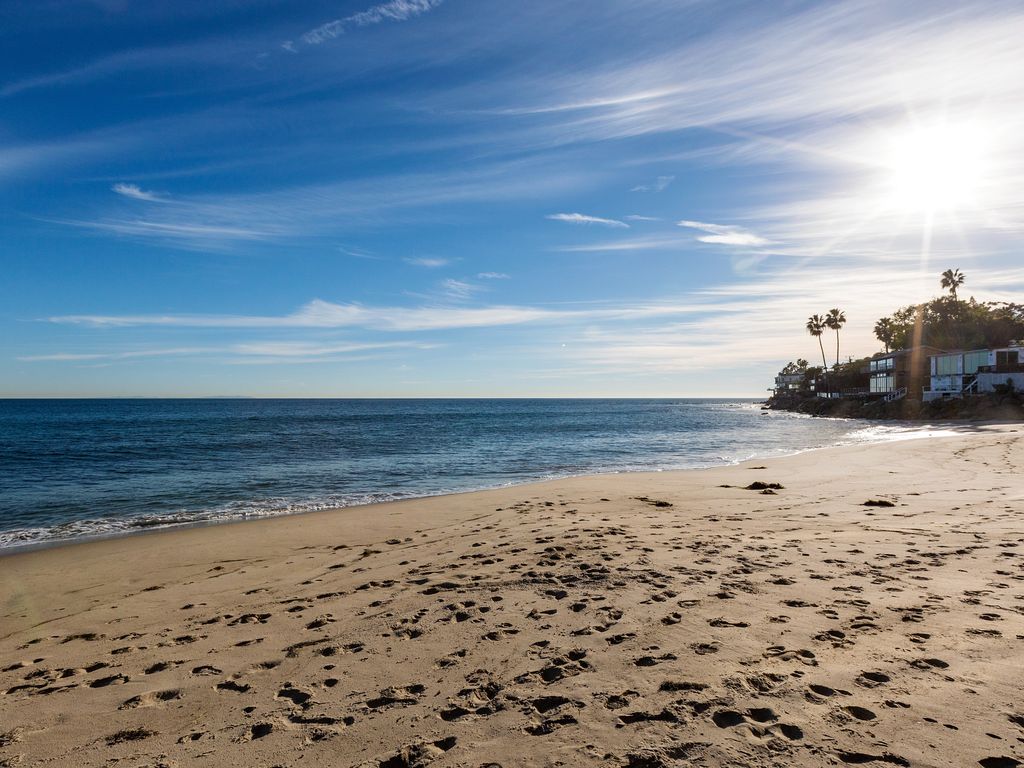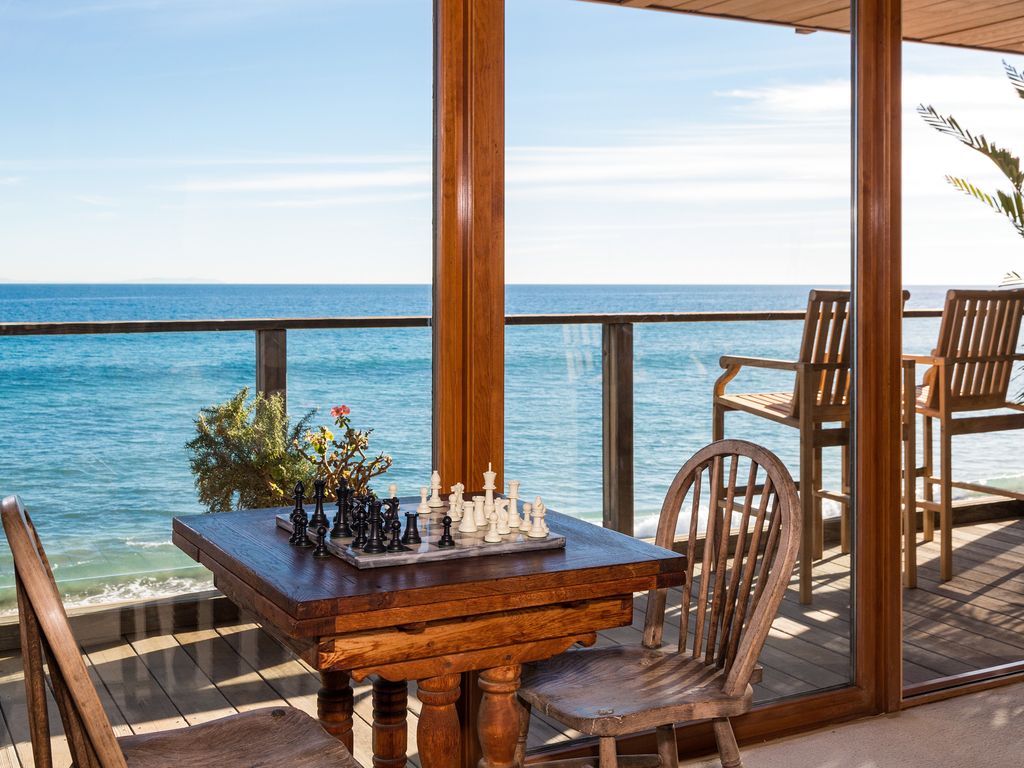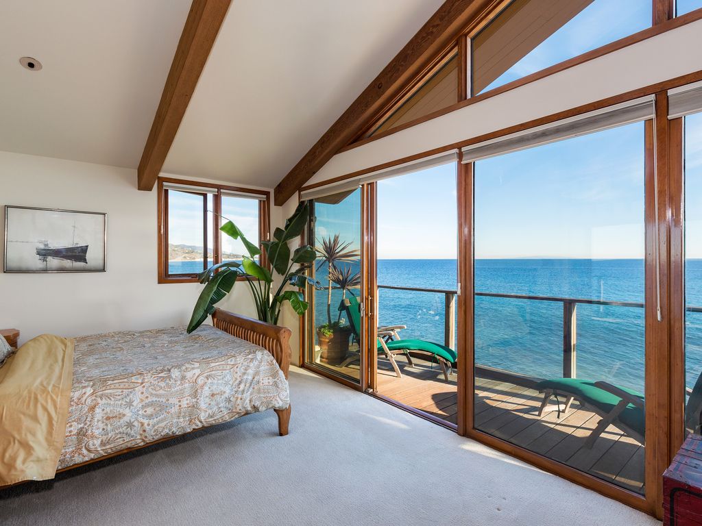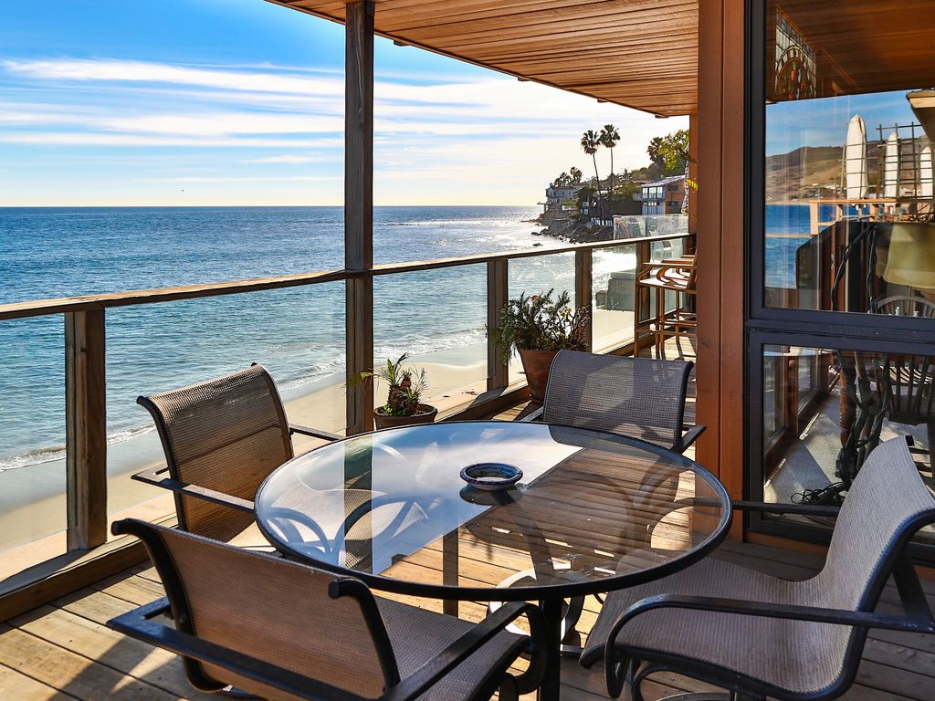 With private stairs to your own dry, sandy beach in a cove with surfing, swimming and fishing, on a dead-end street, this comfortable home has everything to make your stay one of your best vacation memories. There is a new gourmet kitchen, great room, dinning room with seating for 10, den and two master bedrooms, all on the water. The water-front rooms each have floor to ceiling windows with spectacular ocean views and each has its own deck. Furnishings are ample and comfortable, including interesting, hand-made seats and benches, antiques and fine art. There are skylights in the hallways and bathrooms. There are fireplaces in the living room, den and master bedroom. There is a hot water shower right on the beach. Its great for families with children. On secluded Latigo Cove the ocean is filled with amazing birds, porpoises and whales. There is a good surf break, a child's swimming channel and tidepools at the point. It is on a quiet dead end street, off PCH, making it perfect for swimming, boating, fishing, surfing or just relaxing. Kayaks (if you know how) are included. Take a great hike in Solstice State Park to the waterfall in Corral Canyon or walk along the beach at low tide to Paradise Cove and its often photographed Beach Cafe and local's bar. We are only two miles to Pepperdine, the Civic Center and the famous Malibu Colony, Surfrider Beach & the Pier. Memories made here last forever. Keywords: Big HouseThe Maruca Group