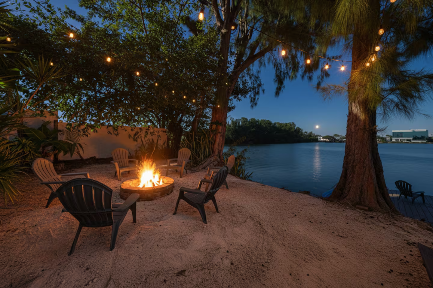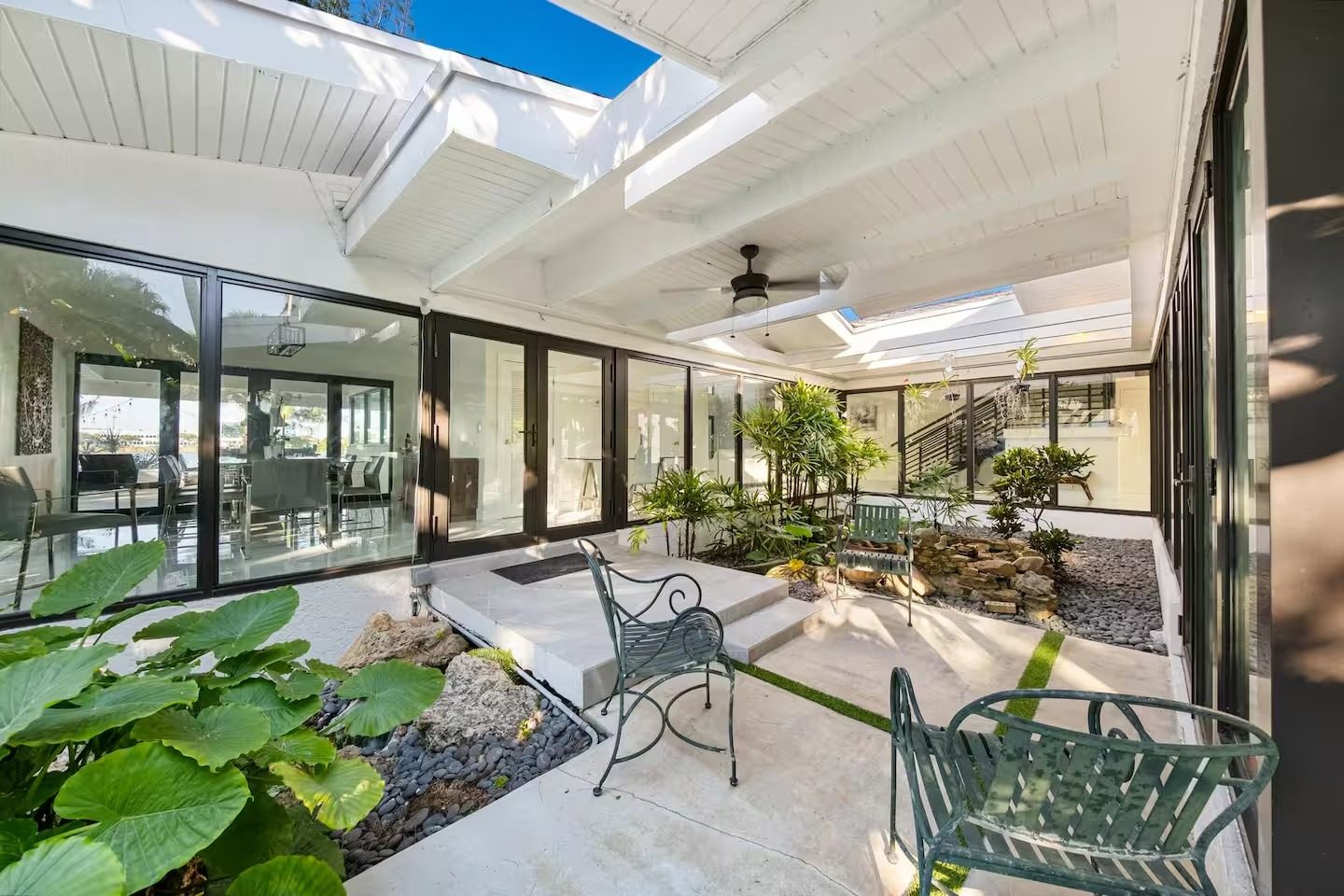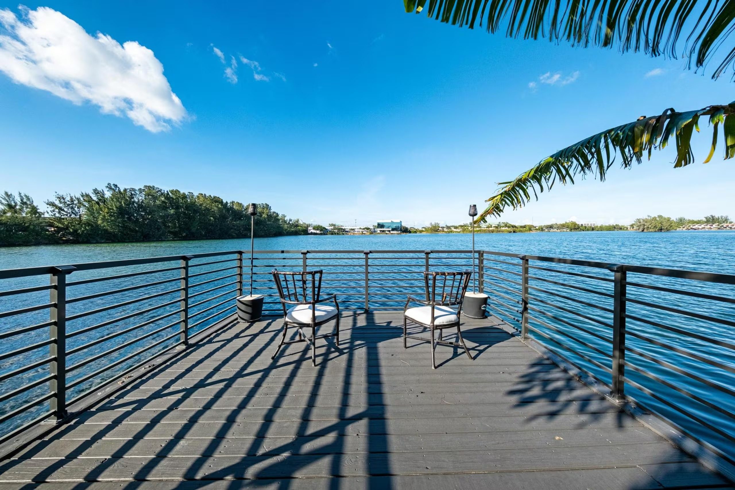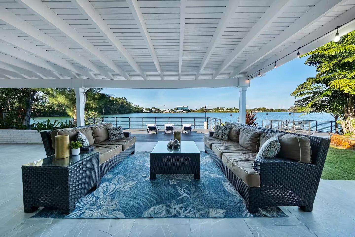 Outdoor spaces are designed for relaxation and enjoyment, featuring lounge seating and areas ideal for sunbathing, social gatherings, or quiet evenings under open skies.