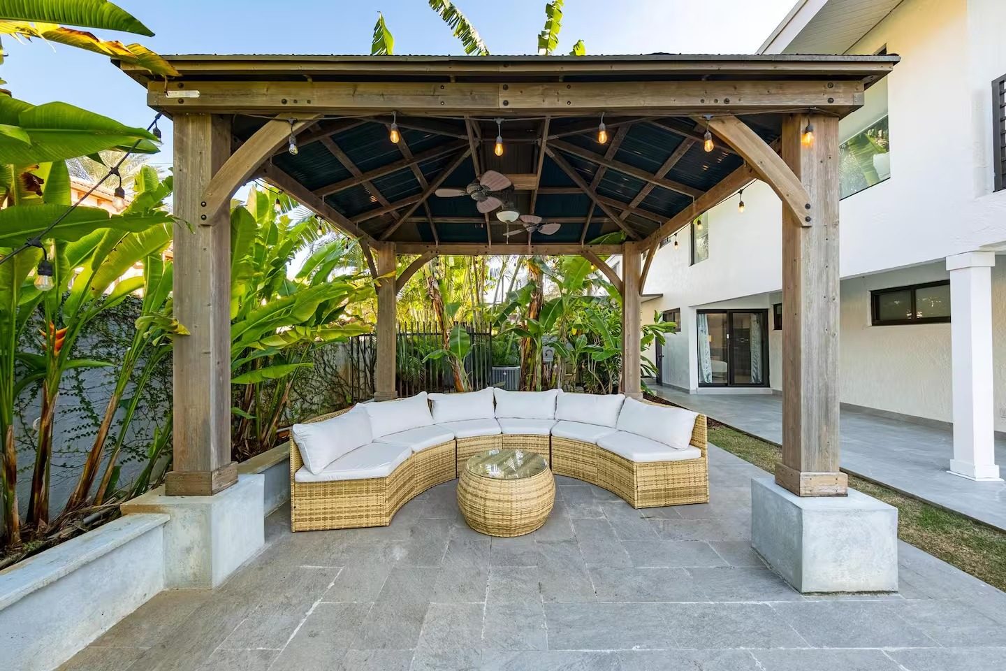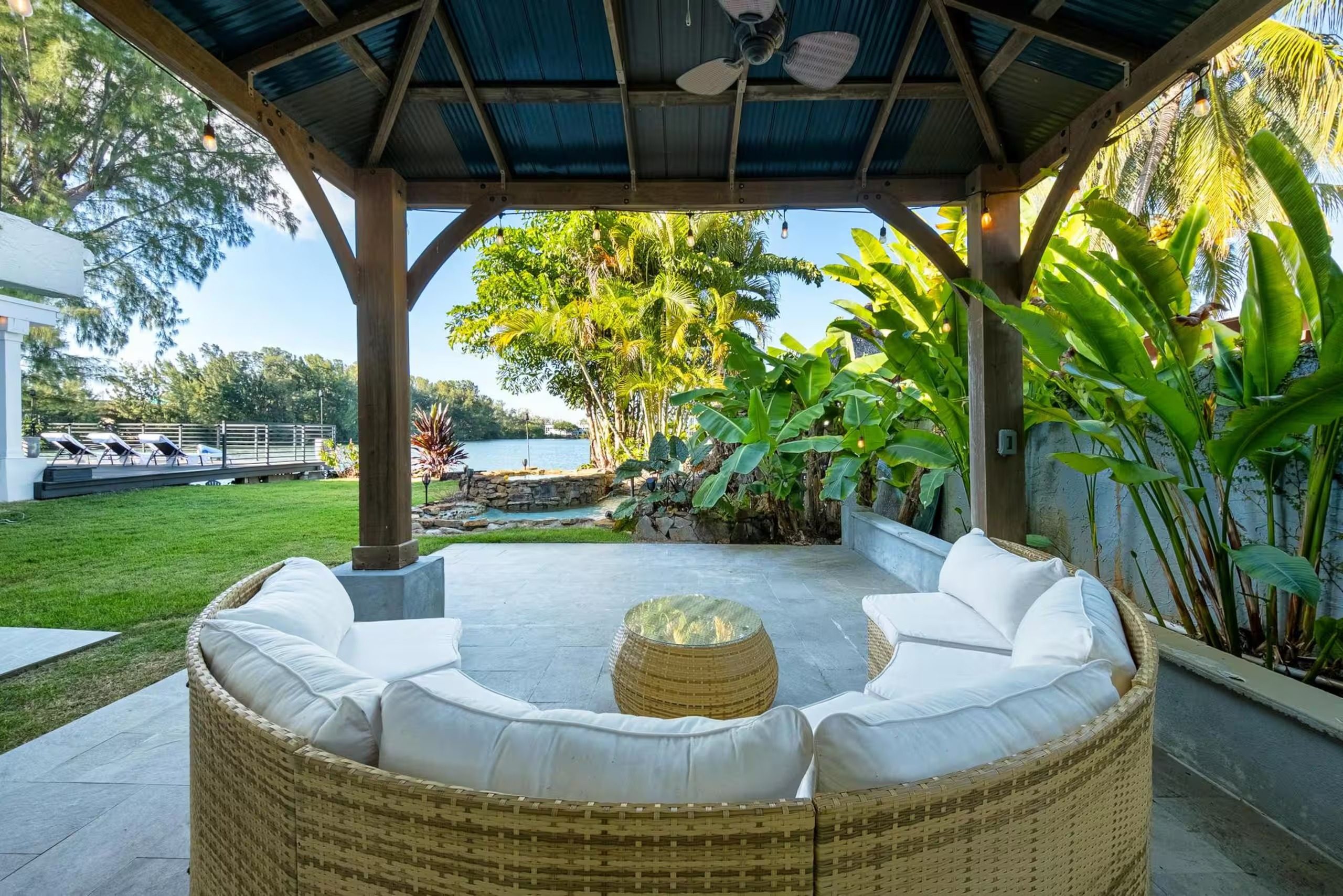The villa’s layout allows for smooth movement between interior living spaces and outdoor areas, enhancing the sense of openness and tropical ease throughout the property.