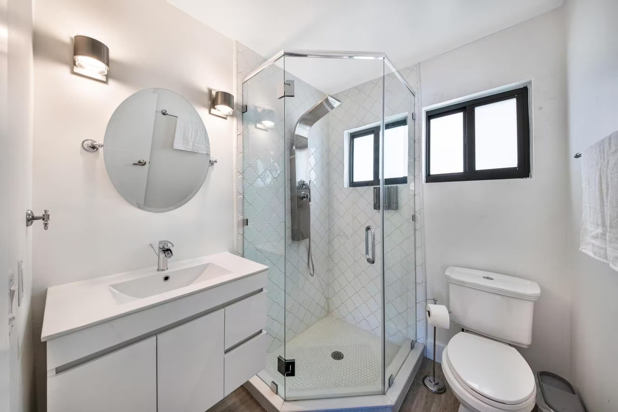 Bathrooms showcase contemporary fixtures and clean finishes, offering a spa-inspired experience that complements the villa’s refined aesthetic.
