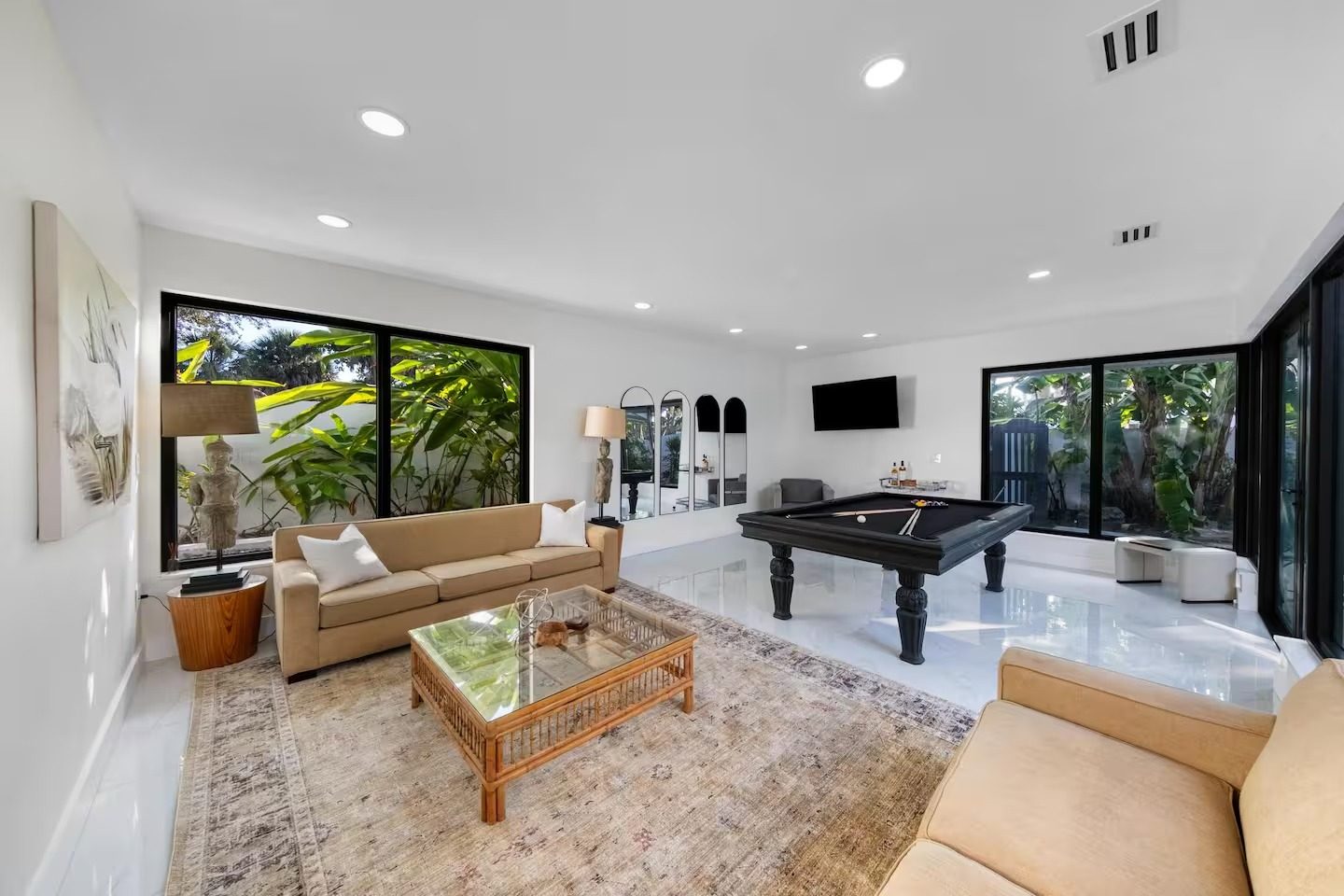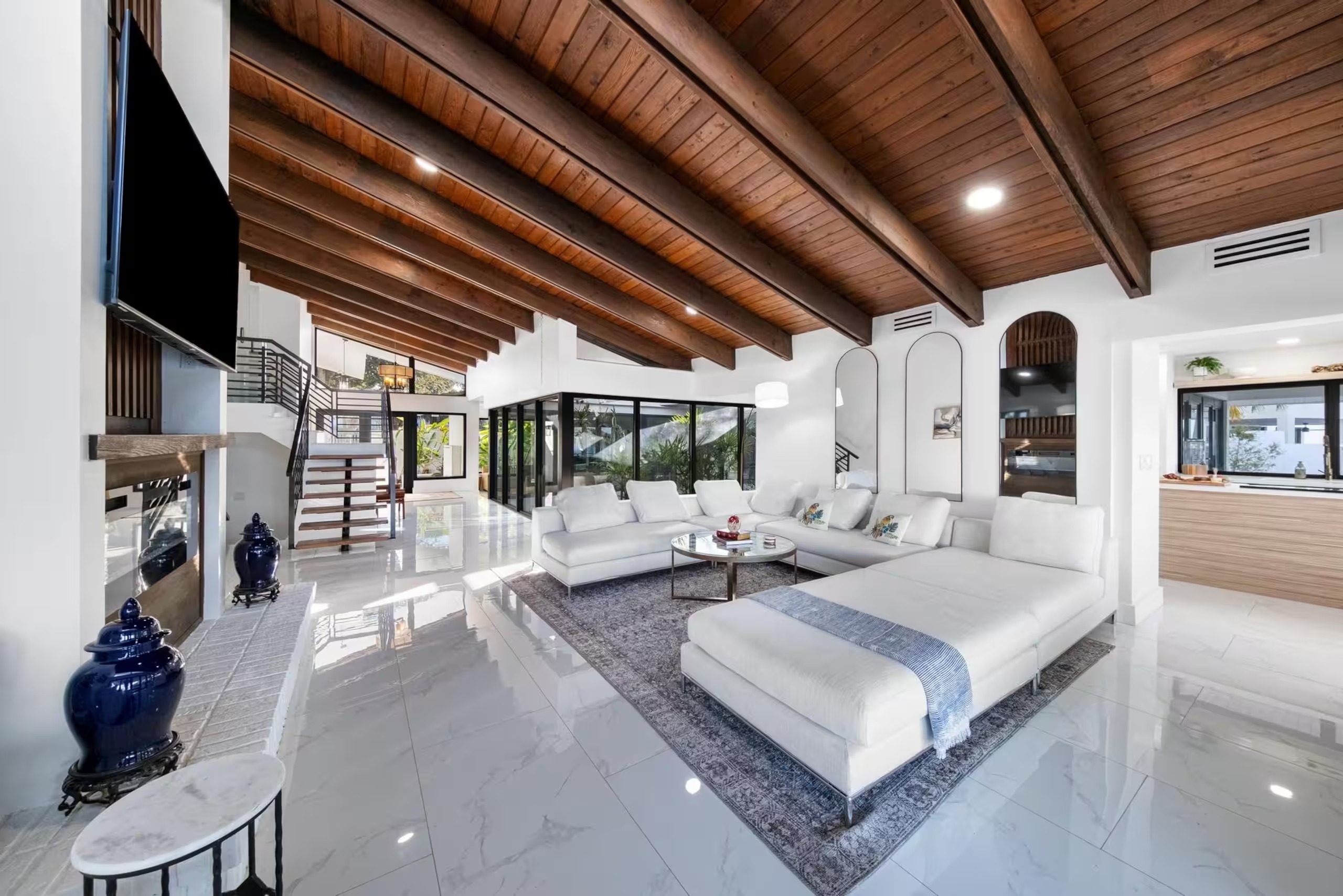 The villa features spacious, light-filled living and dining areas with modern furnishings and a seamless layout that encourages comfort, connection, and easy entertaining.