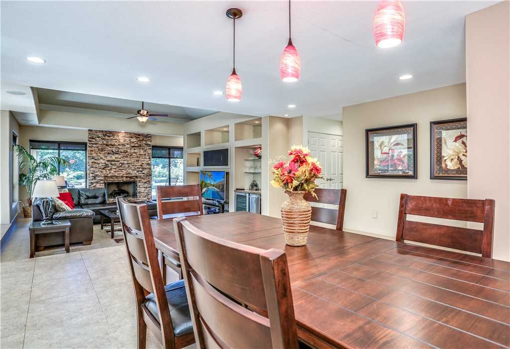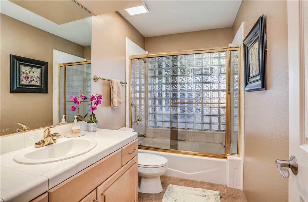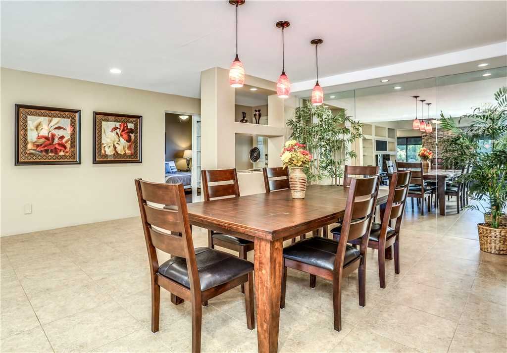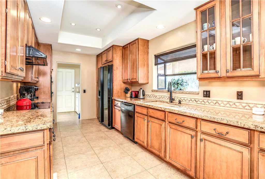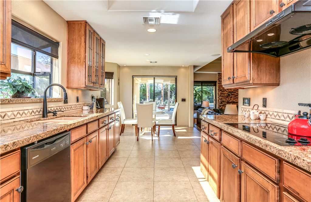 Upon entering, the private home features a gorgeous modern stone fireplace that perfectly sets the mood in the evenings and warm furnishings to suit all living needs comfortably. The spacious kitchen has upgraded appliances and tools you need to feel as if you are in your own home when cooking for yourself or a crowd. With plenty of dining areas indoors and outdoors including a formal dining room, a breakfast nook, and comfortably covered patio furniture with ample lighting and airflow, no detail has been spared to make you and your guests feel right at home in this lovely private home for rent.