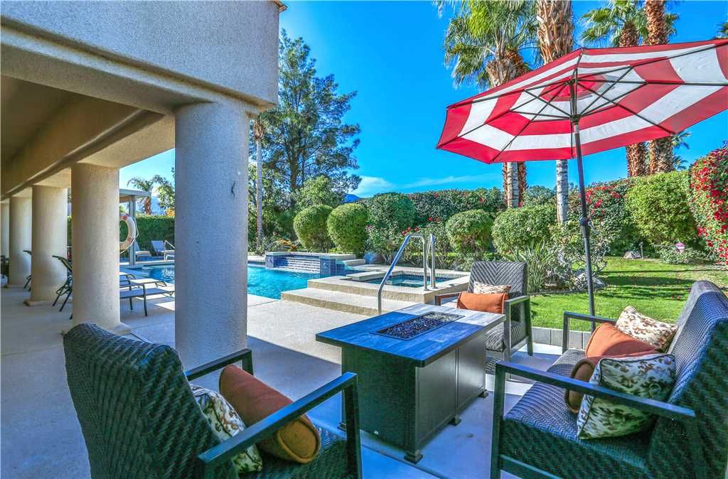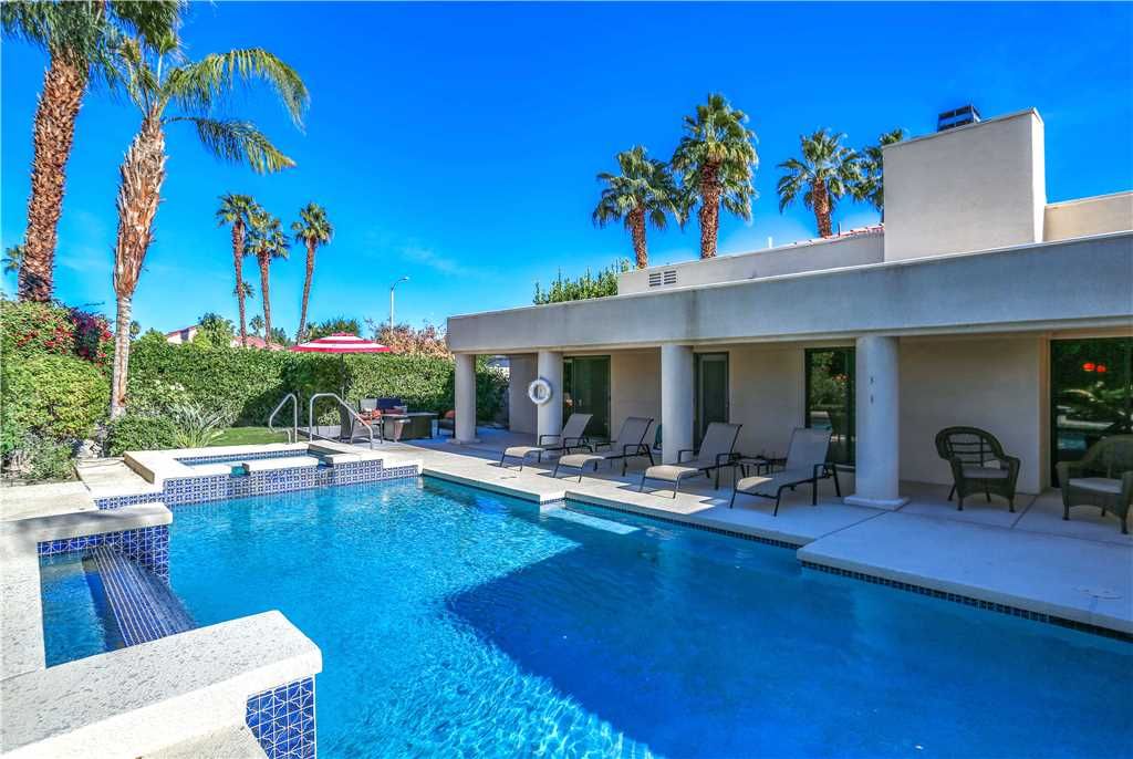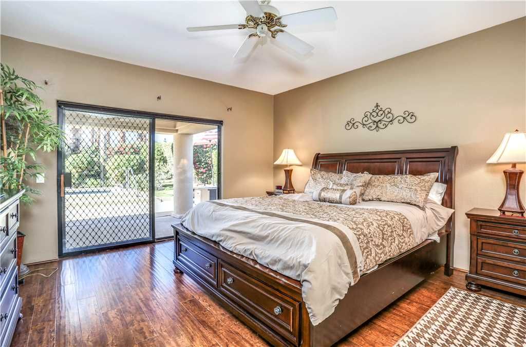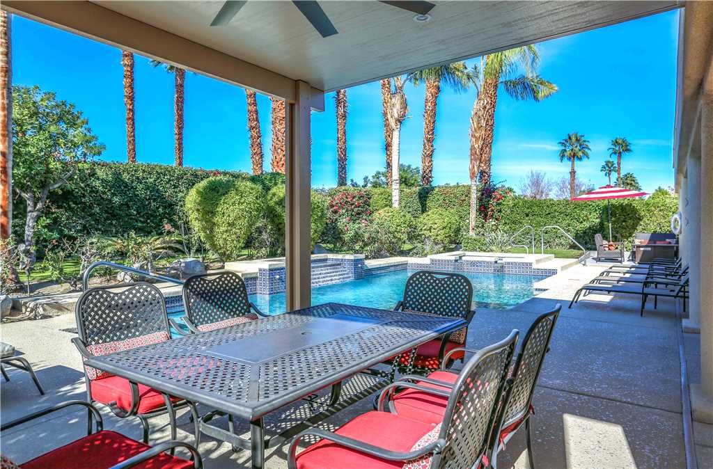 The Alluring Palm Desert Retreat boasts generous room sizes in the very open and inviting floor plan, perfectly suited for distinctive entertaining. The master suite opens up to the backyard offering direct access to the pool and spa. The master suite features a California King bed, 36"" TV, and large en-suite bath with dual sinks, tub, and walk-in shower.