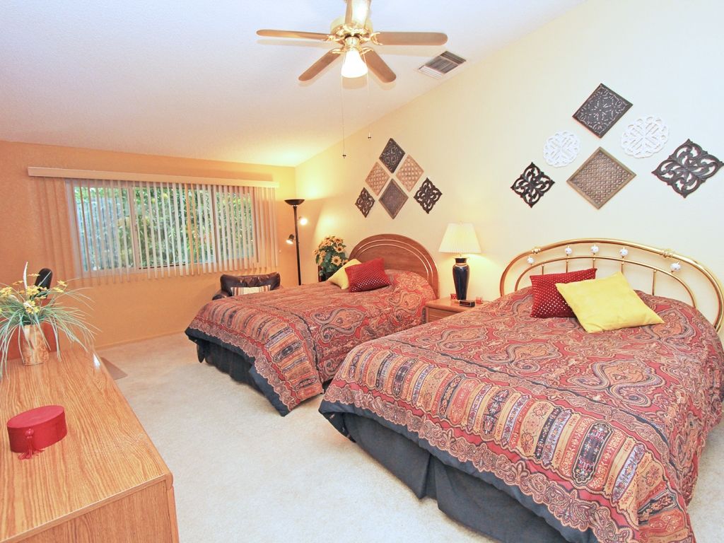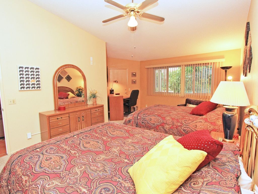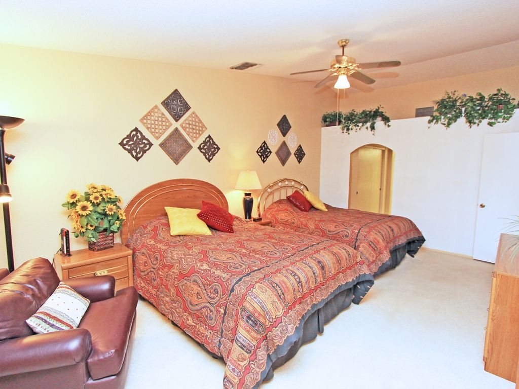 The master bedroom is welcoming with two queen beds and a 32"" TV. The second and third bedrooms are just as inviting, one furnished with a queen bed and the other with a king bed and 28"" TV.