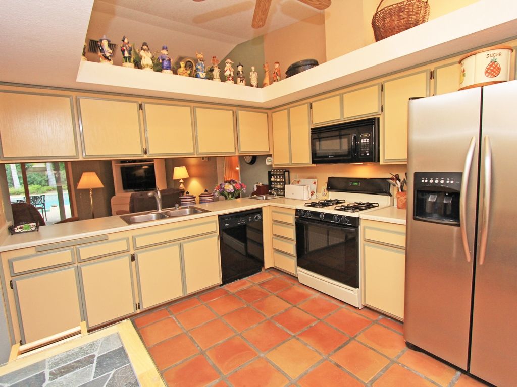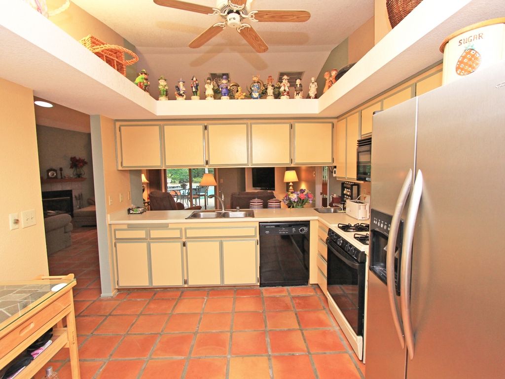 This Palm Desert vacation pool home has a fabulous and spacious kitchen recently updated with stainless steel appliances and is fully equipped with a gas range, lots of small appliances, utensils and service ware.