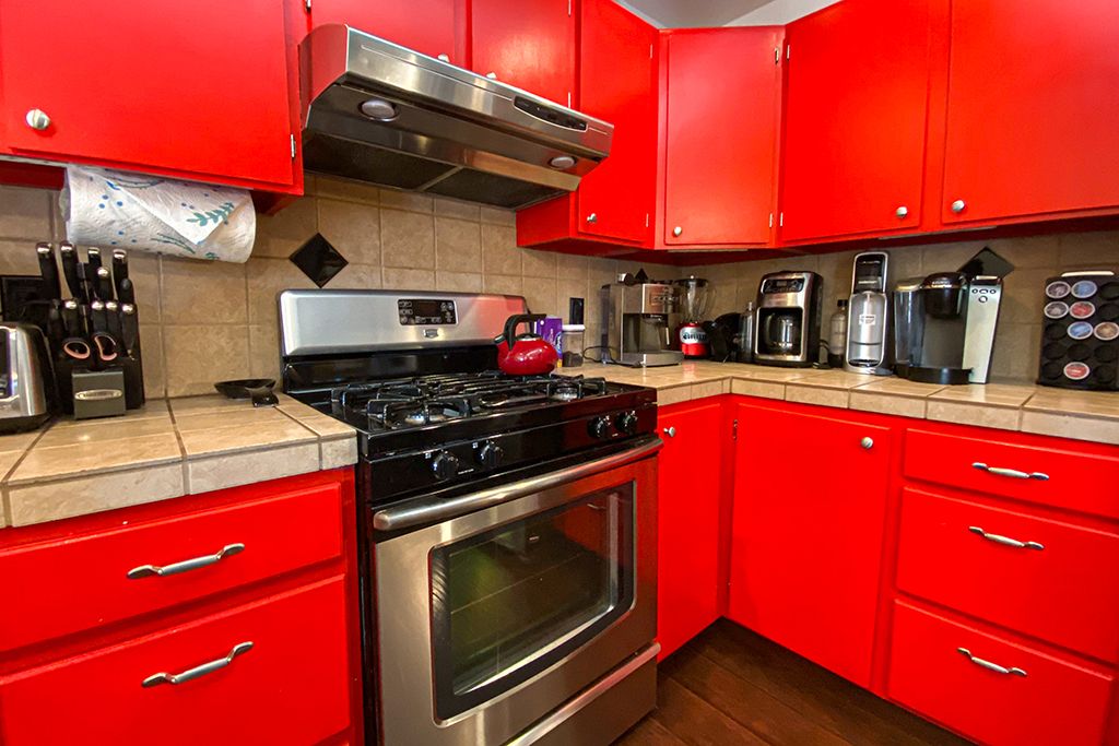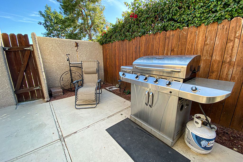 The kitchen of this lovely Palm Desert vacation rental condo has new stainless steel appliances. You'll find all the utensils, small appliances, and cookware you'll need to prepare gourmet meals or enjoy cocktails on the private courtyard patio with friends and family.