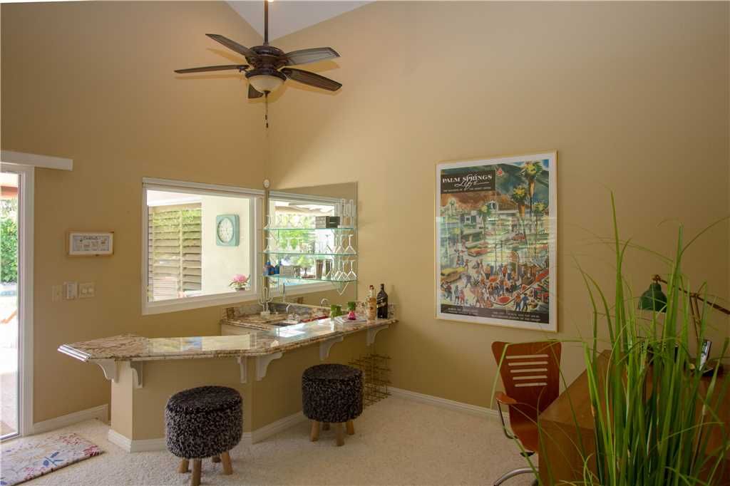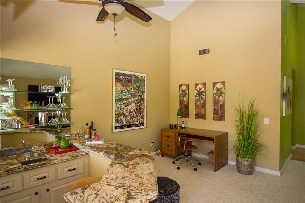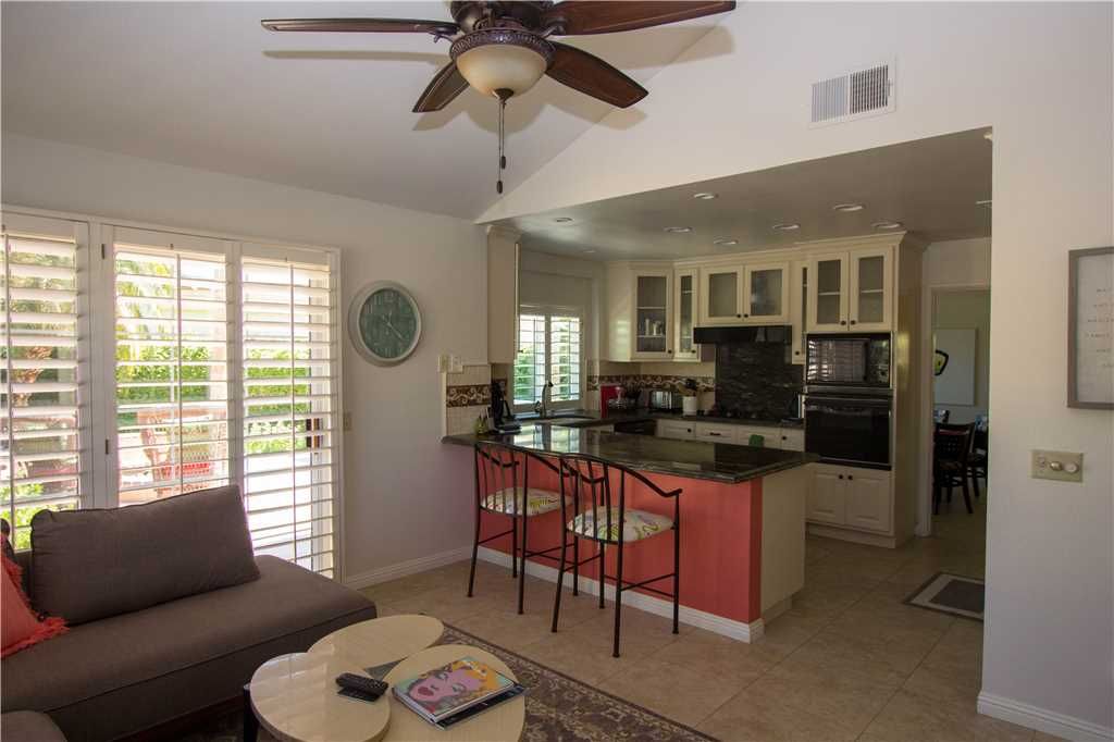 Once you enter through the front door of this contemporary vacation home, you will notice the open floor plan, vaulted ceilings and 2060 Sq. Ft. of living space. It has a living room and a family room with the living room close to the front entrance of the house. There you will find a beautiful fireplace, 65 inch TV with a Bose sound system, a sunken wet bar that opens up to the backyard, and two large and comfortable couches.