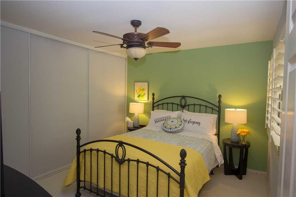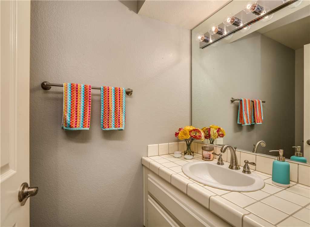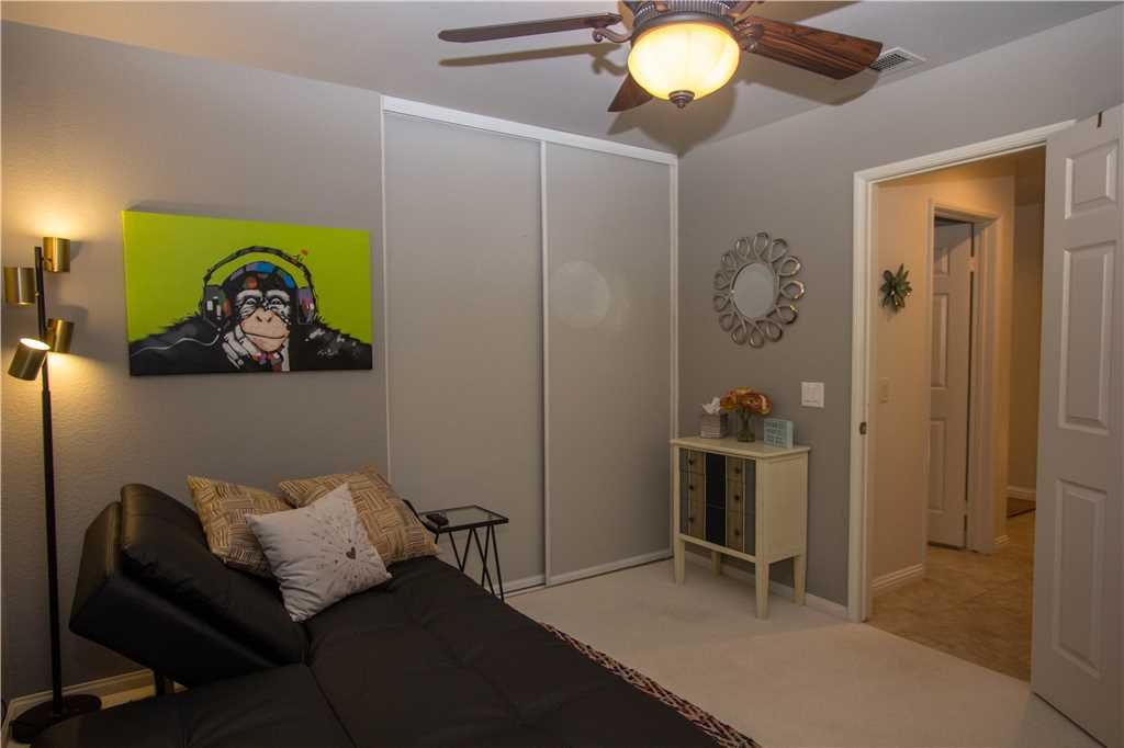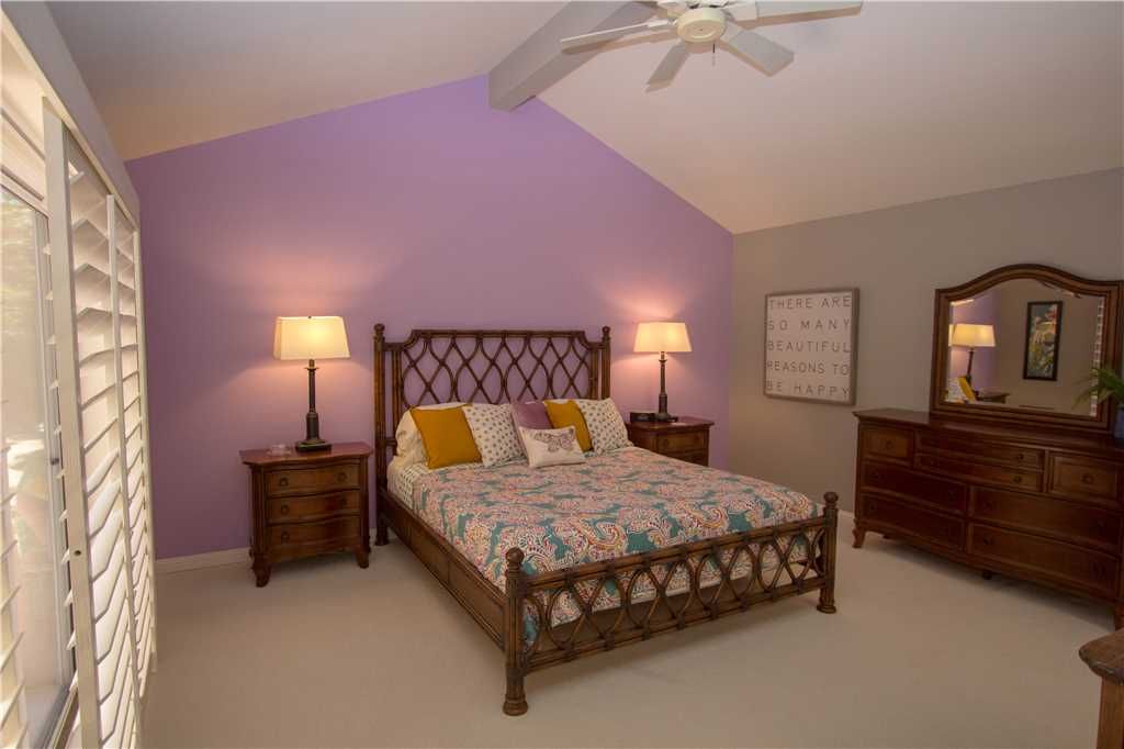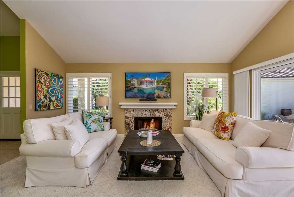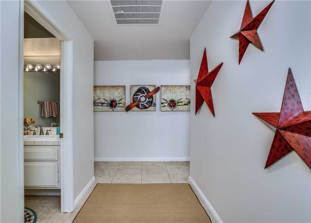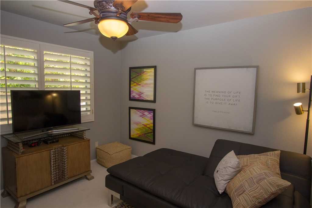 The family room is located through the dining area right next to the kitchen. There you can enjoy a 65 inch flat screen TV with blu-ray dvd player and a comfortable living room setting. There is a powder room located in the hallway to the bedrooms.