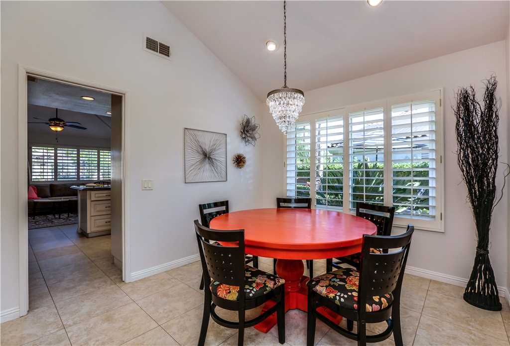 The beautiful kitchen is fully equipped with new cabinets, granite counters, new stainless steel appliances, and everything you would find in your own kitchen. It offers a full array of amenities, utensils and plenty of room for the inspired chef to cook their favorite meals. To the right of the front door and next to the kitchen, you will find the dining room with seating for 6.