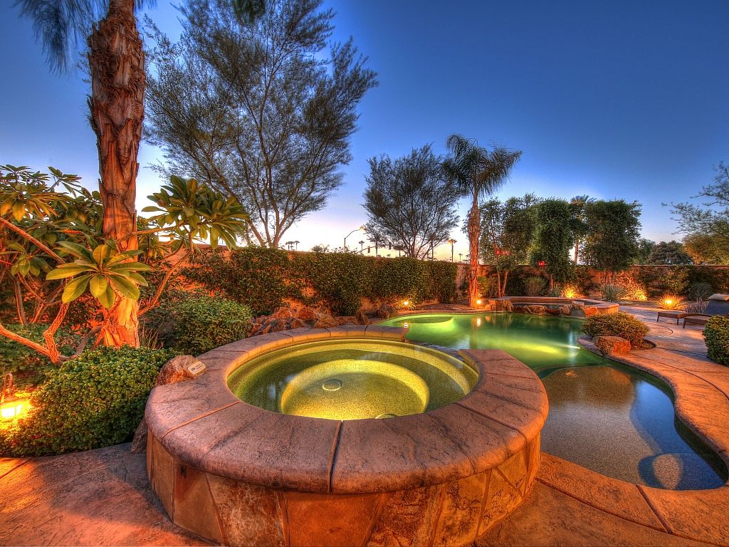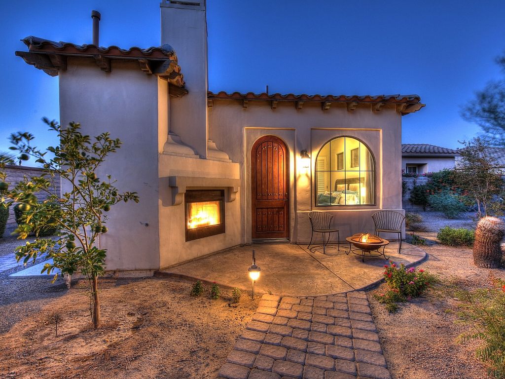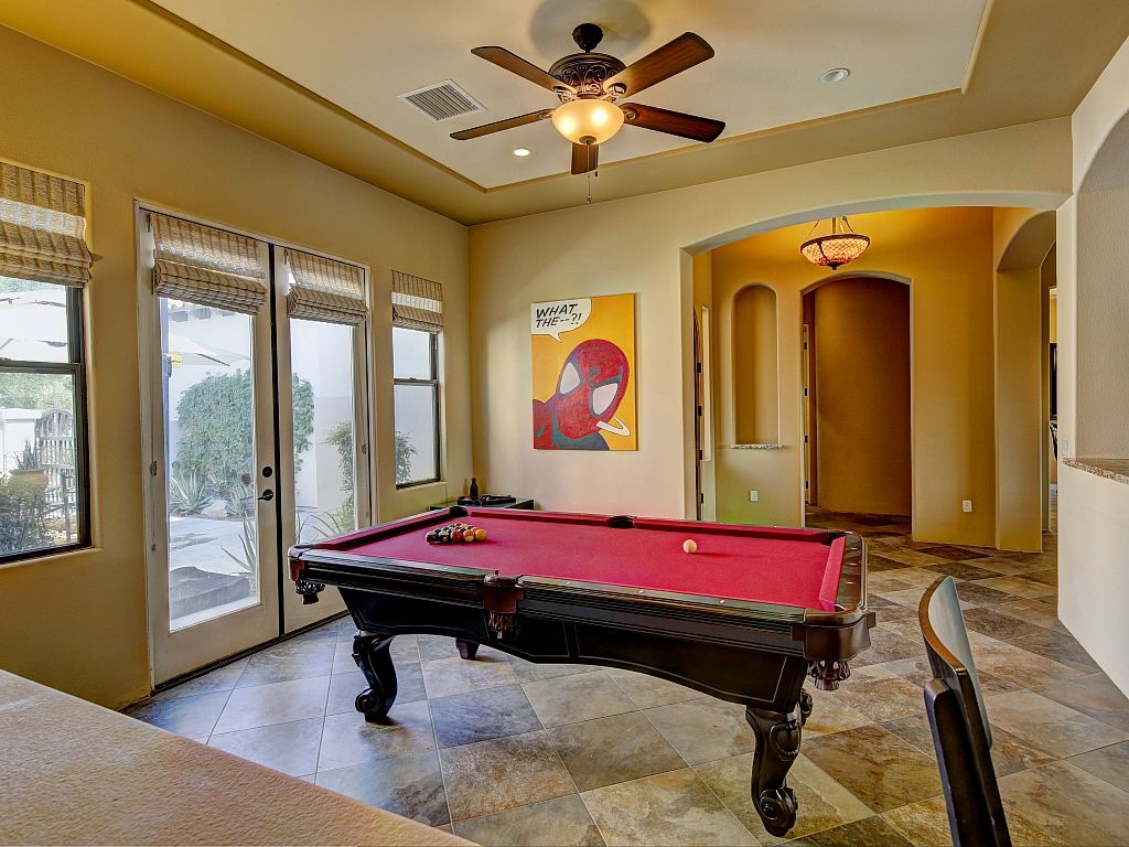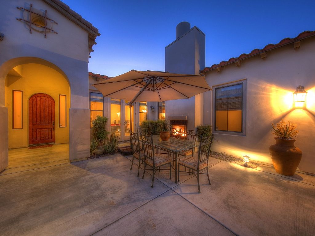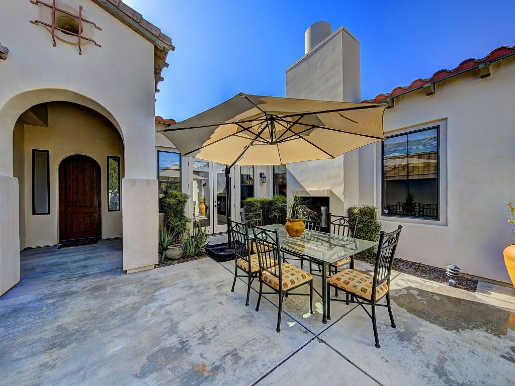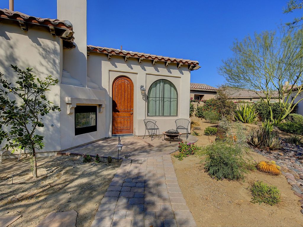 Perfect for families and groups Completely updated and upgraded throughout with a gorgeous backyard with a private pool and count them....three tanning shelves and a large spa, built-in barbecue grill, two outside fireplaces, mountain views, and a private detached casita that's located on the far north side of this beautifully landscaped desert oasis property.