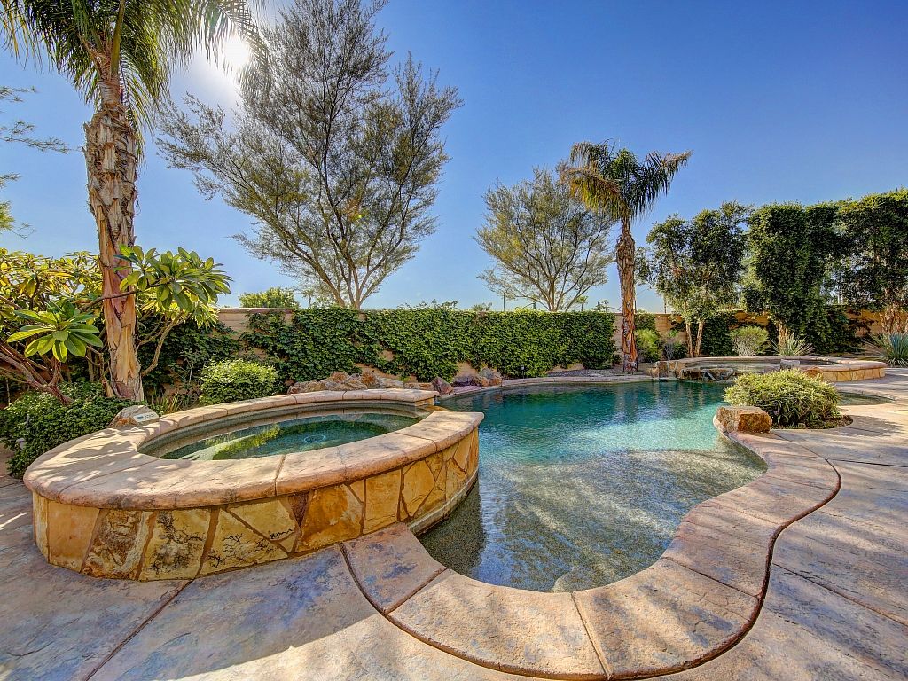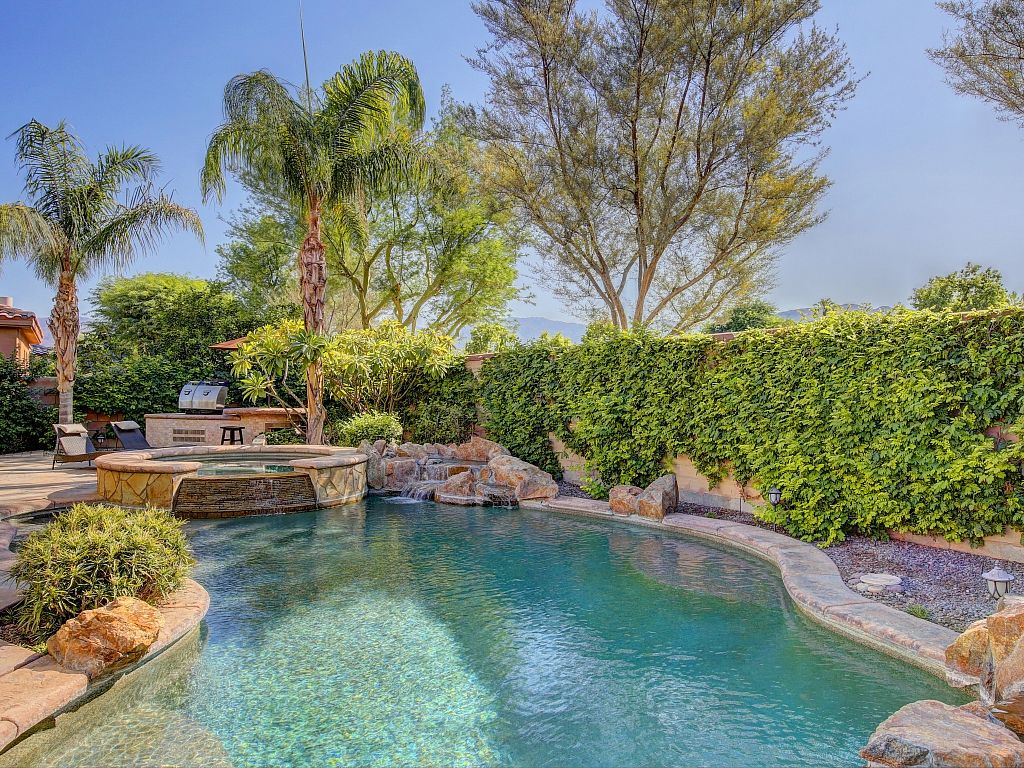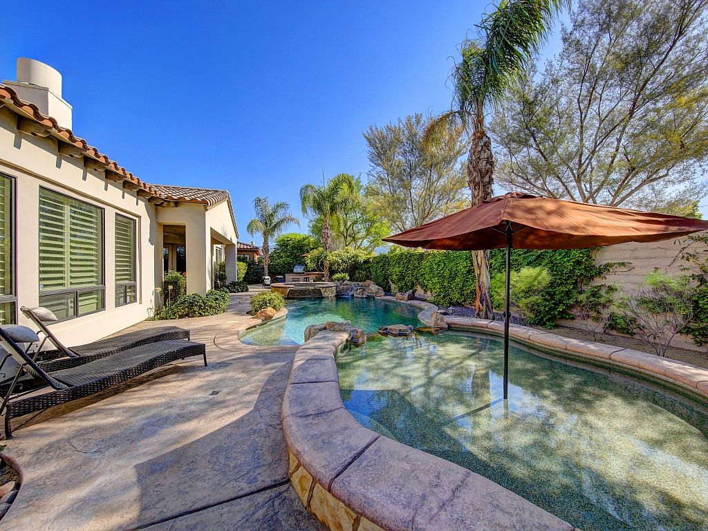Warm, traditional style, amenities, and location are what you'll find at this gorgeous 5 bedroom, 5.5 bathroom Palm Desert vacation retreat. You'll discover that it's luxuriously spacious with over 3,700 sqft of living space. This home is located in a quiet and desirable neighborhood of Palm Desert, less than 1 mile of El Paseo, the ""Rodeo Drive of the Desert,"" with outstanding shopping, restaurants, and art galleries.