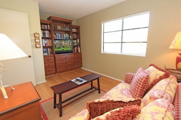 Relax and unwind in the media room in this Palm Desert retreat, with a beautiful built in book shelve and 32 inch flat screen TV, the media room offers a place to sit back and unwind while reading a book or watching a great movie.
