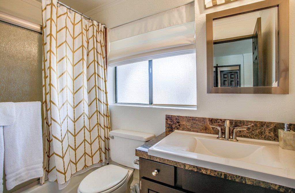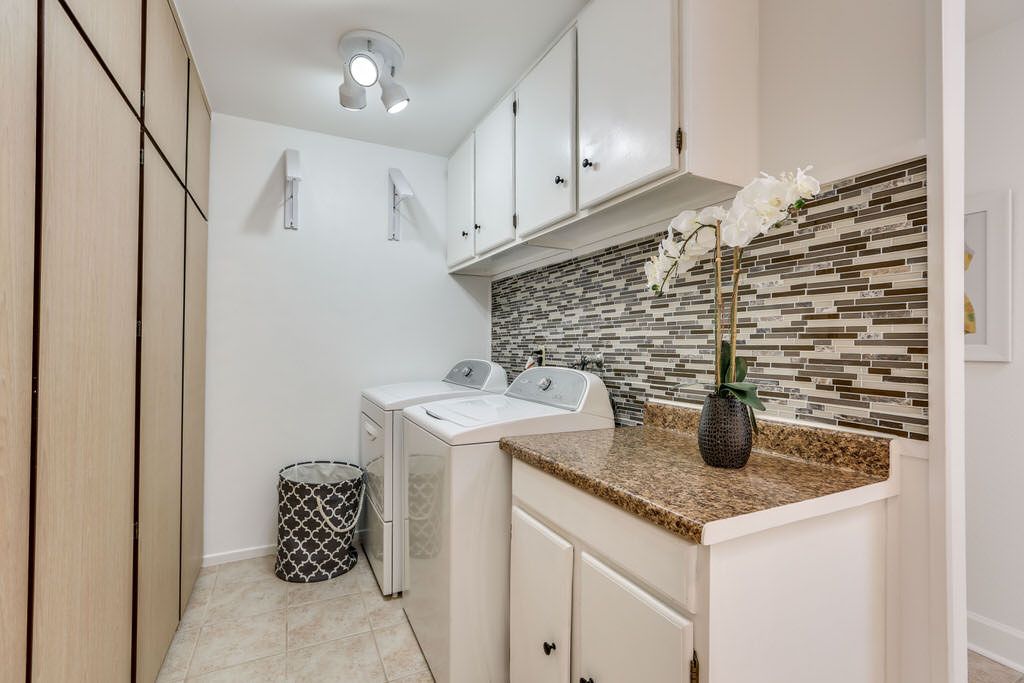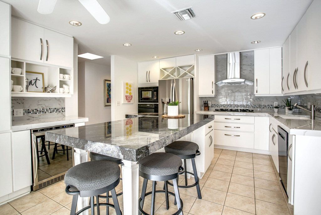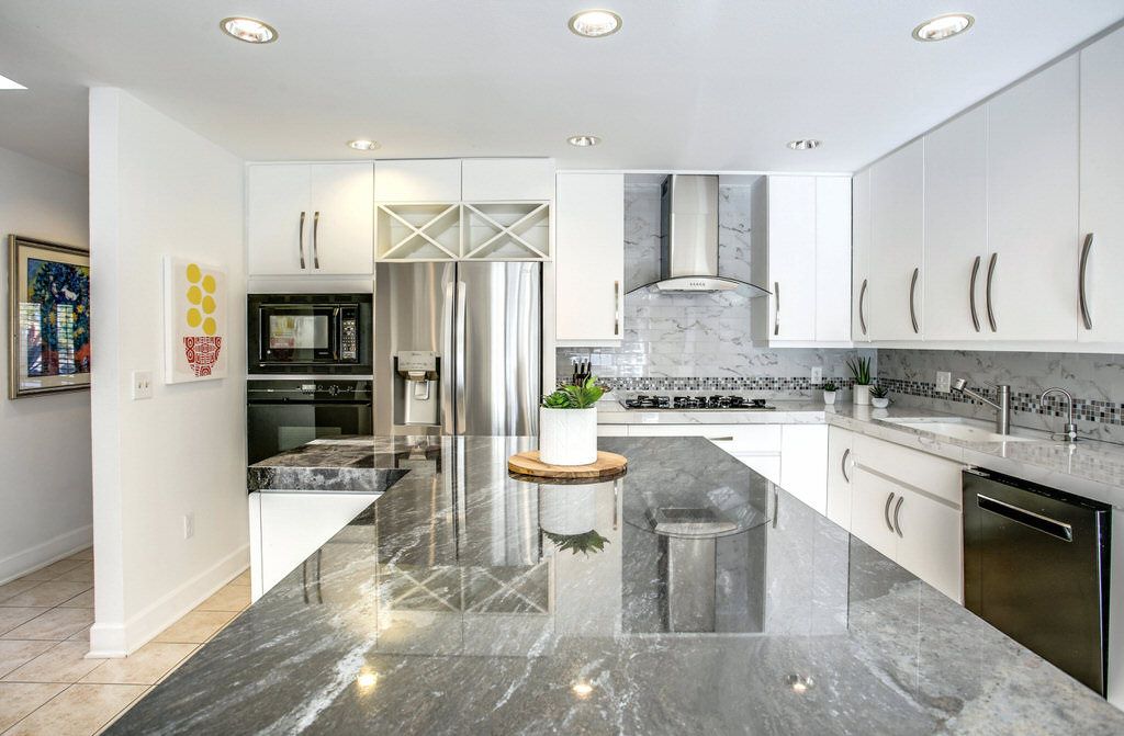 This vacation home was professionally decorated with a modern flair. Enjoy the eat in beautiful contemporary kitchen with granite counters. The kitchen boasts of a central island for eating and a wine refrigerator.