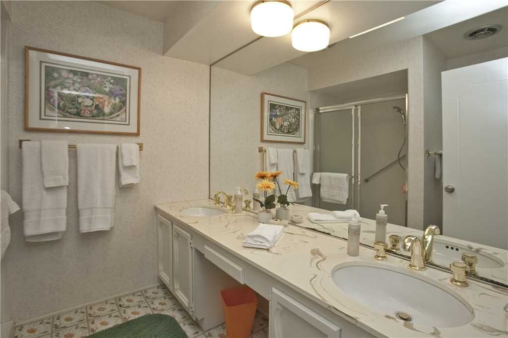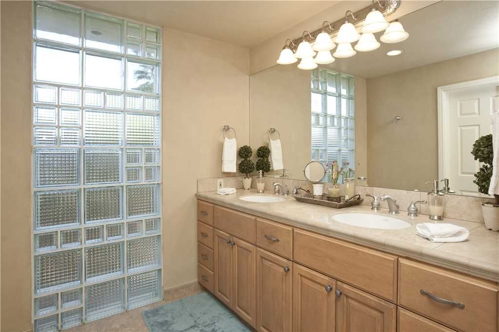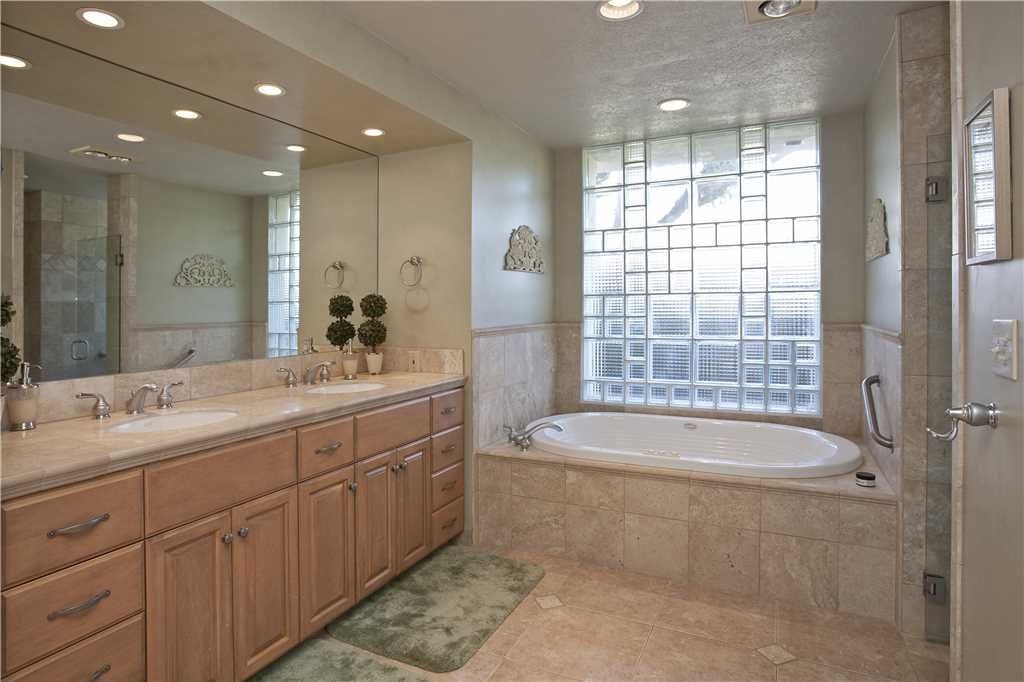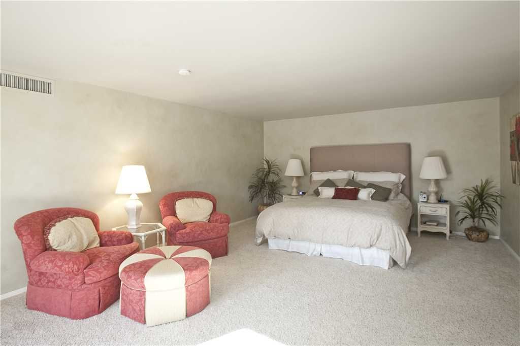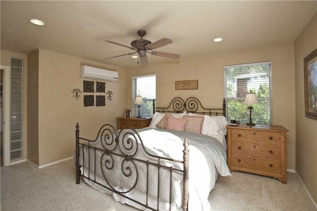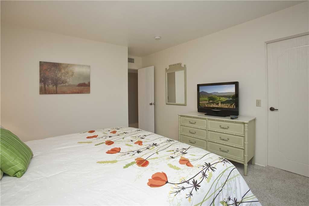 The master suite of this Palm Desert vacation home features a newly updated attached bath with dual sinks, a soaking tub and walk-in shower. You'll also find a King size bed, 42"" TV and direct access to the backyard.