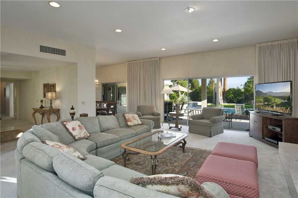 This Palm Desert vacation home is situated on a huge 1/2 acre lot, walled for your privacy, with lush green lawns and landscaping throughout. You'll enjoy the gorgeous mountain views while you lounge by the sparkling pool in this tranquil backyard oasis.