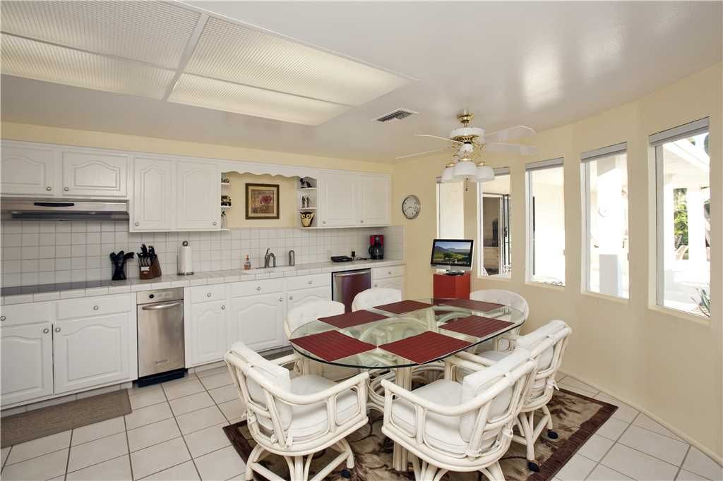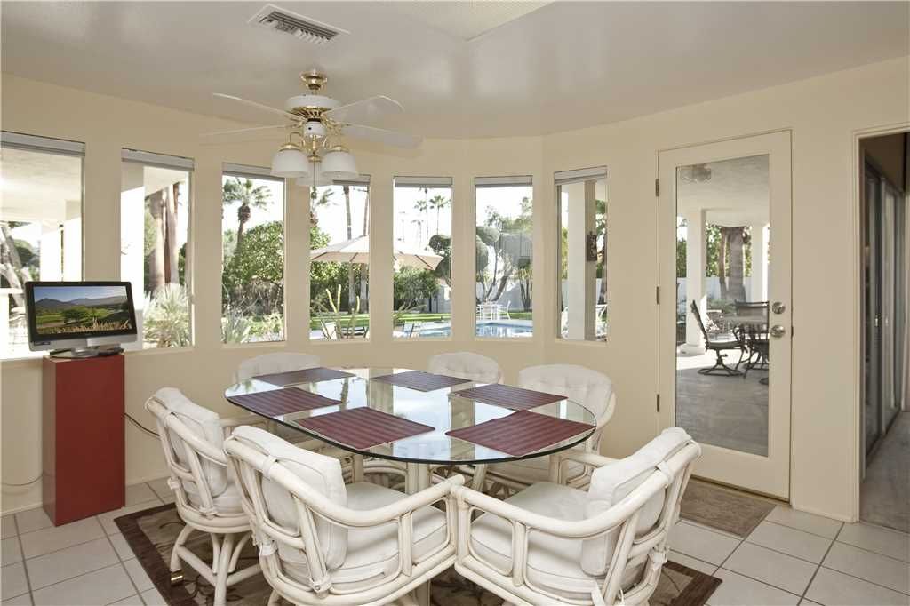 The kitchen in this lovely Palm Desert vacation home rental is fully equipped for your families vacation including double ovens, updated stainless steel appliances, and abundant countertop space for preparing and serving meals. The breakfast nook offers dining for 6 while the adjacent dining room provides seating for 8.