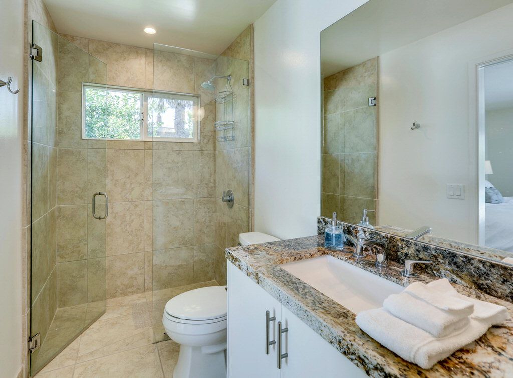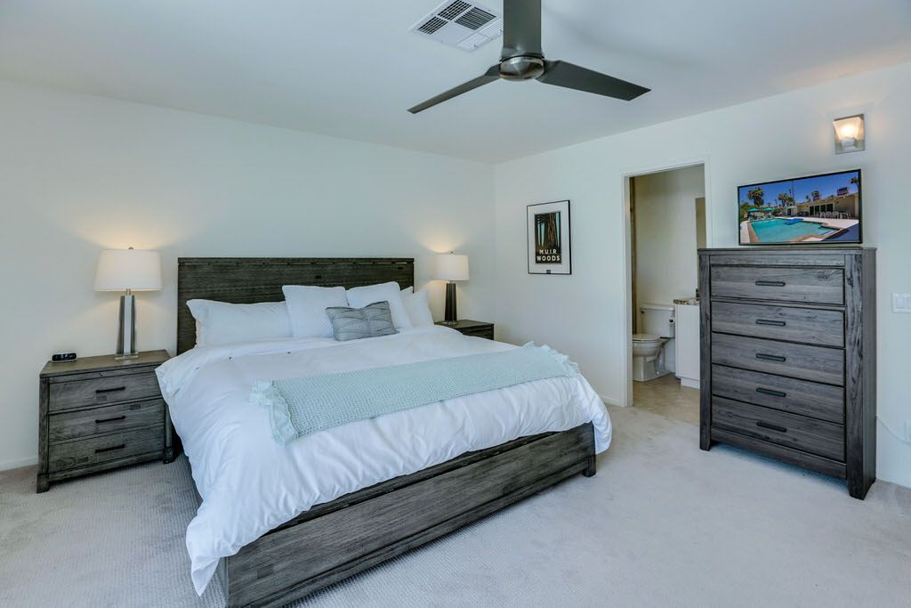 The fourth bedroom, and considered the second master bedroom is on the opposite wing of the house which offers additional privacy. This room features a king size bed, a 32 inch HDTV, ceiling fan, and a ensuite bathroom with a walk-in shower.