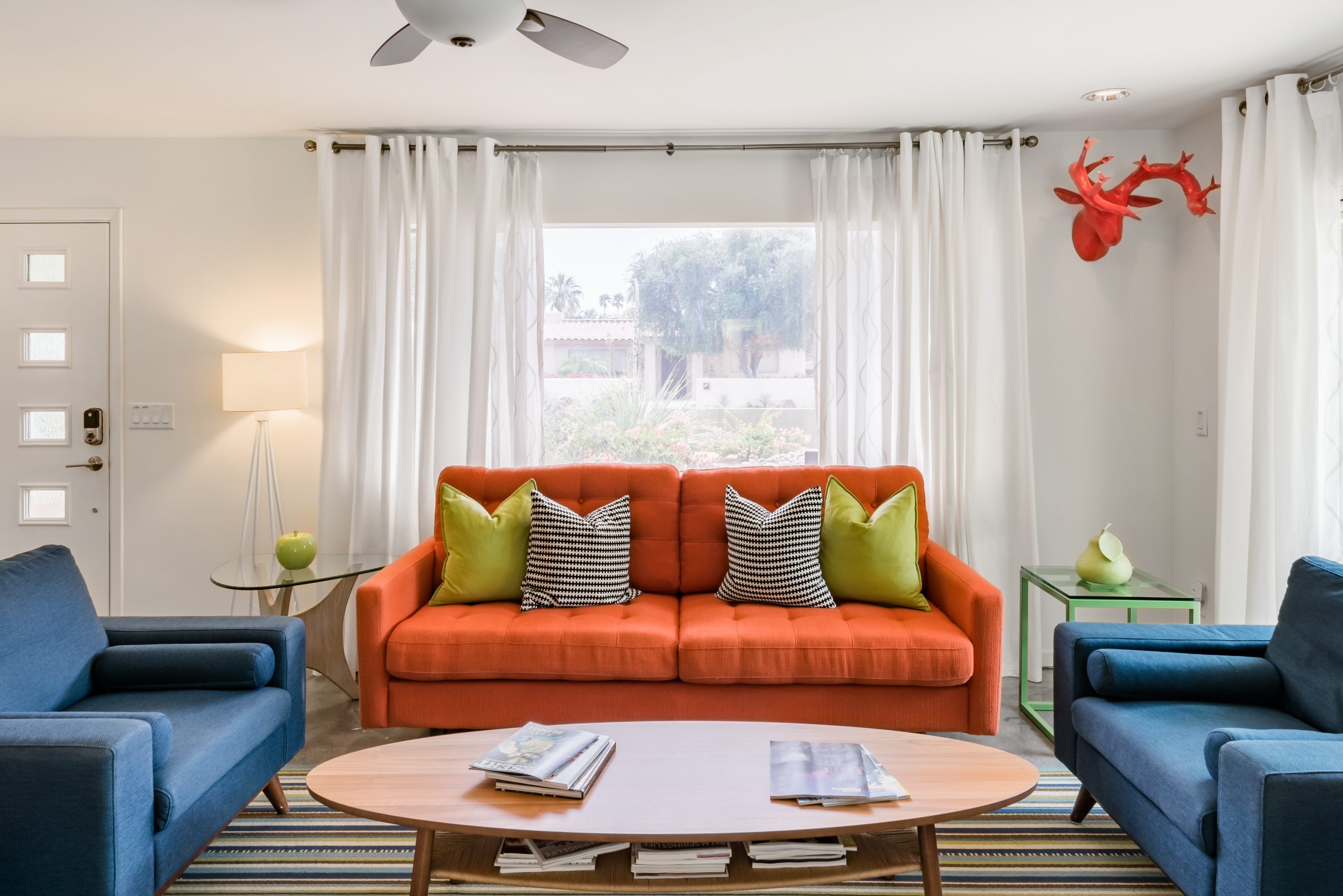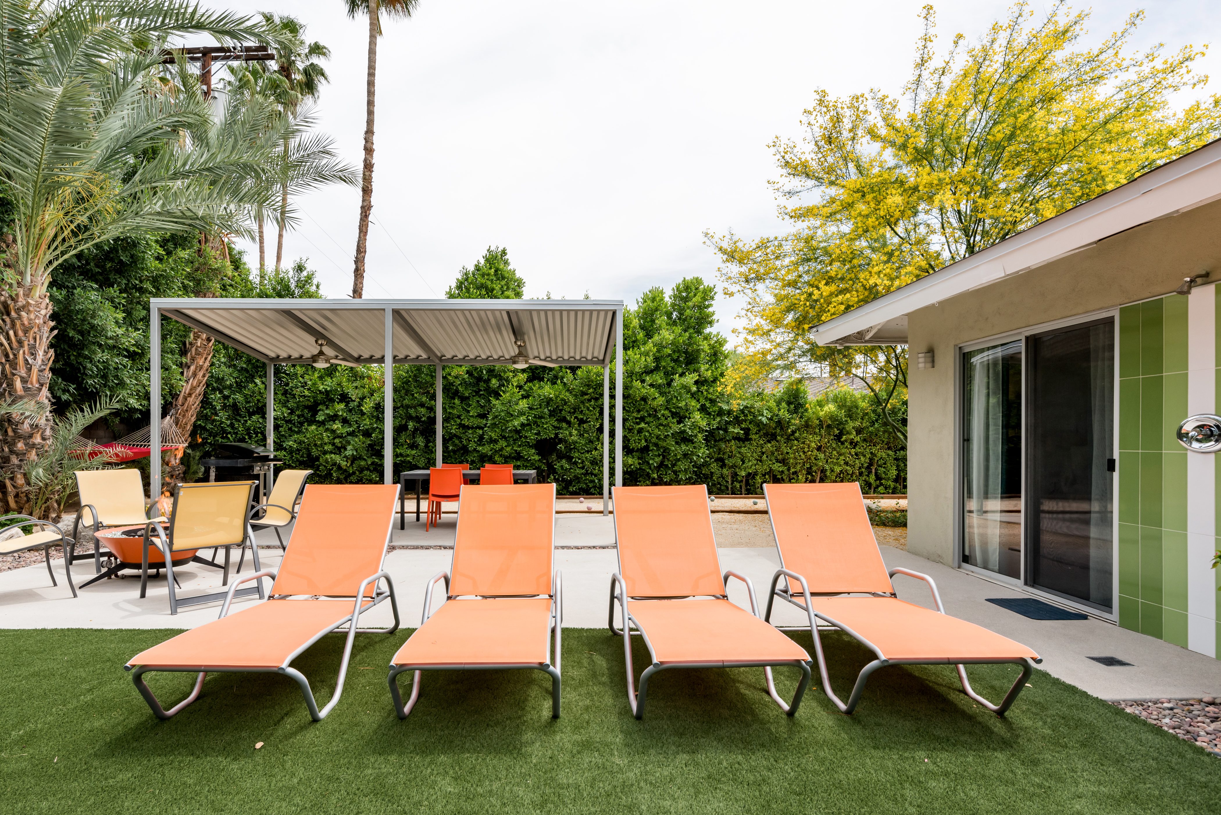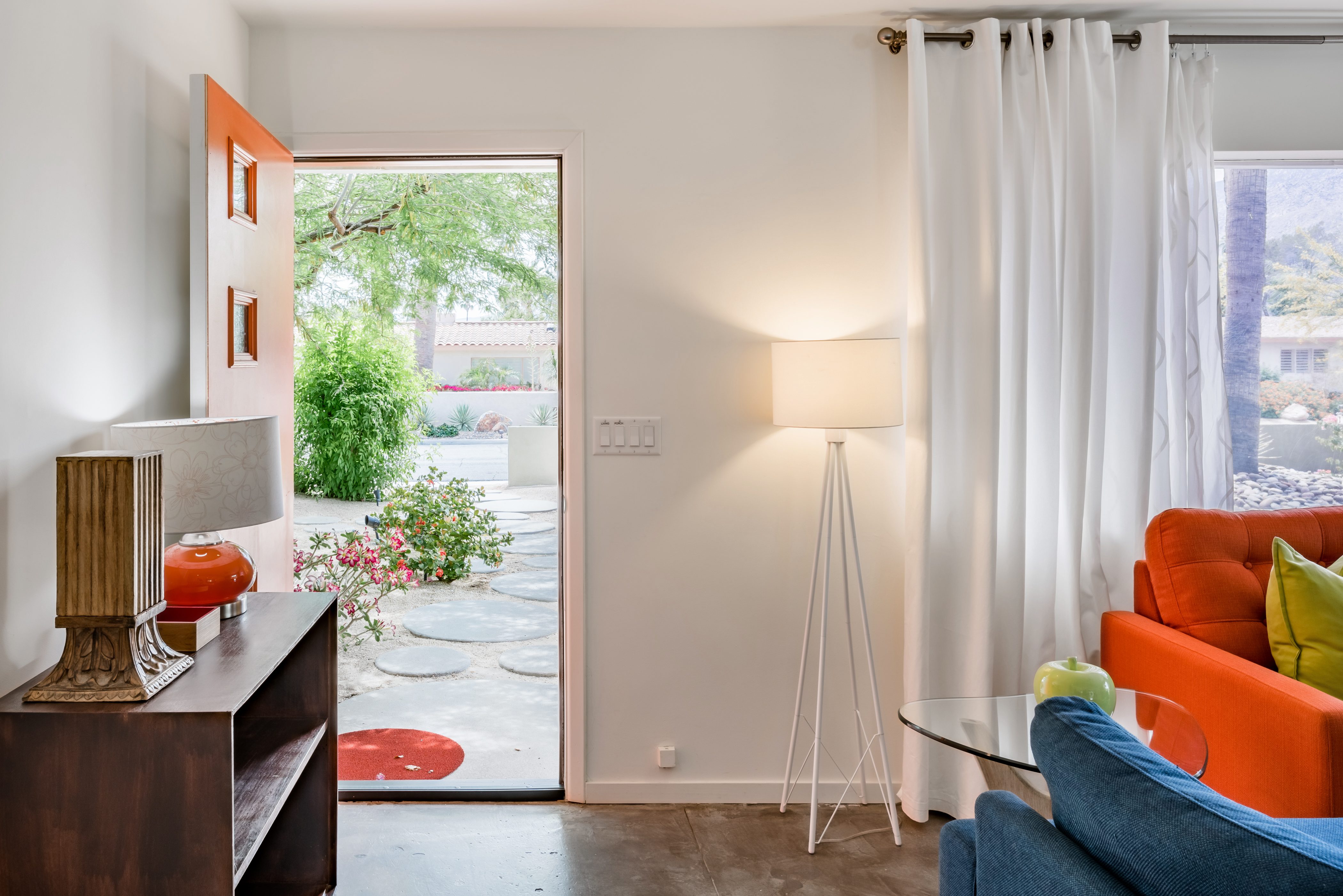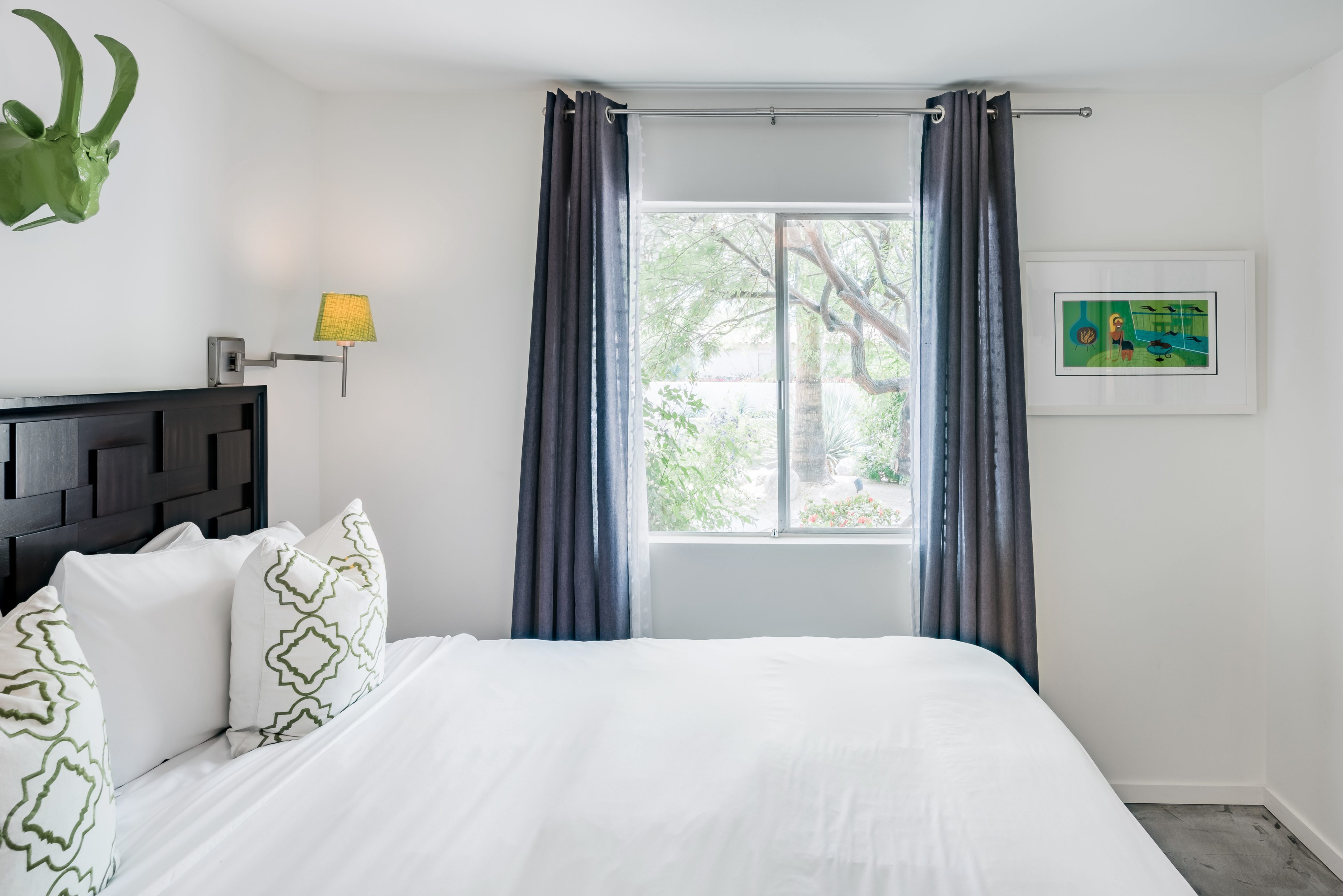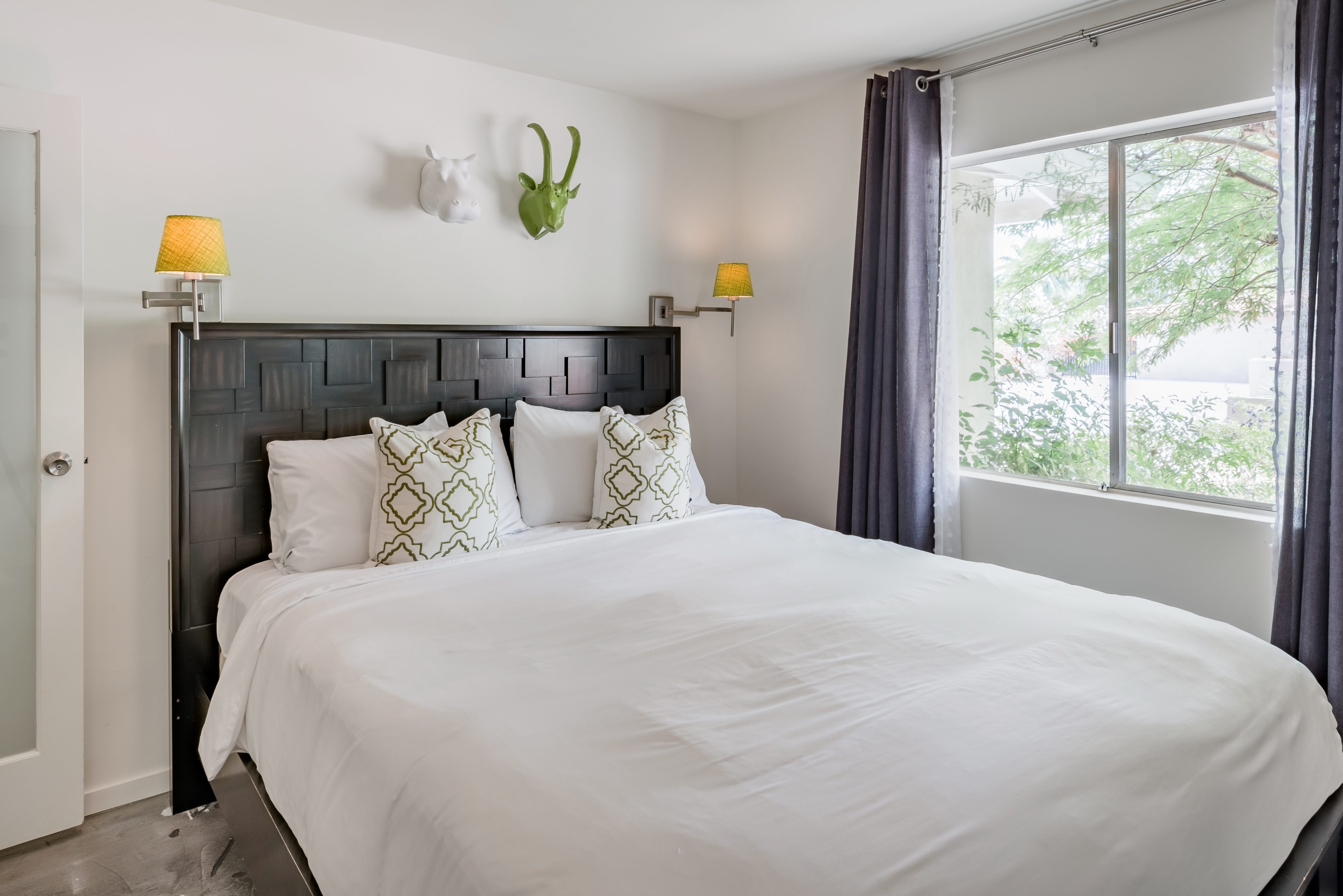 P.S. City ID #1174 Primary renter must be at least 25 years old Top-to-bottom mid-mod remodel. All about outdoors w/privacy fenced rear yard. Gorgeous mountain views w/private pool w/waterfall feature, hot tub, sun loungers, covered alfresco dining space w/grill, fire feature and boccie. Even a hammock for mid-day nap! Indoors, find a bright and cheerful open layout w/fun colors and relaxed vibe. Kitchen offers SS appliances and quartz counters. MBR suite w/king bed, private bath and access to pool area. Guest bedroom w/king bed, hall bath access. Close to Ruth Hardy Park, Palm Canyon Dr.Amenities